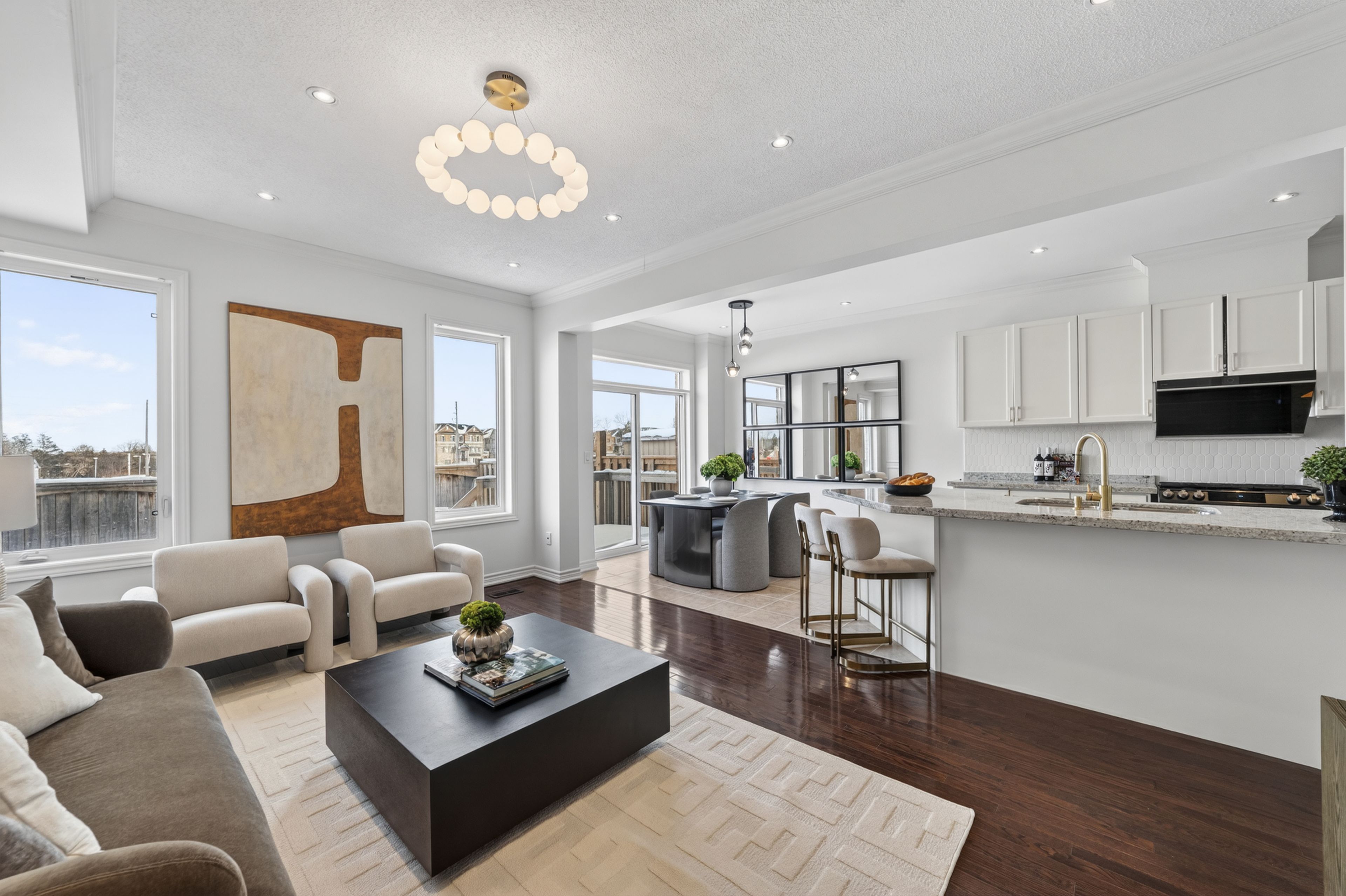 Redefining semi-detached living with detached-style space. This exceptional home offers 2,487 sqft above grade and features a rare 2. 5-storey design, delivering enhanced privacy, functional separation, and an unexpectedly spacious interior. Showcasing rare double primary bedrooms with ensuite bathrooms for every bedroom, this home is ideal for multi-generational living or modern families seeking flexible space. The dual living room layout perfectly balances everyday living and entertaining. Highlights include 9-ft ceilings, fresh designer paint, new lighting fixtures, and newer stainless steel appliances. The open-concept kitchen with centre island and breakfast area is perfect for daily living and hosting. Elegant upgrades feature french moulding accent walls, modern hardware, black new garage door, and updated bathrooms including a glass shower enclosure - offering true move-in-ready comfort. Prime location minutes to hwy 404, costco, shopping, restaurants, and everyday amenities. Situated in an excellent school district near victoria square public school, richmond green secondary school, st. Augustine catholic high school, and sir wilfrid laurier public school - ideal for families seeking top-tier education and everyday convenience. A refined semi that lives like a detached - offering space, privacy, and timeless appeal.
