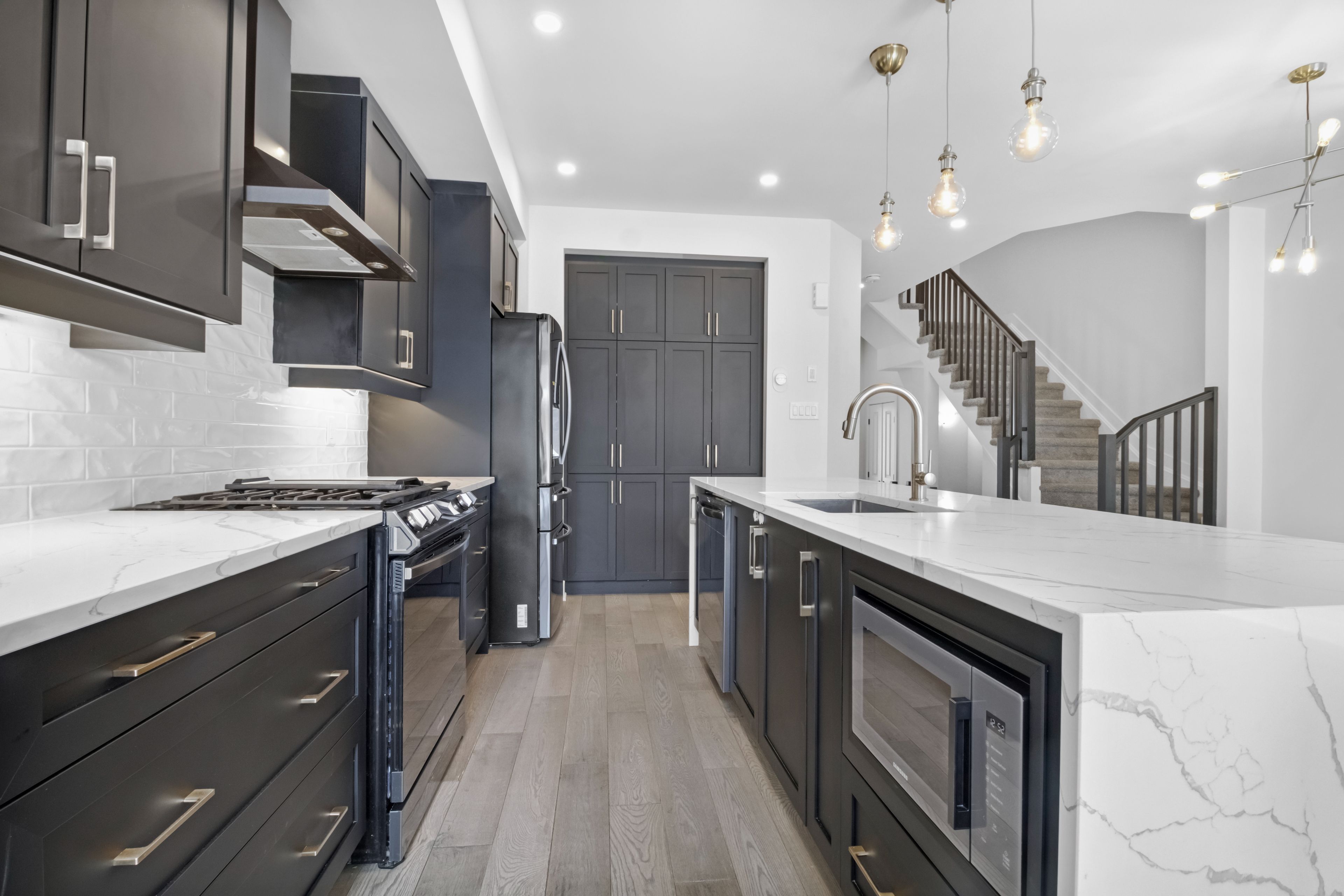 Welcome to 92 longworth avenue, an exceptional urbandale calypso in the heart of findlay creek, thoughtfully upgraded and meticulously maintained. This 3 bedroom, 2. 5 bath home blends refined design with everyday functionality, offering a sun-filled open concept layout with 9ft ceilings and a fully finished basement. Walk into a spacious entryway including large-format matte black tile, custom built-in mudroom and powder room. The main level is elevated with elegant extra wide hardwood flooring, complimented by brass fixtures and matte black cabinetry with soft-close details, waterfall quartz countertop and a gas stove with black stainless steel appliances. The open-concept layout is spacious enough to comfortably seat eight at the dining table, while the living room soars to 18-foot ceilings. With the fireplace thoughtfully positioned on the left to maximize natural light, this is a space truly designed for entertaining. Upstairs, the primary suite is complemented by a spacious walk-in closet and a beautifully finished ensuite designed for daily comfort with a double vanity, an extra linen closet, marble flooring and an emerald green shower with brass finishes. Two generously sized secondary bedrooms facing west, a stylish full bath maintaining complimentary finishes throughout the home, and a thoughtfully positioned laundry room complete this level with both elegance and practicality. The lower level delivers impressive additional living space, with a bathroom rough in and ample of room for storage. Outside, you will find a generous two car driveway with a garage parking. An expansive wood deck anchors the backyard, surrounded by solar lighting and artificial grass that defines an inviting outdoor entertainment space. This home is the busy professional's dream, combining modern design, functional home living, and effortless maintenance, all in a thoughtfully crafted space you'll love coming home to. *please note some photos have been virtually enhanced