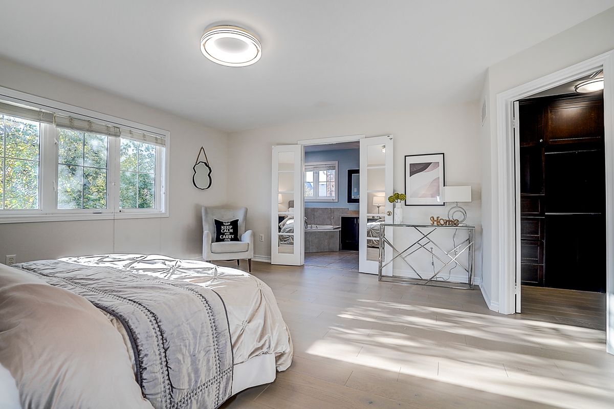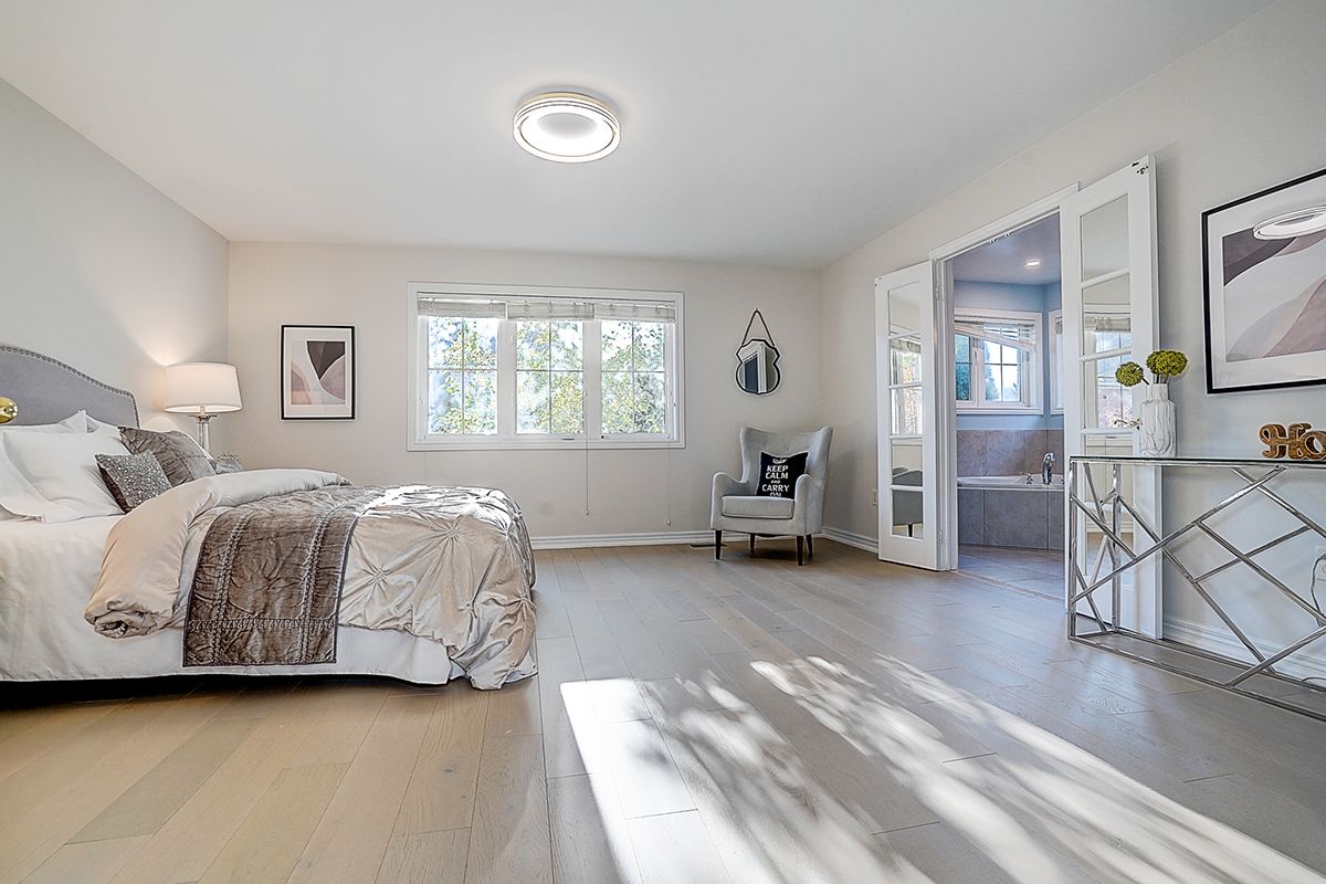 Stunning home in desirable brooklin! Freshly painted, carpet free & showcasing brand new hardwood floors. Main level features a soaring family room with cathedral ceiling & gas fireplace, elegant dining room with coffered ceiling, and pot lights throughout. Chefs kitchen with quartz counters, custom backsplash, tall cabinets, pantry, 2 built-in jenn-air ovens, 6-burner gas cooktop & warming oven. Upstairs offers spacious bedrooms, each with ensuite. Primary retreat boasts w/i closet & spa-like 5pc ensuite. Professionally finished basement includes a large rec room with wet bar & granite, exercise room & 3pc bath. Move-in ready and a true must-see!
