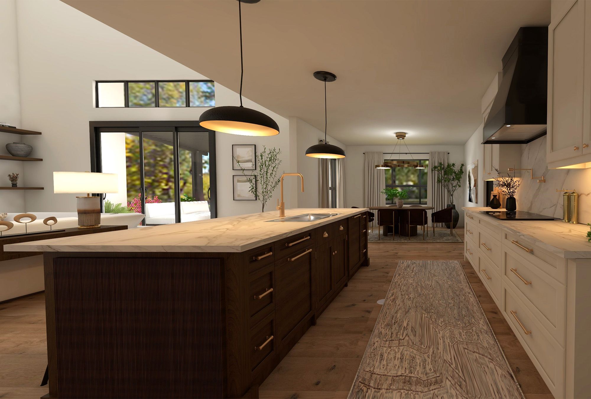 • Gourmet kitchen featuring high-end appliances, porcelain counters, and a walk-in pantry.