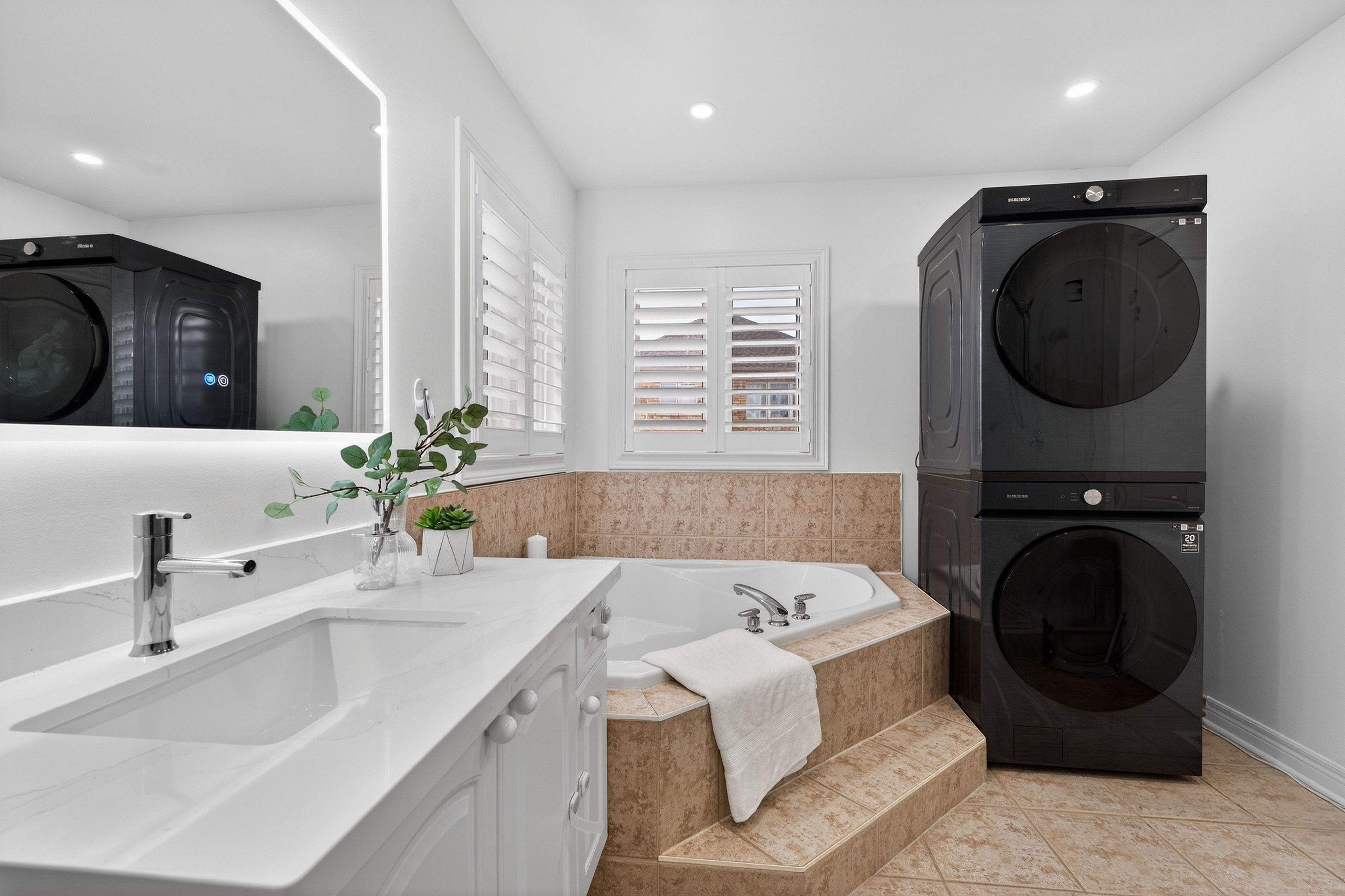 • Dedicated laundry on the second level ensures privacy for both spaces.