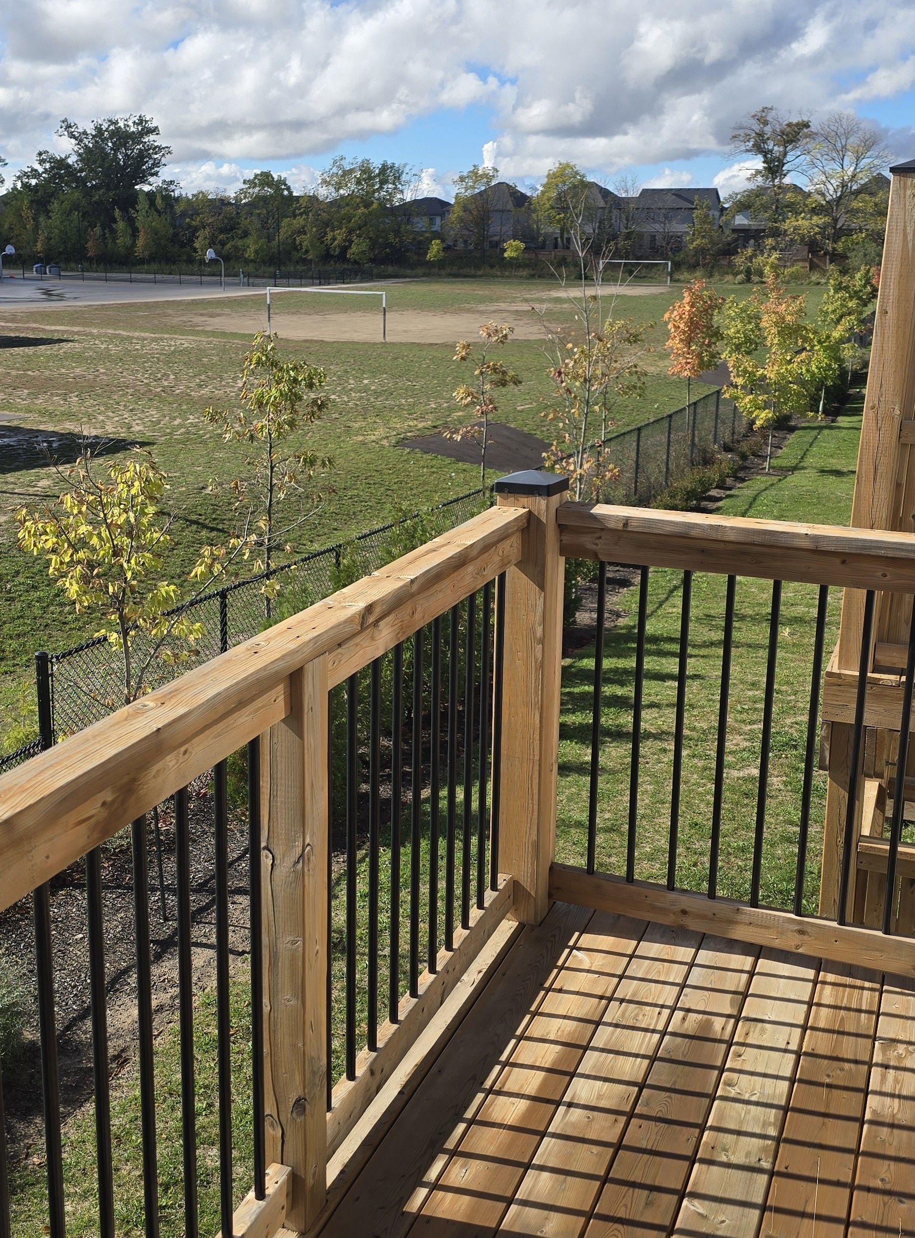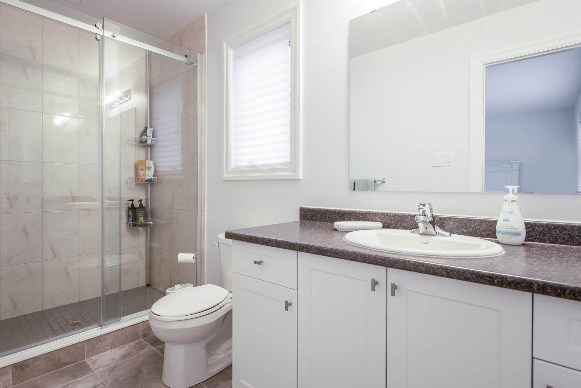 Absolutely unique freehold corner unit 4 beds/ 4 bath + bonus room on the main floor & finished walk-out basement, feels more like a semi with no neighbors to the side or back nestled on a premium 35 98 ft lot. Overlooking lush greenery and backing onto oak creek public school and huron community centre. This home delivers comfort and functionality at every turn offering over 2,500 sq. Ft. Of total living space. The modern open-concept kitchen flows seamlessly into the sun-filled living area, framing a beautiful view of the deck and green space beyond. The primary suite offers a touch of luxury with a glass-enclosed shower and a spacious walk-in closet. The lower level is ideal as an in-law suite or for other creative uses with easy access from the gorgeous patio to a bright & spacious living room, a bedroom with french doors and an addition exercise room. Fantastic location-close to shopping plazas, great schools, colleges and indoor/outdoor recreation facilities. A truly exceptional opportunity to own a home that combines privacy, space, and convenience!