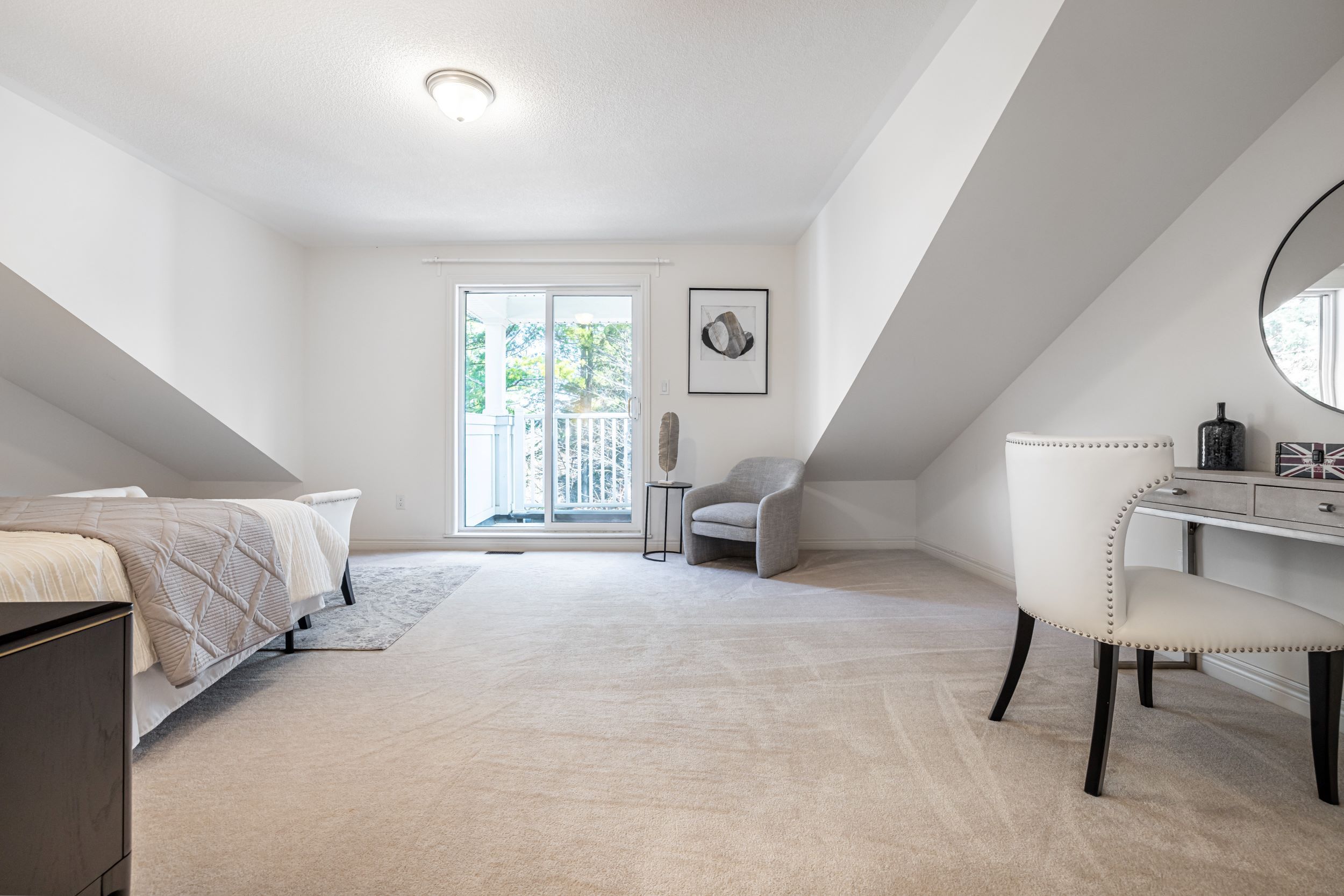 • Relaxing balcony off the second primary bedroom overlooking greenery.