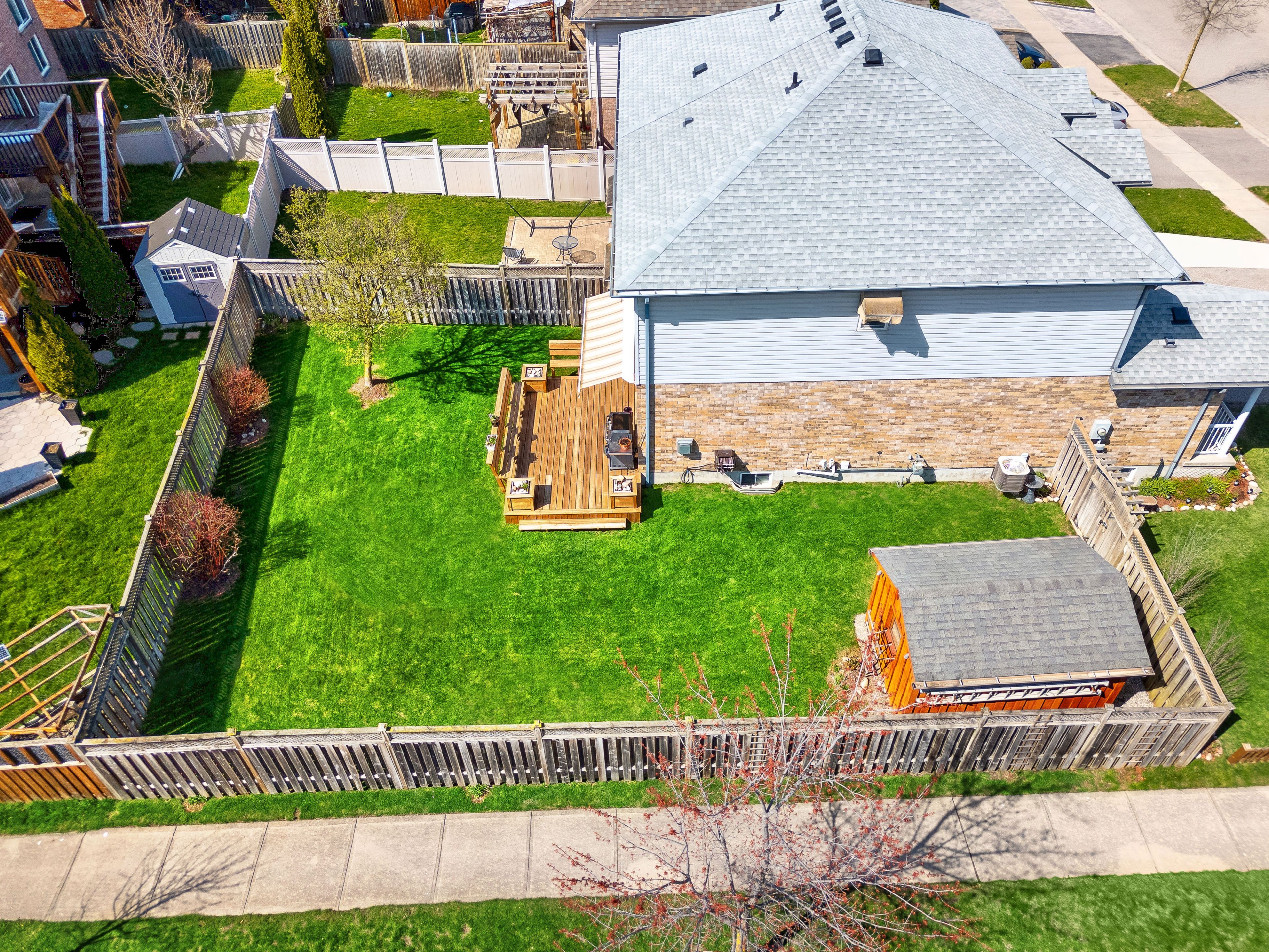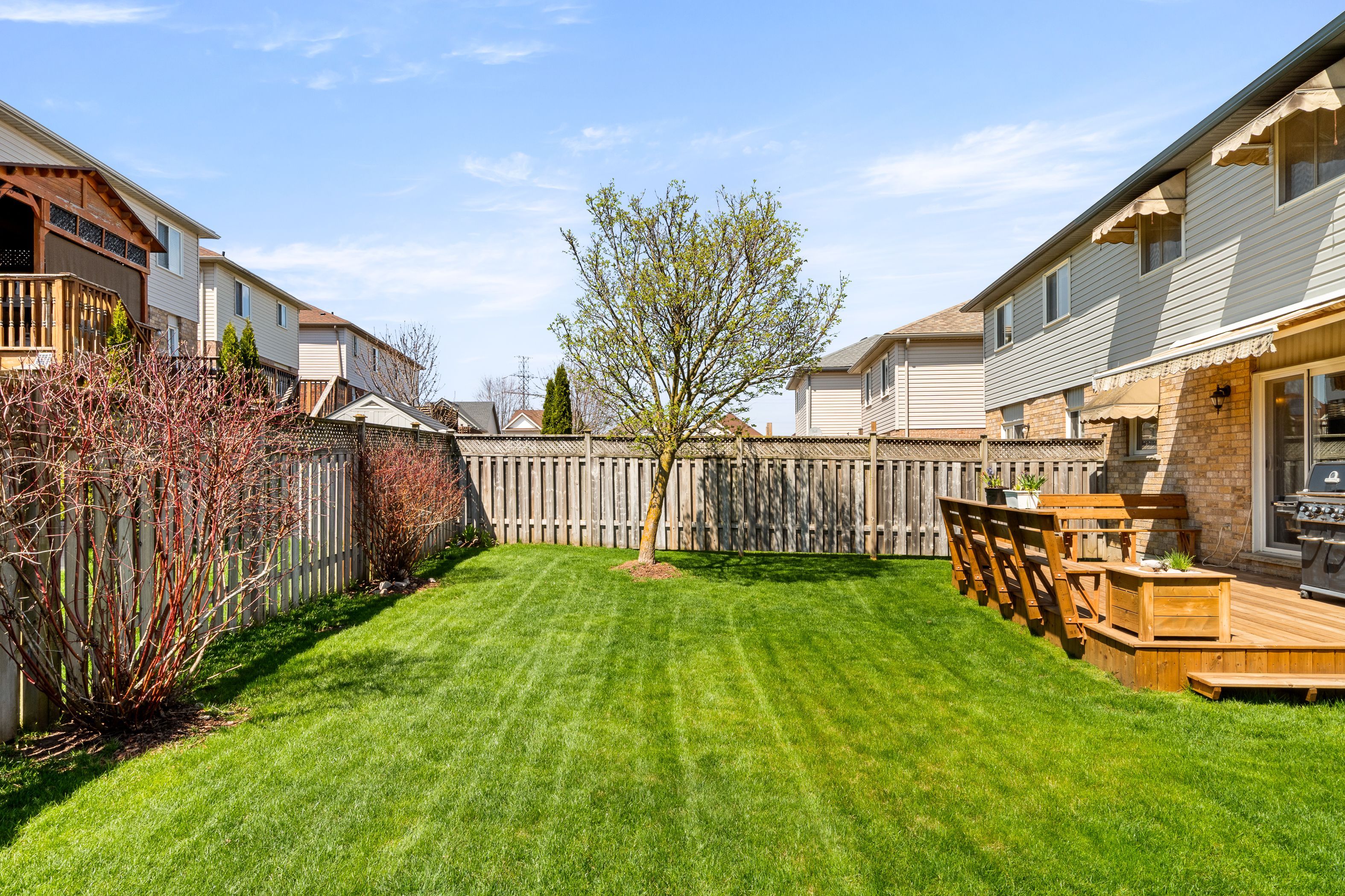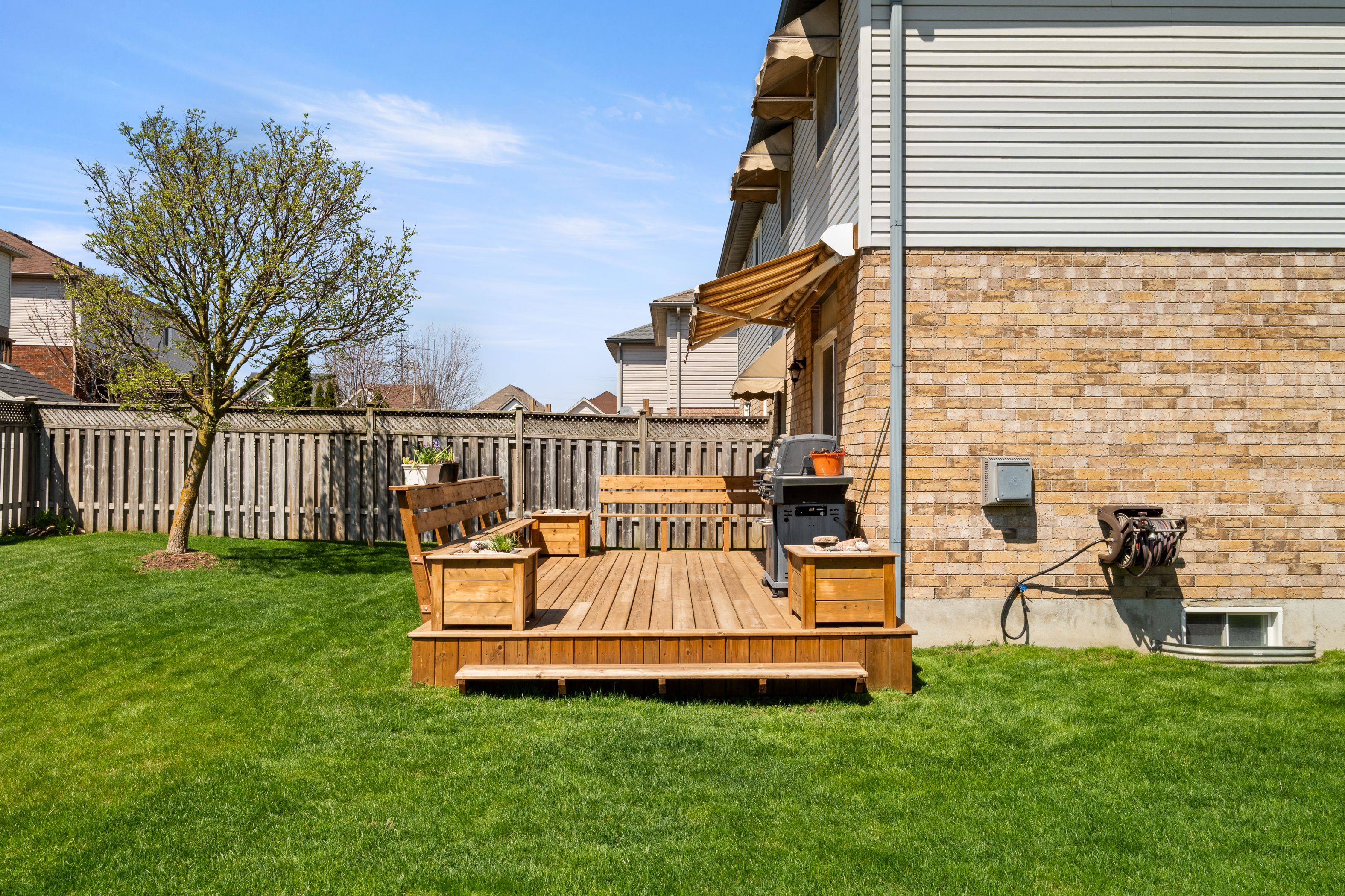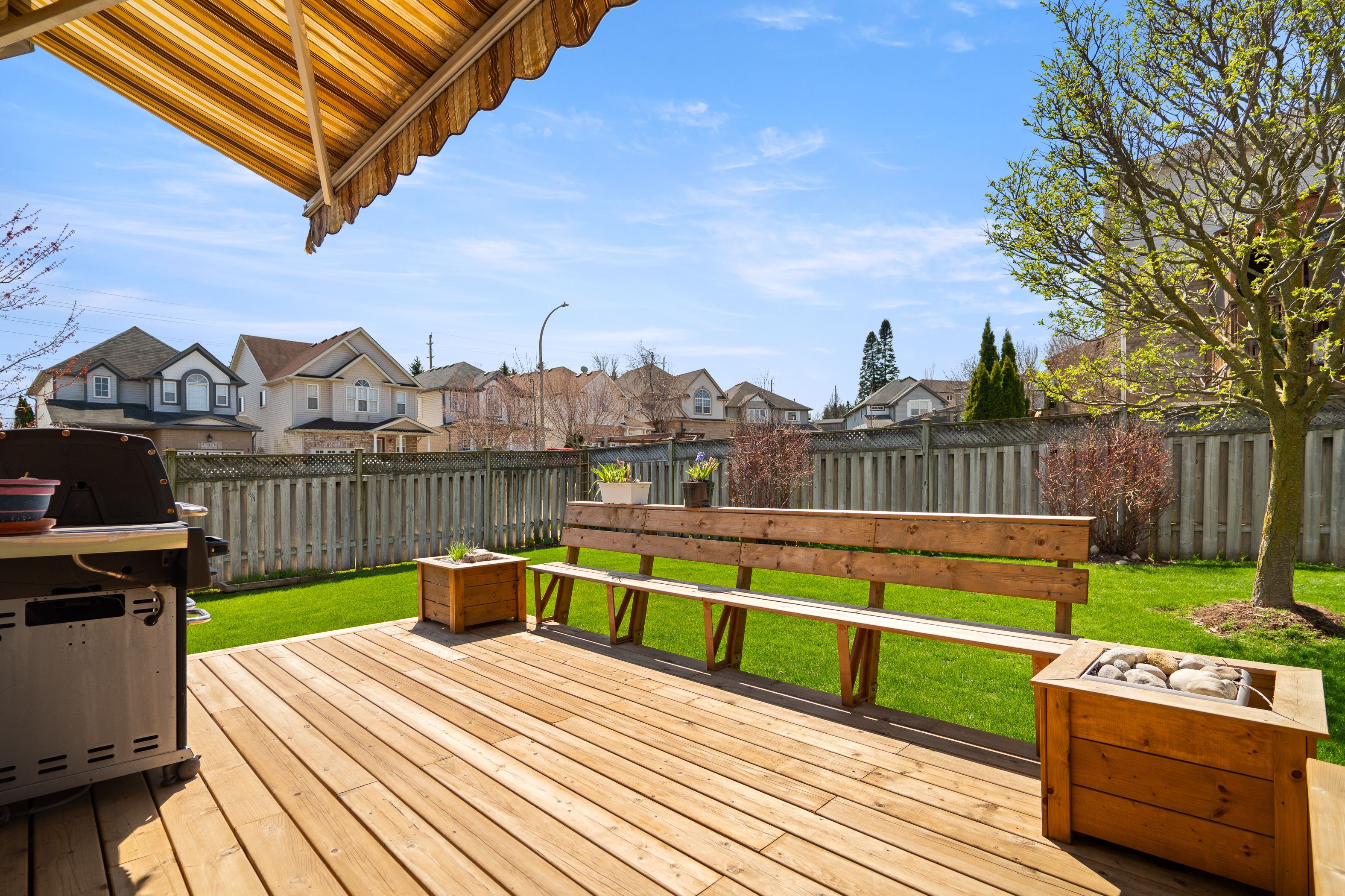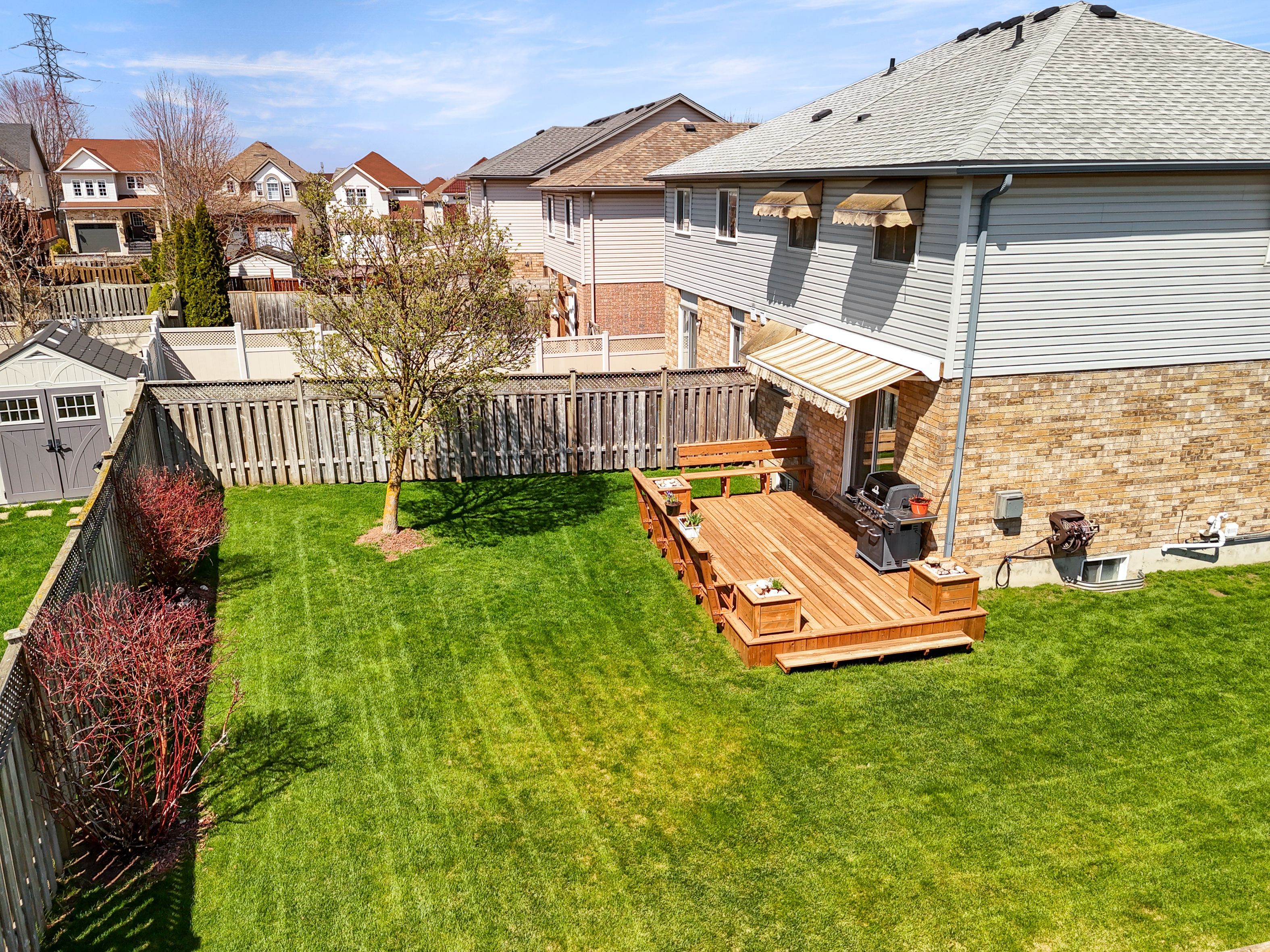 • Fully fenced backyard with a rebuilt deck and extra space for activities.