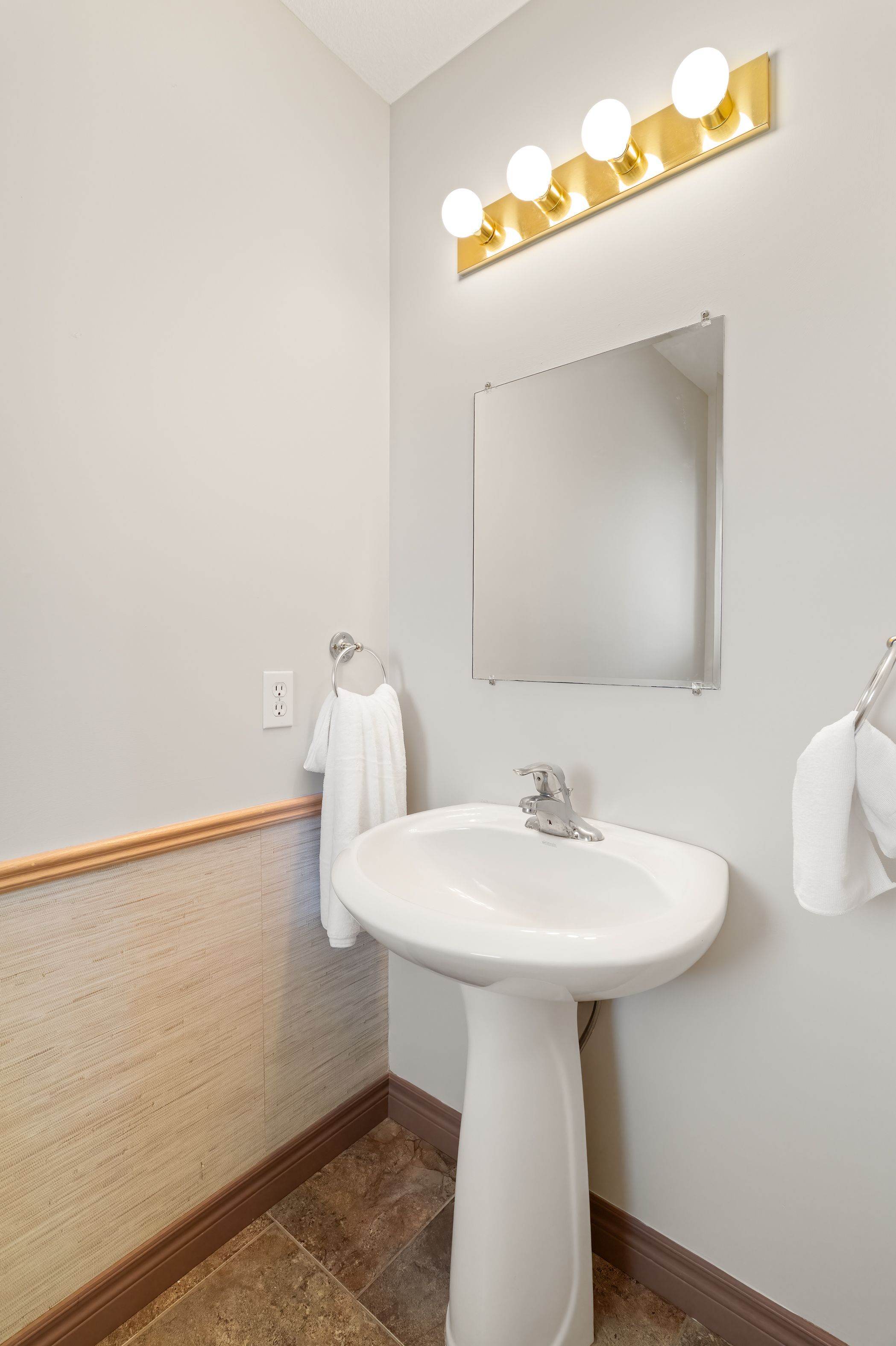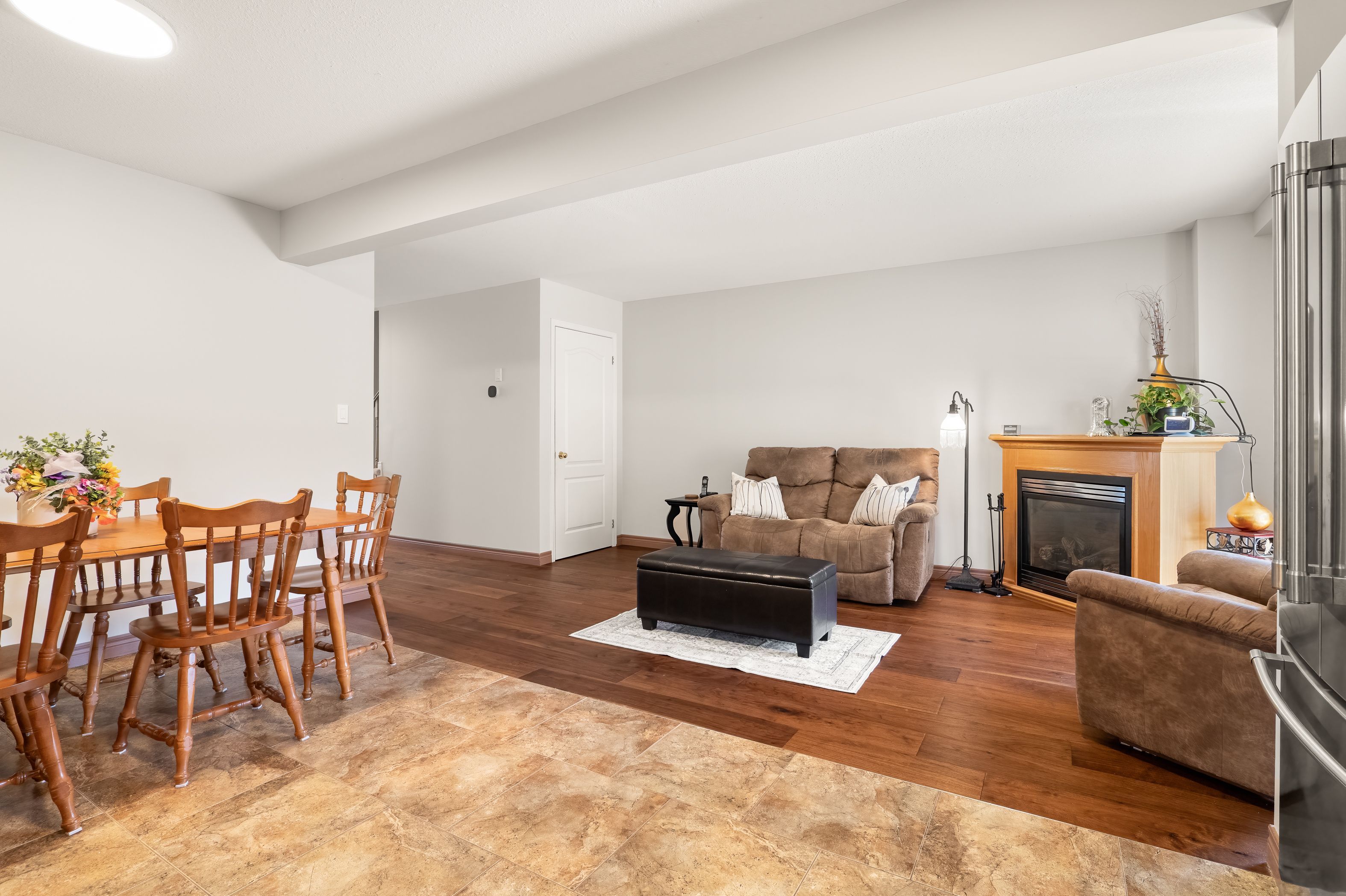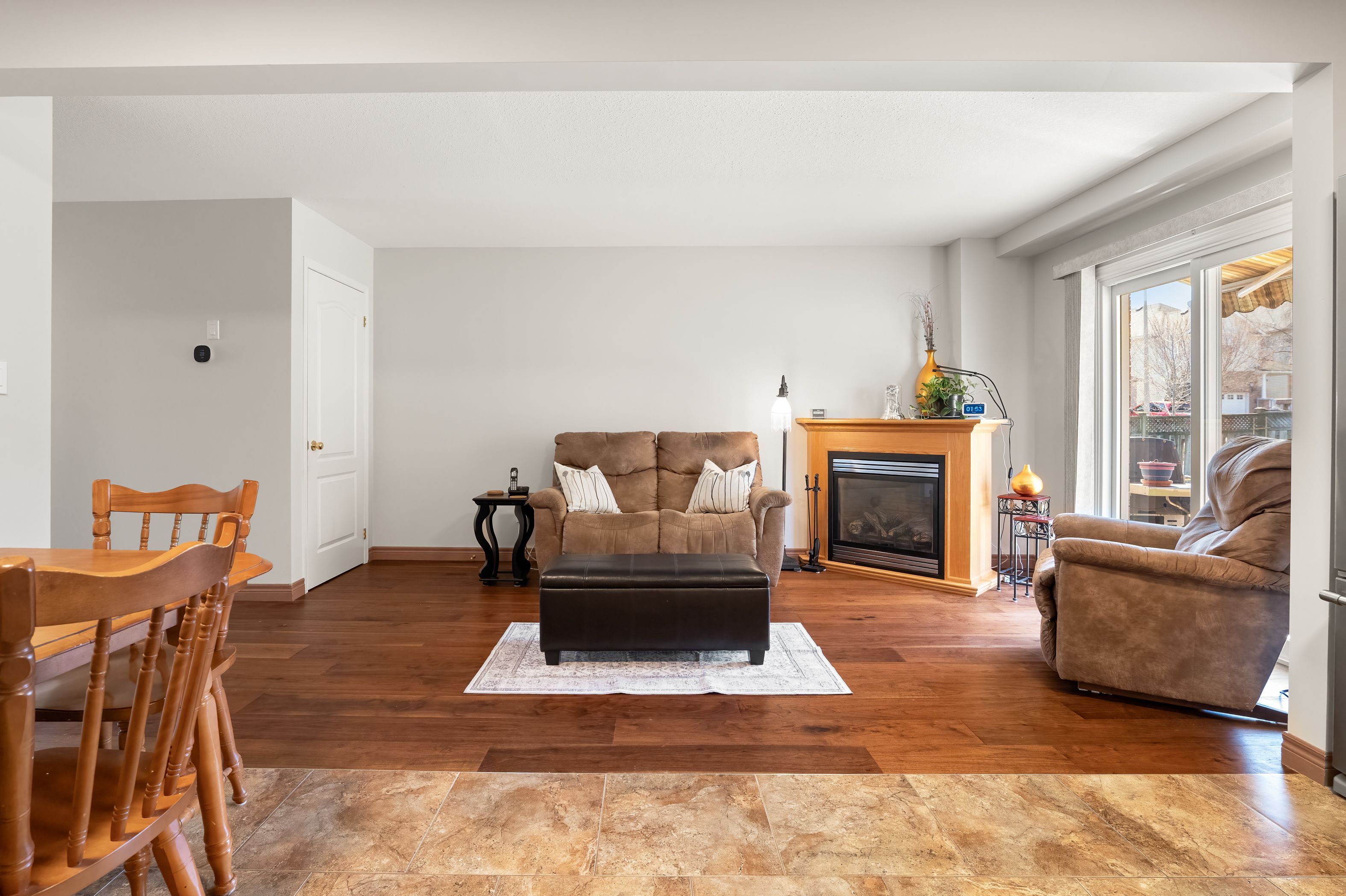 • Carpet-free main floor with modern flooring and gas fireplace.