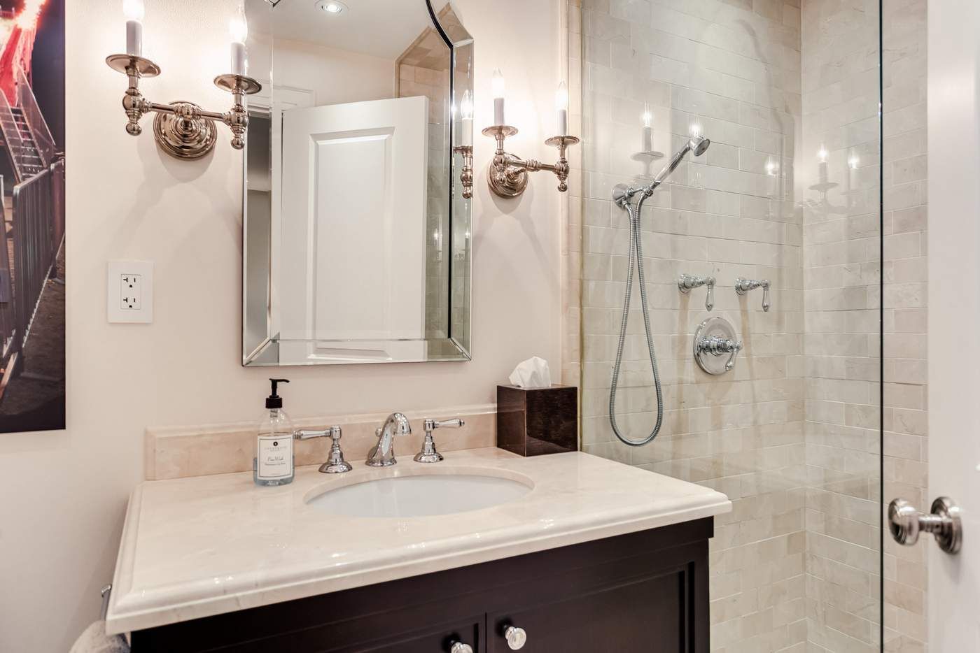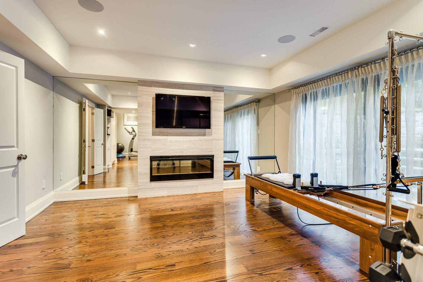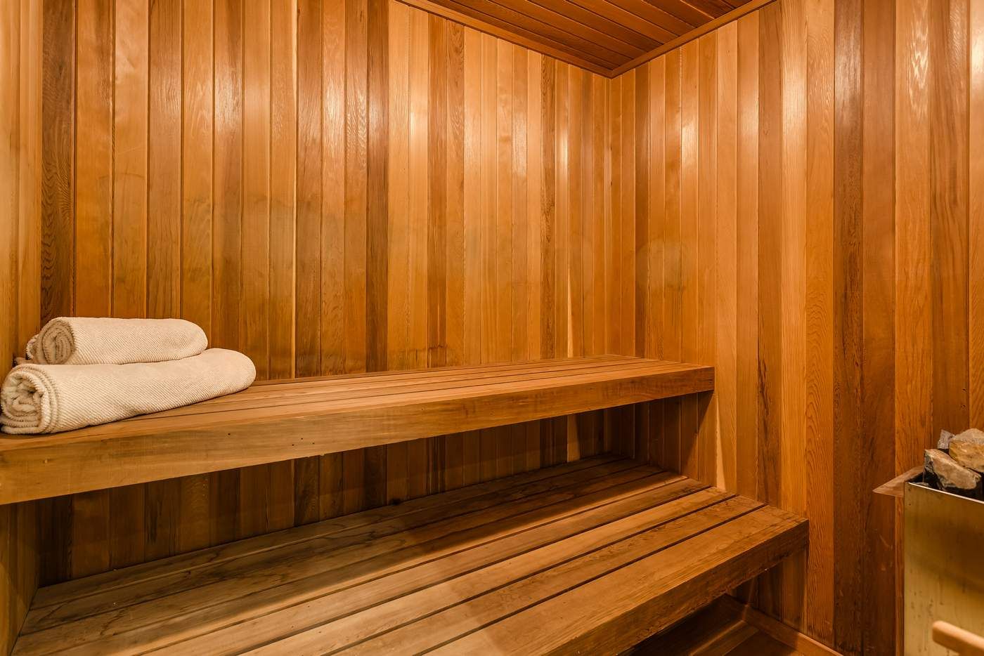 • Lower level features heated floors, media room, spa bathroom, and sauna.