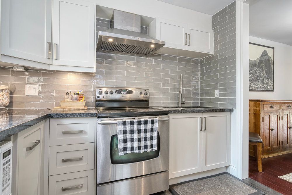 • Bright, open-concept kitchen with modern appliances and stone countertops.