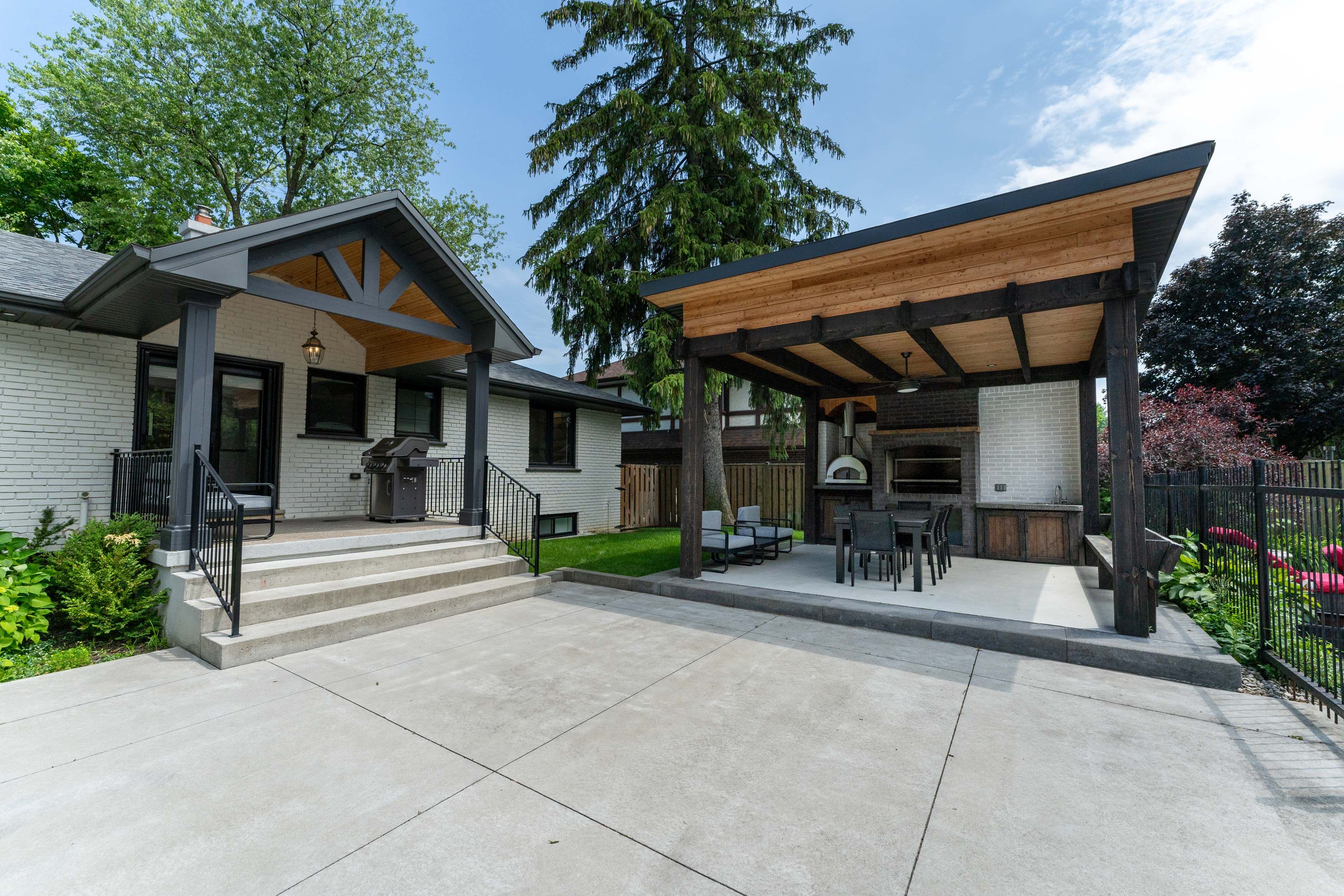 Stunning wardwood road, bungalow boasting 3+1 spacious bedrooms & 2 +1 modern washrooms. This fully renovated home features an incredible in-ground salt water pool perfect for warm days, finished basement with a massive rec-room ideal for entertainment, and a double car garage insulated, new cement floors . The beautiful modern kitchen is a chef's dream, with stunning backsplash, sleek quartz countertops, and pot lights through-out all set amidst elegant hardwood floors on the main level. The open concept main floor seamlessly flows to a gorgeous outdoor sitting area, complete with a custom made gaucho grill and pizza oven, perfect for all fresco dining and gatherings. The primary suite is a serene retreat featuring a luxurious 4-piece modern en-suite including heated floor great touch for comfort, spacious walk-in closet, and impressive10 foot high ceilings with coffered detailing. The expansive private driveway with electronic gates can add a lot of convenience, child safe backyard, accommodating 8+ cars, providing plenty of parking for family and friends. Beautifully landscaped & mature trees. Don't miss out on this dream home in a highly sought-after location. Close to all amenities... True pride of ownership. Shows impeccable. This is the one you been waiting for. It could be yours...