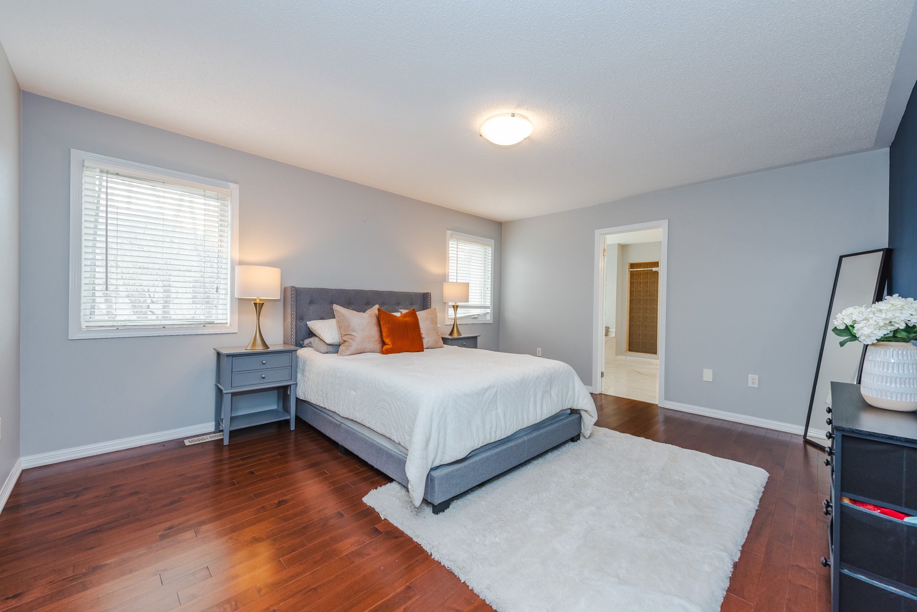 Welcome to this fully upgraded, move-in ready home offering a unique and functional layout with over 2,800 sq ft of living space. Featuring soaring ceilings in the living room, separate dining and family areas, and 9-ft ceilings on the main floor with hardwood throughout, this home is bright and spacious. The upgraded kitchen includes quartz countertops, matching backsplash, and stainless steel appliances. Upstairs offers 4 generously sized bedrooms, 2 full bathrooms, second-floor laundry, and a versatile loft-perfect for a home office or relaxation space. The primary bedroom features a walk-in closet and upgraded 5-piece ensuite, with upgraded finishes throughout. Situated on a premium 45-ft lot with no sidewalk, enjoy parking for 4 cars plus a garage and over $100k spent on upgrades. Located in a high-demand milton neighborhood close to top-rated schools, parks, milton go station, grocery stores, and major highways-perfect for families.