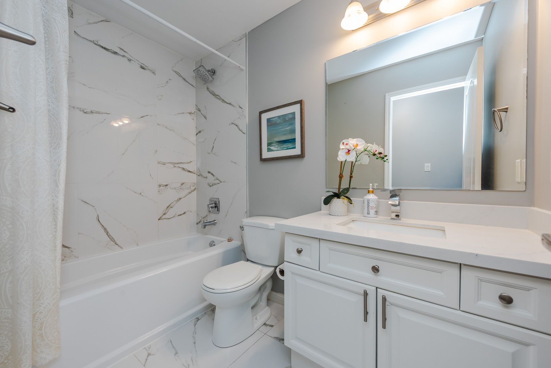 • Upgraded kitchen featuring quartz countertops and stainless steel appliances.