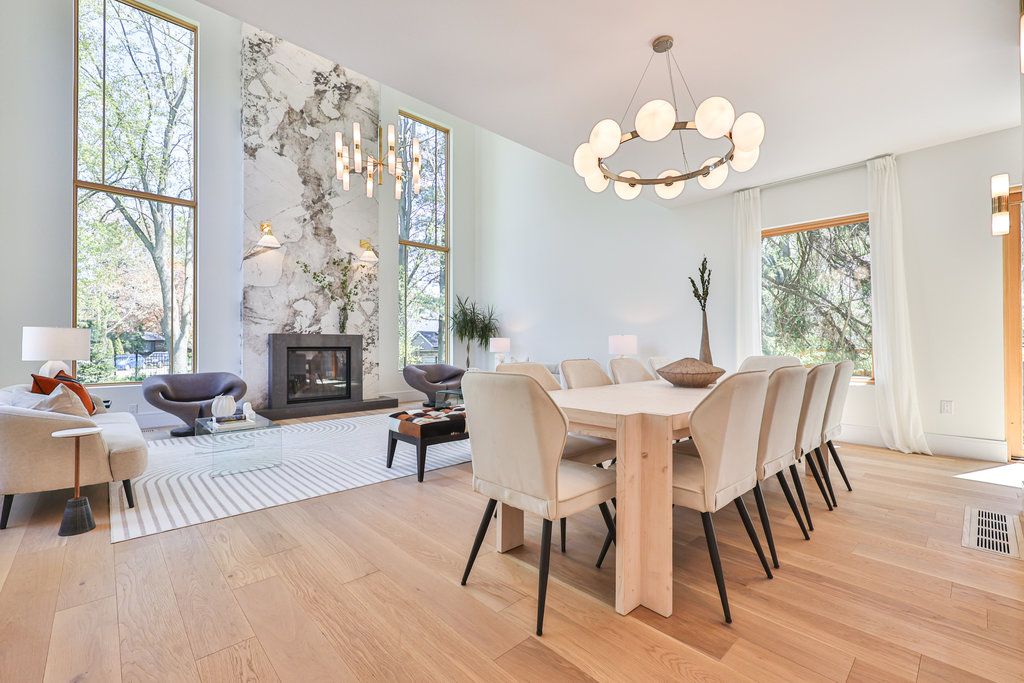 Custom estate new built in offering around 6,500 sqf of luxury living space (4200+ sqf above grade) where modern architecture meets luxury, published in designlinesmagazine, located in highly sought-after meadow wood/ rattray marsh on dest-end rd near lake,top-rated schools, minutes to go station. Featuring 5 bedrooms, 6 baths, open concept flr plan, soaring 20 ft ceiling foyer& living rm, 10 ft 1st& 2nd flrs bdrms, 9ft basement, circular driveway, 2nd flr separate mech rm, modern canadian aluminum/wood floor-ceiling windows& doors, marble flrs foyer& powder rm, 3 gas fireplaces, custom millwork, modern luxury chandeliers& wall scones, wide plank eng hdwd, 1st flr sound proofed ceilings, floating metal/solid wood staircase& modern metal railings, spacious living rm 2 sets of sitting areas for large gatherings boasts focal point floor-ceiling luxury fireplace stone surrounds& o/c 10-12 seats dining rm. Grand chef's gourmet kitchen highend stained oak wood custom cabinetry, expansive centre island, leather-finished granite countertops& backsplash, gas cooktop, integrated appliances. Large family rm w/ flr-ceiling windows, w/o to porch, modern marble 7 ft linear fireplace, built-in sound system& bookcases. Breakfast rm w/ window, large office w/ front yard window, elegant powder rm w/ marble vanity, mud rm. Primary bdrm has large walk-in closet, w/o terrace, spa-like 7-pc ensuite, custom vanities& makeup station, marble countertops, heated flrs, soaker tub, double shower, prv water closet. 3 well-sized bdrms w/ w/i closets, 4-pc ensuites inclds second primary bdrm w/o terrace. Second flr laundry rm w/ custom cabinetry, marble countertops. Walk-up finished basement w/ separate sideyard entrance designed for entertainment, large great rm, 2-tier wet bar, gym, bedroom5, 4-pc bath, cold rm, insulated flrs, fireplace stone surround. The amenities extend to lush mature trees/evergreen landscaping, cedar treed private backyard, metal fence all all around& security systems.