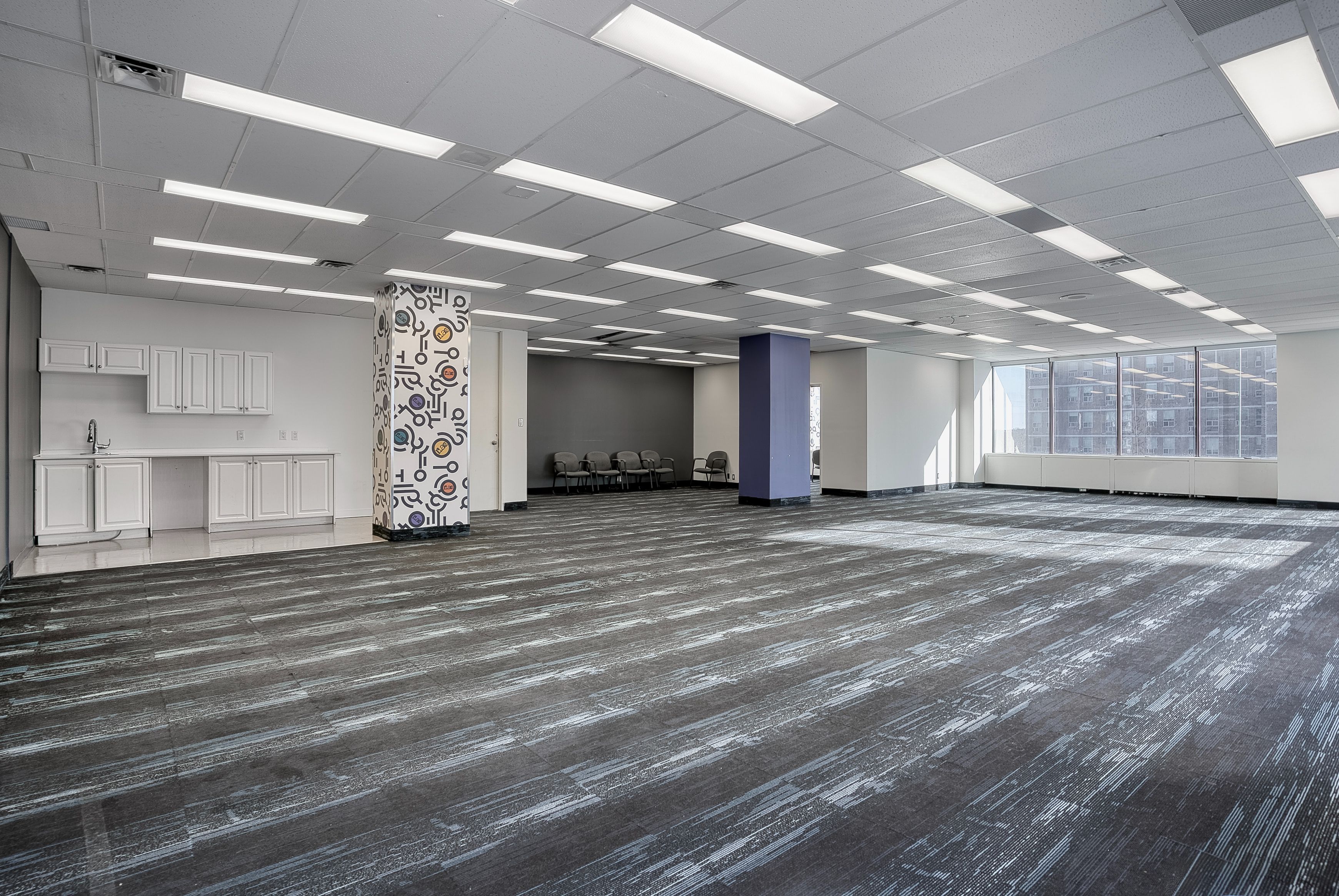 • Flexible space currently configured as mostly open with one office and kitchenette.