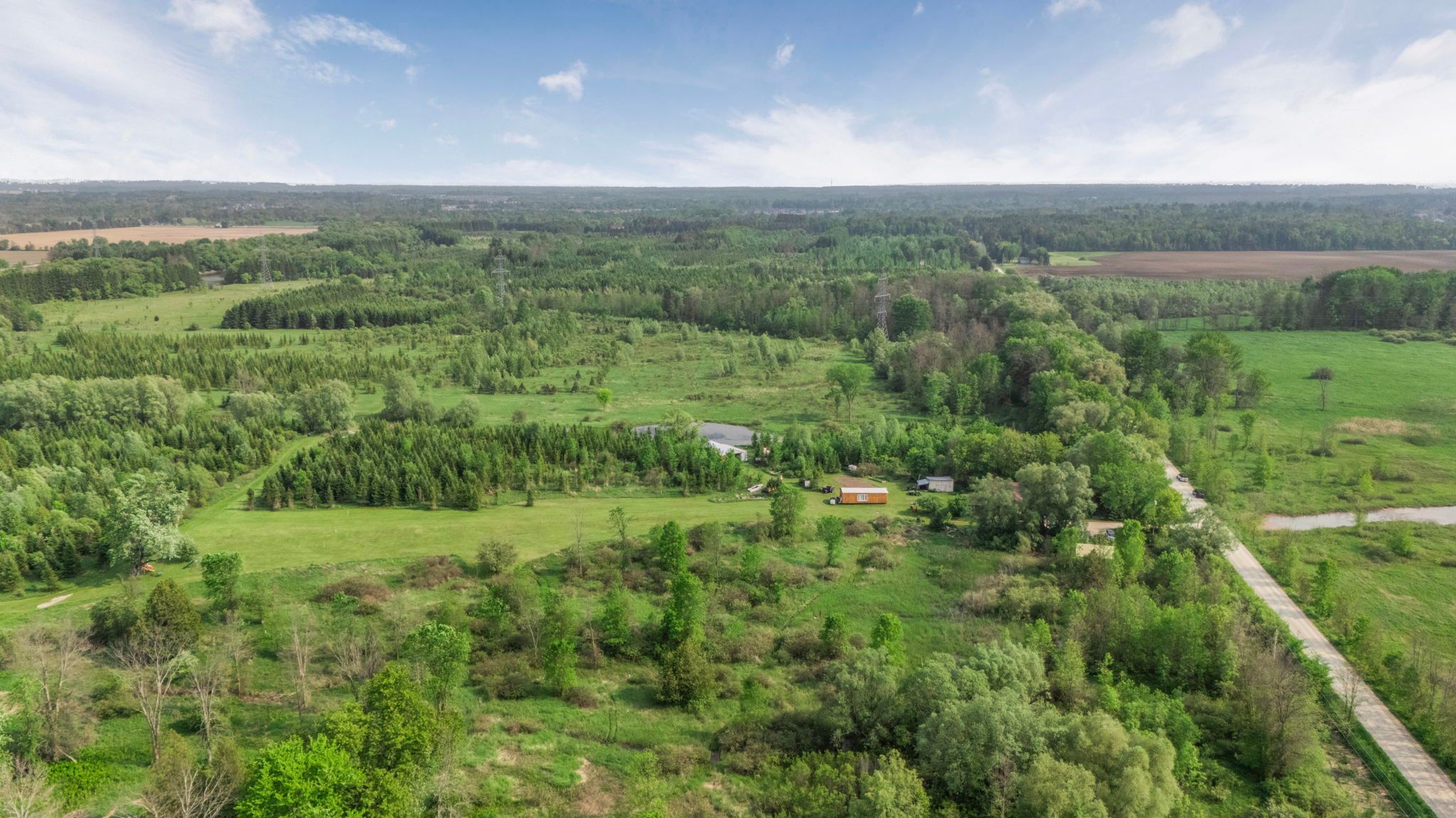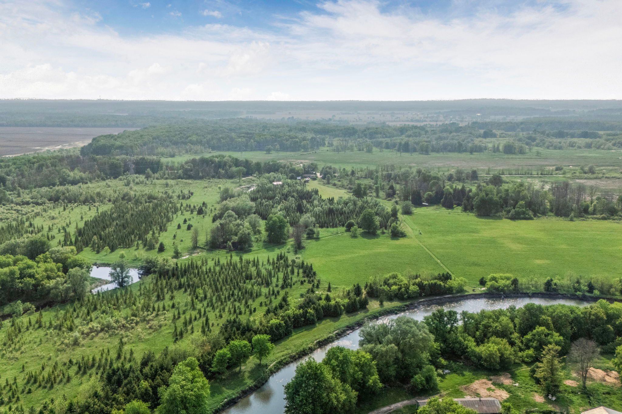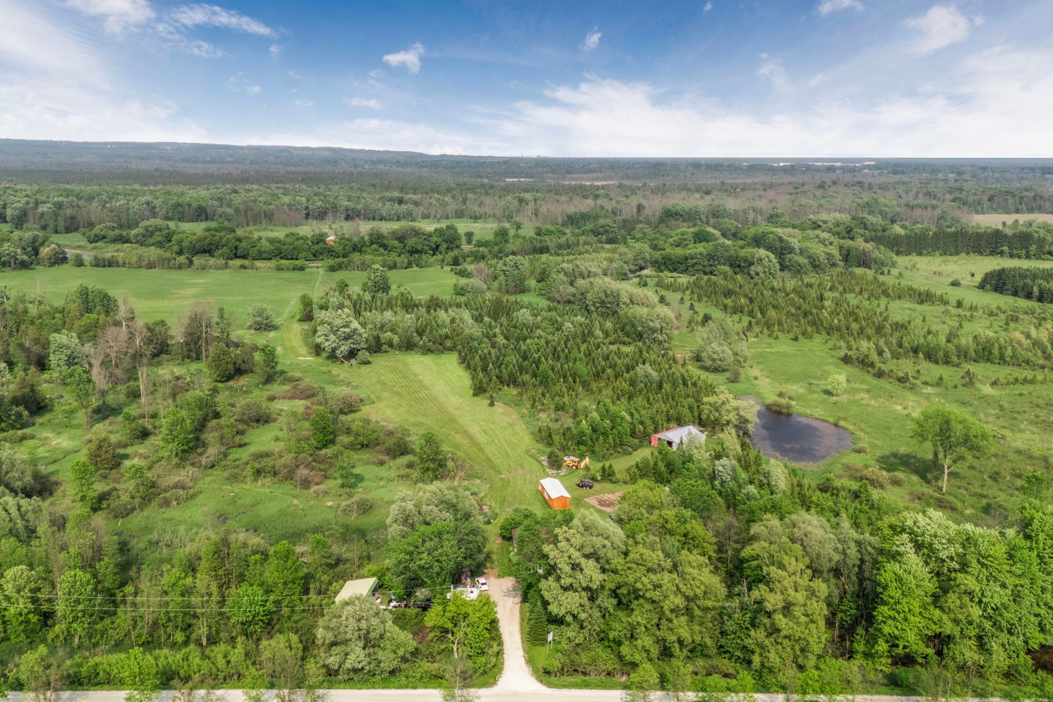 Welcome to 9205 mckinnon rd, a rare 105-acre sanctuary in angus, clearview township! Step into a world of natural beauty and boundless opportunity with this extraordinary property offering over 105 acres of serene landscape and an impressive 3,000 feet of nottawasaga river frontage perfect for peaceful fishing excursions for pike, salmon, and rainbow trout. Home to the renowned nottawasaga trees & gardens, this thriving hobby farm boasts over 29,000 planted trees, including 28,000 majestic balsam and fraser firs, along with sugar maples, black walnuts, apples, and much more. Nature lovers and entrepreneurs alike will appreciate the three picturesque ponds, 13 acres of nutrient-rich clover hay, and a steel roof chicken coop situated on a 1,000 sq ft fenced free range outdoor area, all woven together by private scenic trails that invite exploration with various activities. Looking for recreation? Practice your swing on your very own 194-yard iron golf range, or unwind in the farmhouses spacious rec room, complete with a pool table, hot tub, and breathtaking views of your backyard paradise. The 2,200+ sq ft bungalow features 4 bedrooms and 2 bathrooms, smartly divided with separate entrances, creating flexible income or multi-family living potential. Plus, a charming 480sq ft cabin on a 22-ton trailer offers the perfect at-home glamping retreat or guest house setup. Located just minutes from shopping, dining, golf courses, base borden, and only 15 minutes to barrie and hwy 400, this property combines seclusion and convenience in one unforgettable package. Whether you dream of a peaceful retreat, a sustainable lifestyle, or a turnkey agricultural venture, the possibilities at 9205 mckinnon rd are truly endless. Come build your legacy, where core memories are made, and nature meets opportunity.