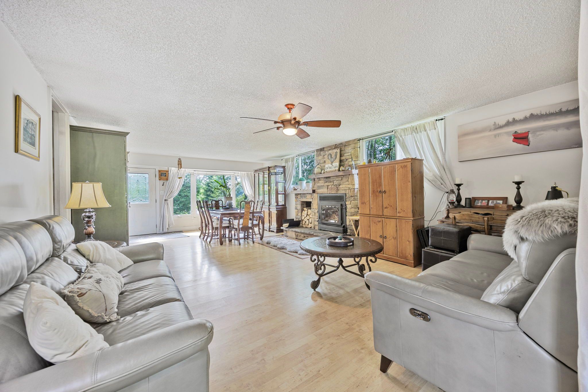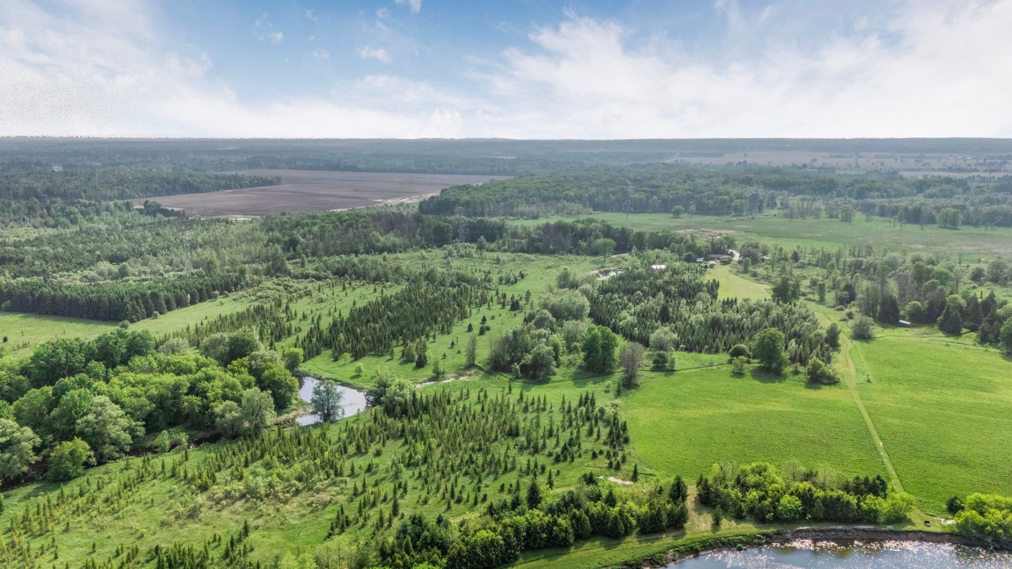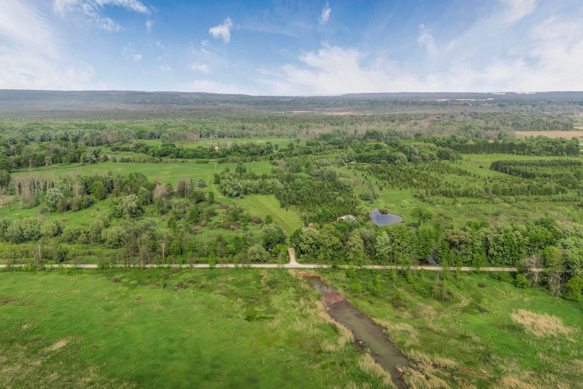 Welcome to 9205 mckinnon rd, a rare 105-acre sanctuary in angus, clearview township! Step into a world of natural beauty and boundless opportunity with this extraordinary property offering over 105 acres of serene landscape and an impressive 3,000 feet of nottawasaga river frontage perfect for peaceful fishing excursions for pike, salmon, and rainbow trout. Home to the renowned nottawasaga trees & gardens, this thriving hobby farm boasts over 29,000 planted trees, including 28,000 majestic balsam and fraser firs, along with sugar maples, black walnuts, apples, and much more. Nature lovers and entrepreneurs alike will appreciate the three picturesque ponds, 13 acres of nutrient-rich clover hay, and a steel roof chicken coop situated on a 1,000 sq ft fenced free range outdoor area, all woven together by private scenic trails that invite exploration with various activities. Looking for recreation? Practice your swing on your very own 194-yard iron golf range, or unwind in the farmhouses spacious rec room, complete with a pool table, hot tub, and breathtaking views of your backyard paradise. The 2,200+ sq ft bungalow features 4 bedrooms and 2 bathrooms, smartly divided with separate entrances, creating flexible income or multi-family living potential. Plus, a charming 480sq ft cabin on a 22-ton trailer offers the perfect at-home glamping retreat or guest house setup. Located just minutes from shopping, dining, golf courses, base borden, and only 15 minutes to barrie and hwy 400, this property combines seclusion and convenience in one unforgettable package. Whether you dream of a peaceful retreat, a sustainable lifestyle, or a turnkey agricultural venture, the possibilities at 9205 mckinnon rd are truly endless. Come build your legacy, where core memories are made, and nature meets opportunity.