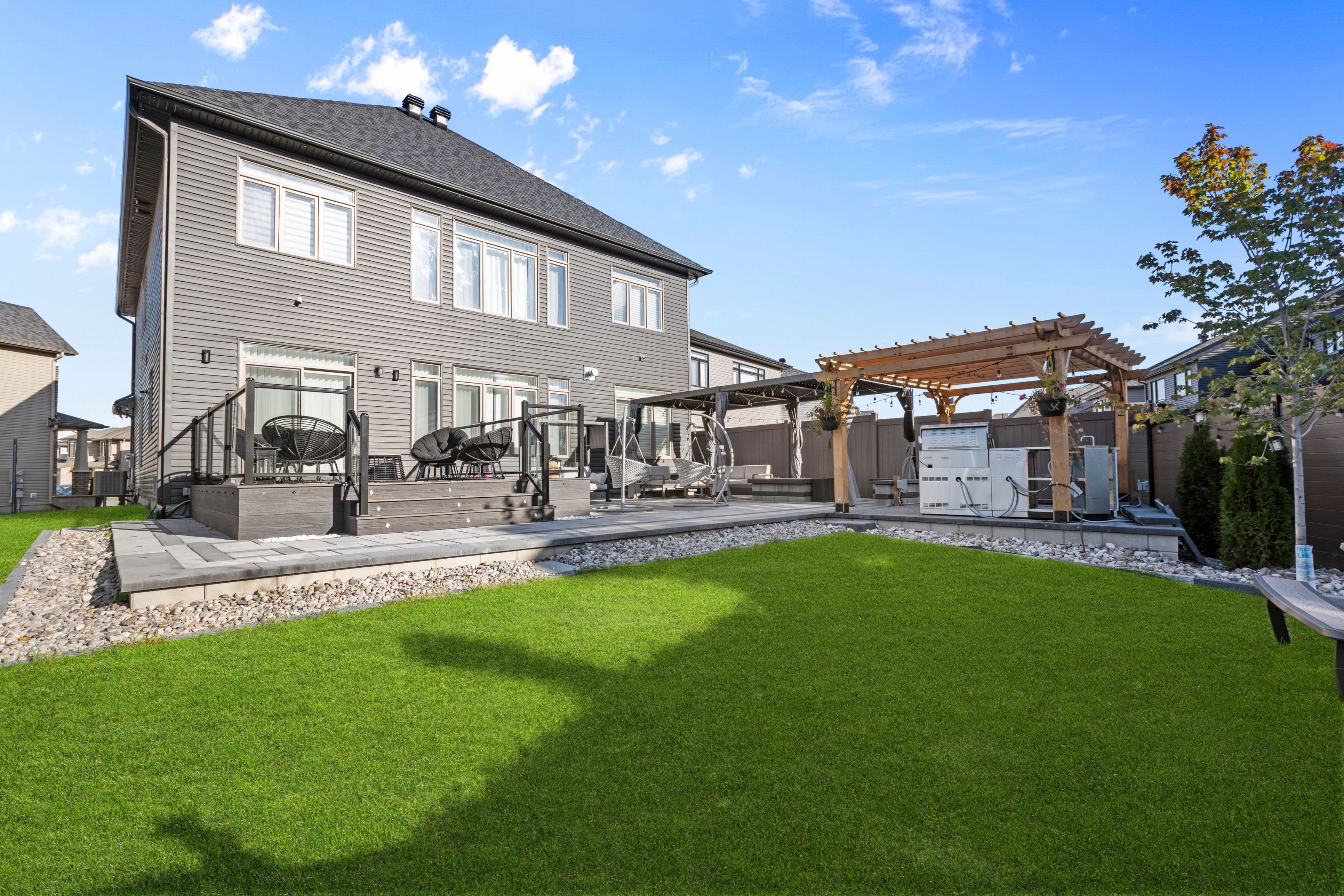 Intentional high level wow selections throughout this over 3800 square foot home on the first & upper level only! Over 4800 sf of finished space n& 9 foot ceilings on every floor! The lot is 131 ft deep & is over 100 ft across the back, talk about premium! No expense spared on the landscaping or outdoor kitchen! This property has all the bells & whistles of a custom rural home but with the conveniences of suburban living making it in a class by its own!! Cheo dream home vibes inside as the same designer designed this home, an incredibly styled home! This 5-bedroom home offers an incredible floor plan, there are the traditional formal living & dining rooms plus a den & library on the main floor! The dining is formal but very cool as it offers open to above ceilings & a jaw dropping light fixture! The majority of the lighting in this home is from the luxury brand eurofase! The great room shares a 2-sided upgraded fireplace with the library that could be used as a 6th bedroom complete w full bath right beside it, perfect for in law suite! The deslaurier kitchen in an angora colour is right out of a magazine, complete with actual chef's samsung bespoke category appliances that are "smart & beautiful"! The primary bedroom offers a large walk-in closet & luxurious 5-piece ensuite! Bedroom 2 & 3 share a beautiful jack & jill bath that has 2 separate vanities!! 5 good-sized bedrooms with walk ins on the 2nd level is a very rare find! Fully finished lower level complete with a custom full bathroom that is actually like a piece of art, all plumbing fixtures in this bathroom are from baril! The never-been-used "newage" outdoor kitchen offers a 36" natural gas grill, platinum dual side burners plus hot & cold-water connections to name a very few of the features! A home that is sure to surpass your expectations!