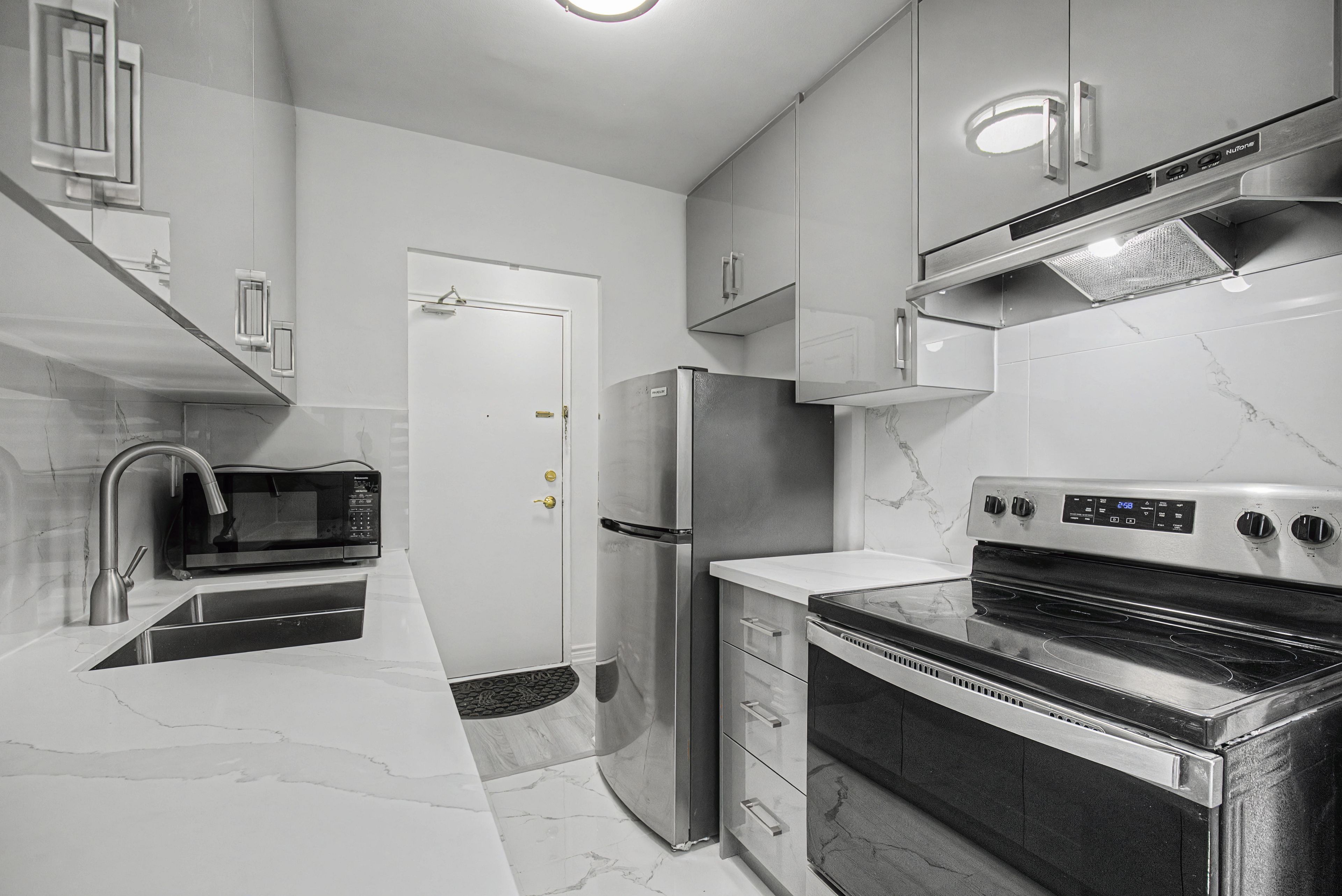 • Spacious, fully renovated two-bedroom apartment in a quiet mid-rise building.