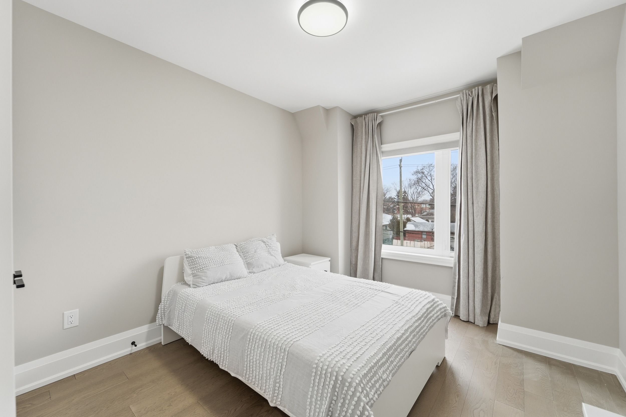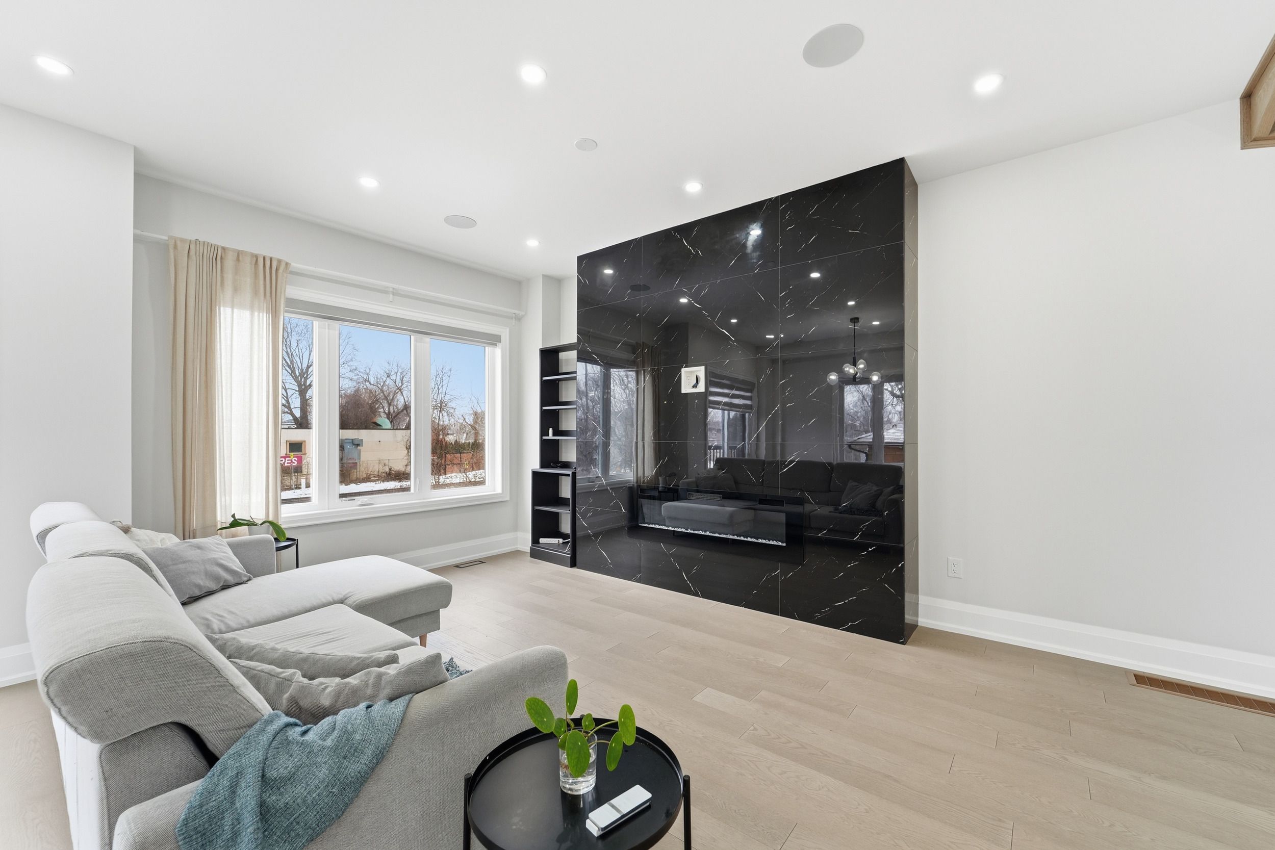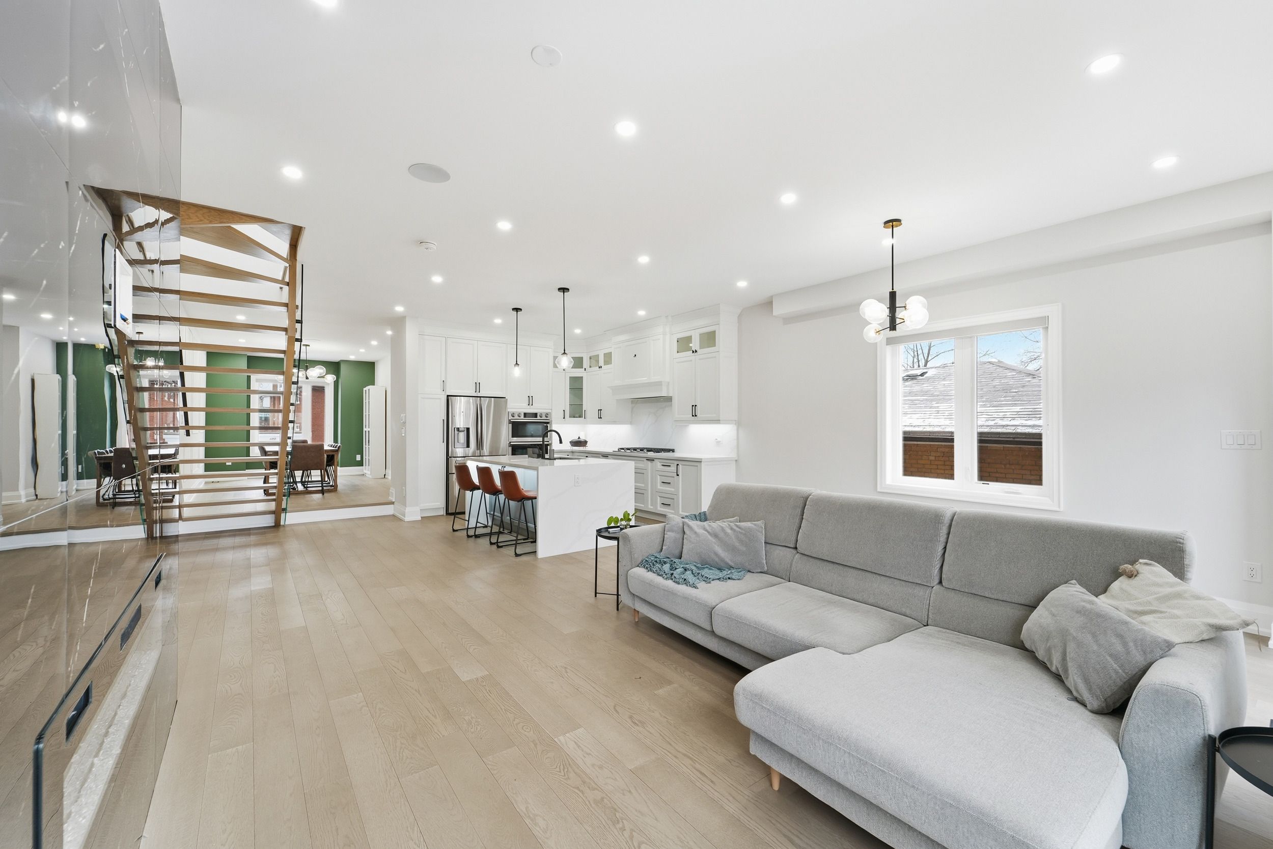Absolutely stunning new semi-detached home for lease. Elegant custom-built residence offering luxurious living space with premium finishes throughout. Gourmet kitchen: custom design with top-of-the-line stainless steel appliances, large center island, quartz countertops, and quartz backsplash. Open-concept living/dining: hardwood floors, pot lighting, and a seamless flow for entertaining. Family room: spacious area with a 48-inch built-in electric fireplace and designer feature wall. Stunning staircase: floating oak treads with glass railing and modern black hardware. Four bedrooms & three bathrooms on the second floor, including a primary suite with a spa-like 5-pc ensuite and walk-in closet. Two skylights fill the space with natural light. Ideal for big family. Basement has a separate entrance and private bedroom/washroom