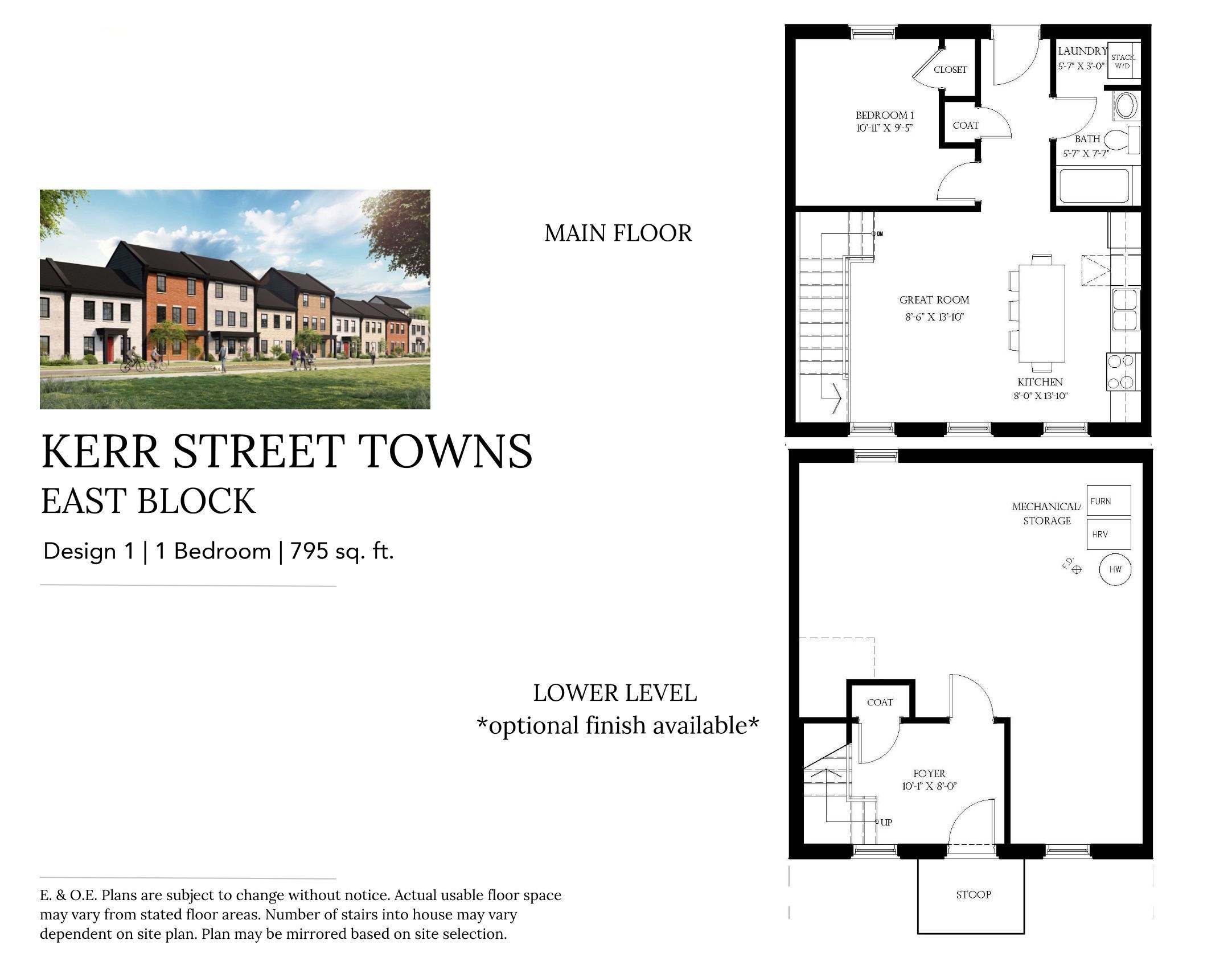 This thoughtfully designed, [to-be-built] brick townhome by new amherst homes offers 795 sq ft of comfortable living space, featuring 1 bedroom and 1 bathroom. The home showcases modern finishes, including 9' smooth ceilings throughout and durable vinyl plank flooring. Convenience meets functionality with a garden/utility storage shed, two parking spaces, and a sodded yard for outdoor enjoyment. The front of the home will have a paving stone walkway and a garden bed, while the back entrance features minimal stairs for easy access. Looking for more living space? There's an option to finish the lower level, at an additional cost, which would add a rec room, an additional bedroom, and a 3-piece bath. With closings set for summer 2026. Exterior colours are preselected for a cohesive neighbourhood aesthetic.