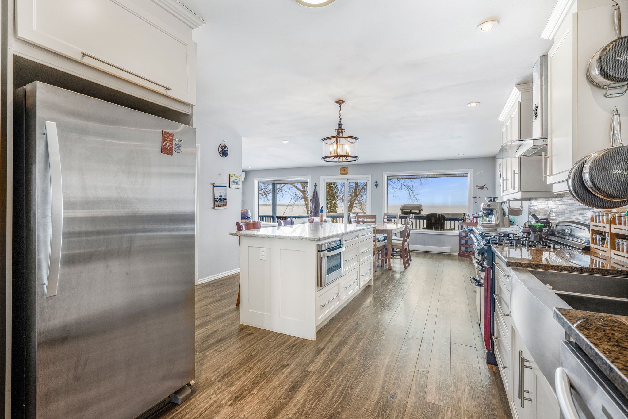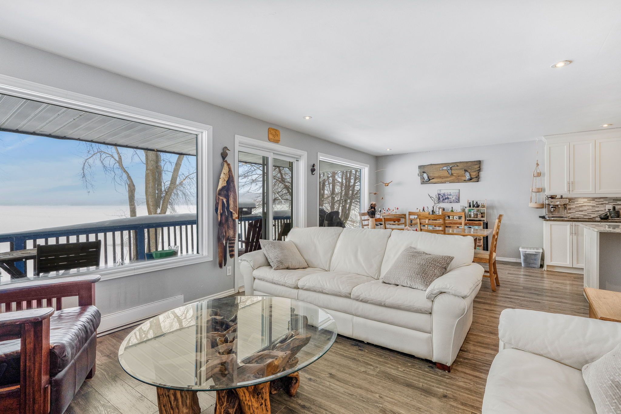 Waterfront playground all year round with unreal sunsets. 1+2 beds, 1+1 baths. Beautifully updated in 2019 ( roof , windows, garage door, entry doors, basement flooring, kitchen island, and some cabinets) this home offers unreal sunsets and fuzzy feelings with 1st row seats to every changing season. It is welcoming the moment you step inside. Enclosed mud room leads to a well designed open concept layout. Featuring a gourmet kitchen, center island with granite lunch counter, pantry , gas cookstove and built in microwave, ss dishwasher. Bright an airy open concept dining and living room. Patio doors invite you to a covered deck where you can unwind and watch the ottawa river 's scenery. The main floor primary bedroom offers a walk in closet and a cheater ensuite with a soaker tub. The fully finished ground level, has a perfect space for easy entertaining with it's own bar and walk out patio to a 2nd covered porch. Boasting a 2nd primary bed with cheater ensuite. 3rd bedroom and a 4th room is a flex space and large laundry area . This lower level is ideal for children, guests or a multi - generational living. 2024- 2025 updates include dog crate entry to garage, new propane tank, new gas heating system in the attached garage, a new outdoor staircase to access backyard directly from 2nd level deck, slop emprovement and additional 3rd covered outdoor space where i imagine a state of the art outdoor culinary haven would find, your grill, smoker, pizza oven and griddle. Dock your boat at home, fish, snowmobile too!