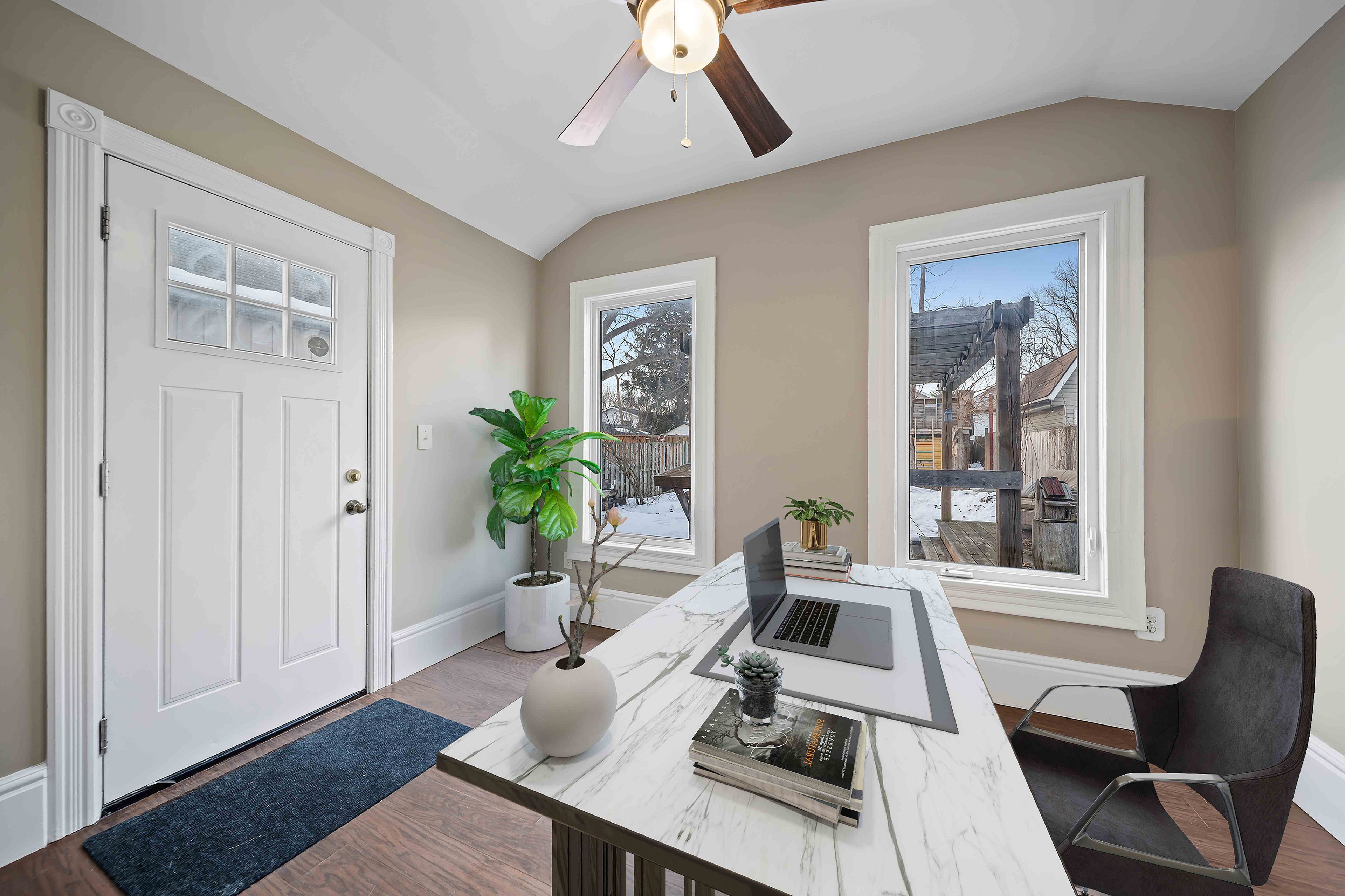 • Good-sized backyard perfect for relaxing, entertaining, or gardening.