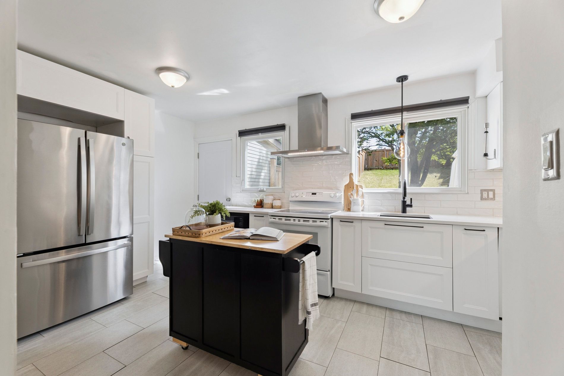 • Upgraded kitchen with quartz countertops and new stainless appliances.