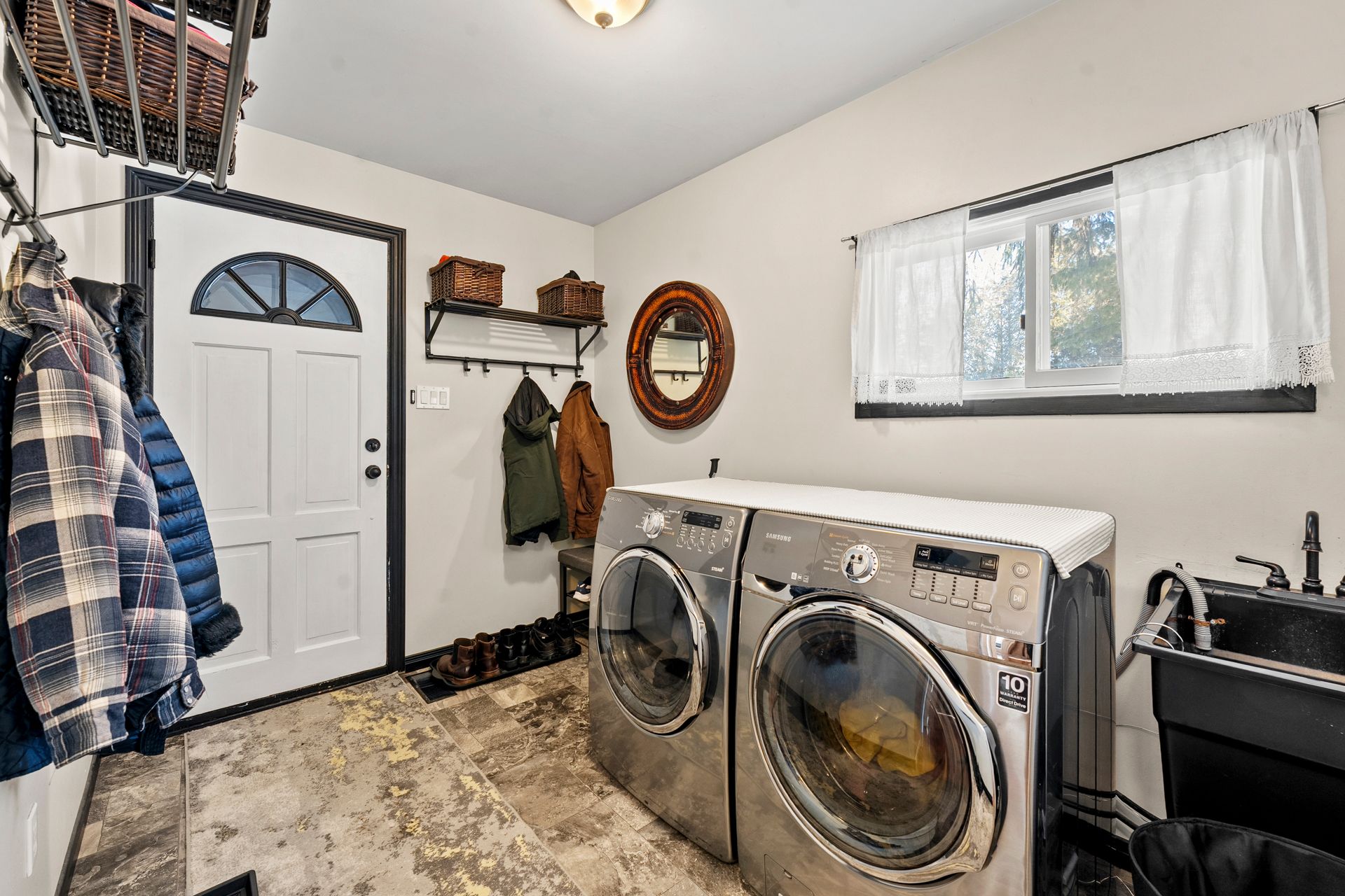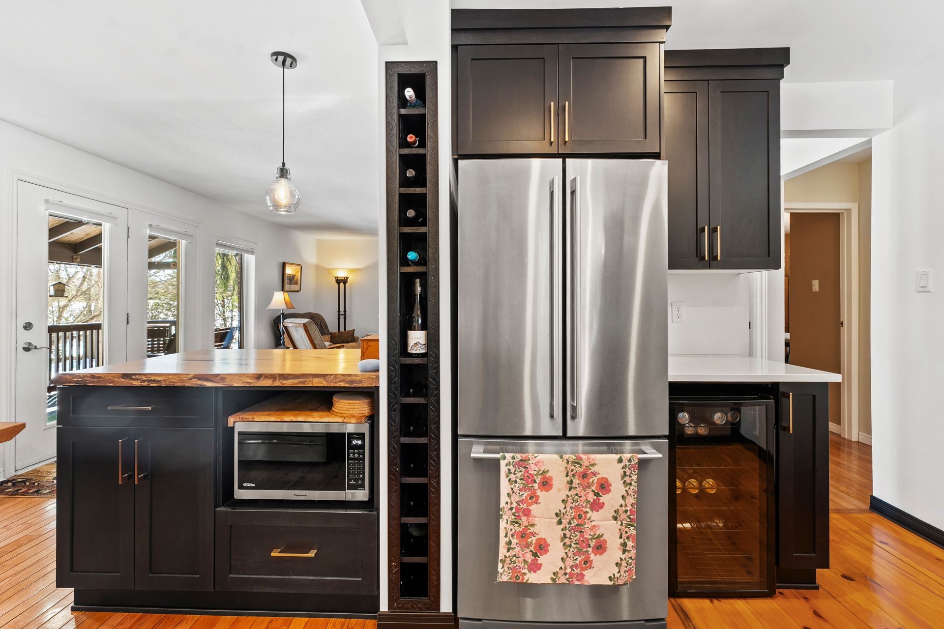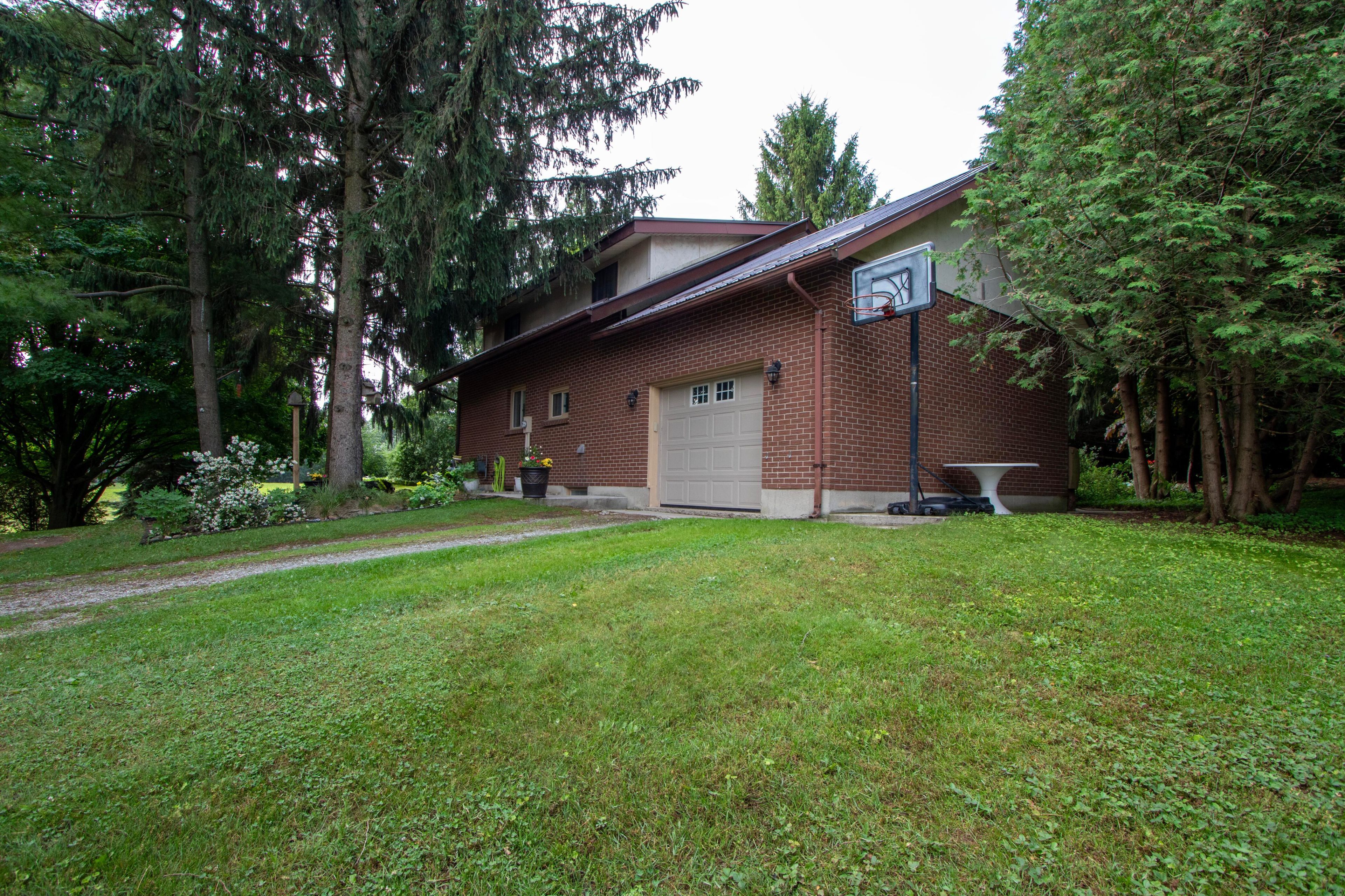 Country charm! Situated amongst mature trees on just over an acre of beautifully landscaped land, this well-maintained rural property offers the peace of country living with convenient access to st. Marys, stratford, london, and woodstock. This inviting 3-bedroom, 2-bathroom home with attached garage showcases warm, timeless character throughout. The updated kitchen features stone countertops, a farmhouse apron sink, custom pantry and wine rack, beverage fridge, with modern country finishes including pine flooring and live-edge wood accents. The spacious living room is anchored by oak flooring and a stunning fieldstone wood-burning fireplace, flowing seamlessly to the kitchen, all overlooking an expansive covered porch with sweeping countryside views. A separate dining room opens to a private garden patio retreat complete with hot tub - perfect for relaxing or entertaining. The main-floor laundry/mudroom offers practical everyday convenience with direct access to the garage. The finished lower level adds valuable living space with a recreation room, workshop area, and walkout to the backyard. Outdoors, the rear two-tiered deck captures panoramic rural vistas, while the mature trees and landscaping create exceptional privacy. Ideally located near wildwood conservation area, happy hills campground, and scenic country amenities. A rare opportunity to enjoy tranquil country living without sacrificing proximity to town conveniences.