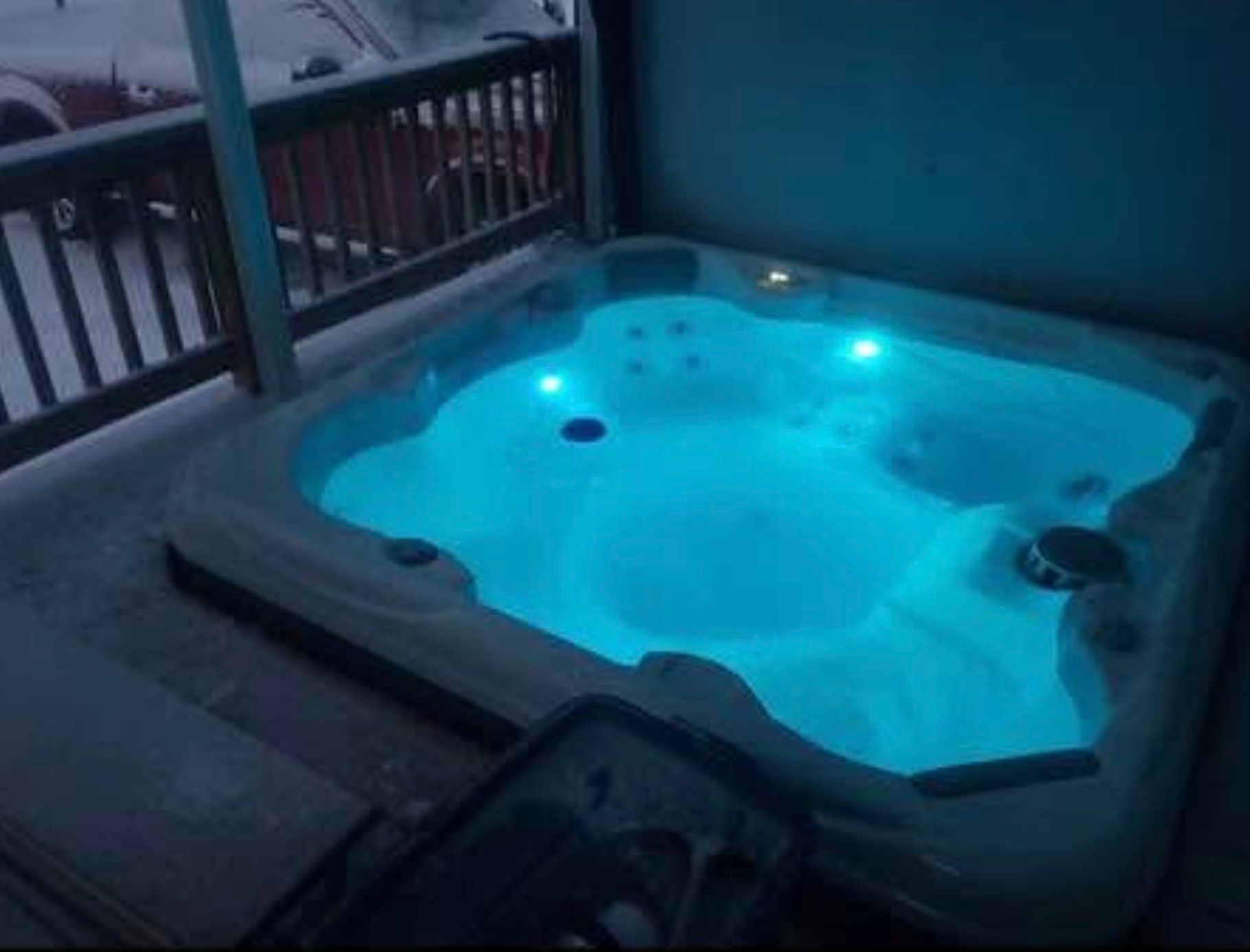 • Relaxing outdoor space with a covered porch and recessed hot tub.