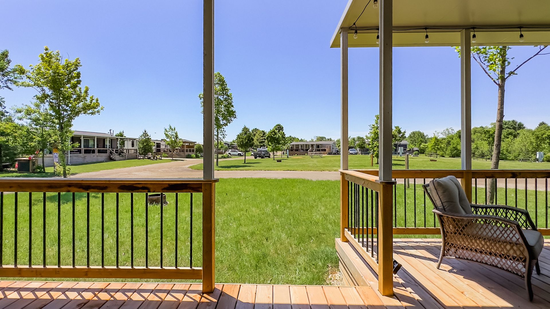 Welcome to happy hills family campground! This charming mobile home located in the 5 month seasonal section is nestled in a fabulous location which offers a perfect blend of comfort and adventure. Featuring 2 bedrooms plus loft and 1 bathroom, this cozy retreat boasts modern amenities including a fully-equipped kitchen with stainless steel appliances, propane gas stove, living and dining area. You will love the recently added spacious covered outdoor deck for savoring those tranquil evenings under the stars or by the fire. Enjoy access to the family-friendly amenities such as swimming pools, playgrounds, happy hills express, tennis, golf, mini put, and so much more. Whether you're seeking a weekend getaway or a place to call home this summer, happy hills invites you to experience the joys of camping in comfort. Contact your realtor today to book your private showing.