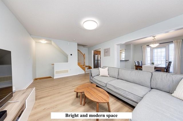 Welcome home! This end unit stacked townhouse is bright and inviting with a modern open concept layout. This home offers 2 bedrooms with 1. 5 bath's making it perfect for young professionals or downsizing. Located in a desirable area of milton, you'll find lots of parks, schools and amenities with close access to highways. Minimum 1 year lease.