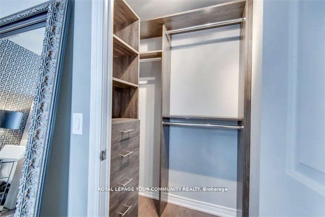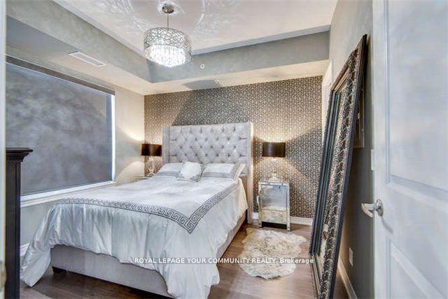 Stunning open concept design featuring 1 bedroom plus den with 2 bathrooms in the newest bellaria tower 4. The suite has been beautifully upgraded, featuring smooth 9-foot ceilings, an upgraded kitchen with granite countertops and matching backsplash. The custom-built wall units, shelves, and desk are made from imported zebra wood, adding a touch of elegance. Crystal chandeliers enhance the ambiance, while the master bedroom impresses with versace wallpaper and a rare oversized walk-in closet. Conveniently located near transit, shopping, vaughan mills and canada's wonderland. Super clean and tidy. A beautiful space that will be a pleasure to call home and one you can be proud of.