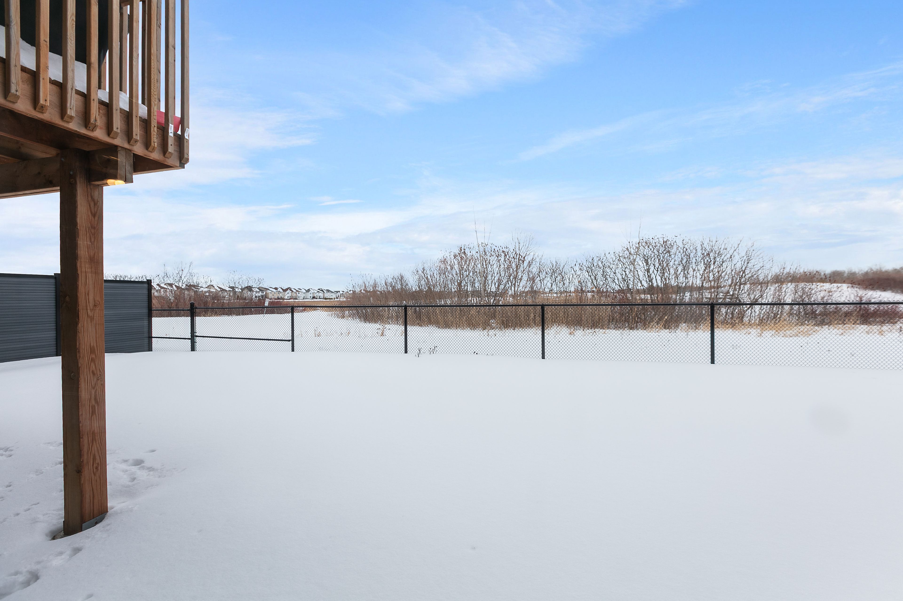 • Private lot with direct views of a tranquil pond and scenic pathway.