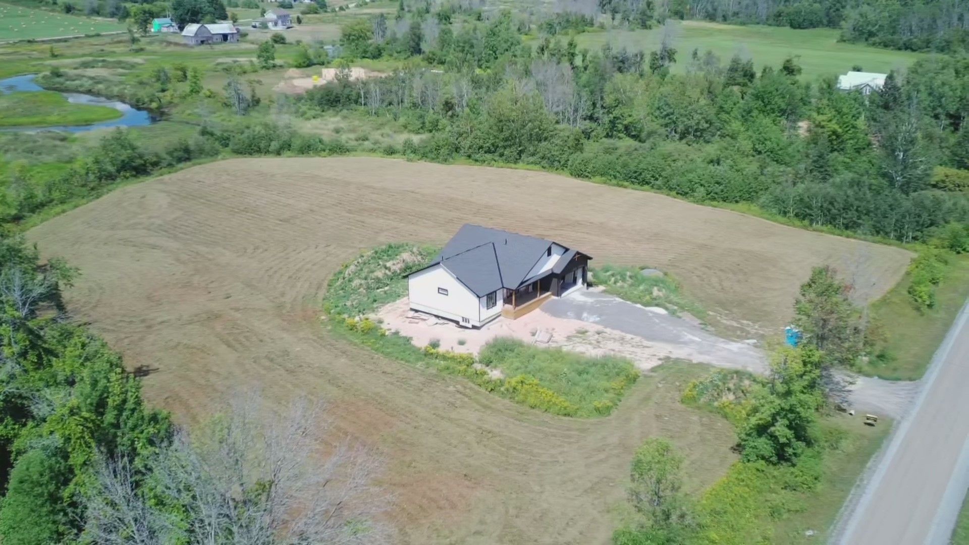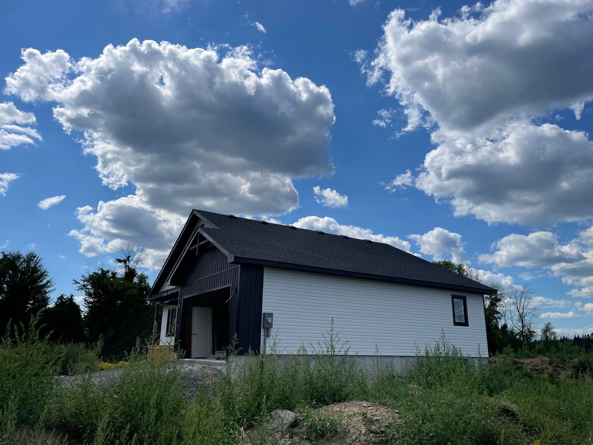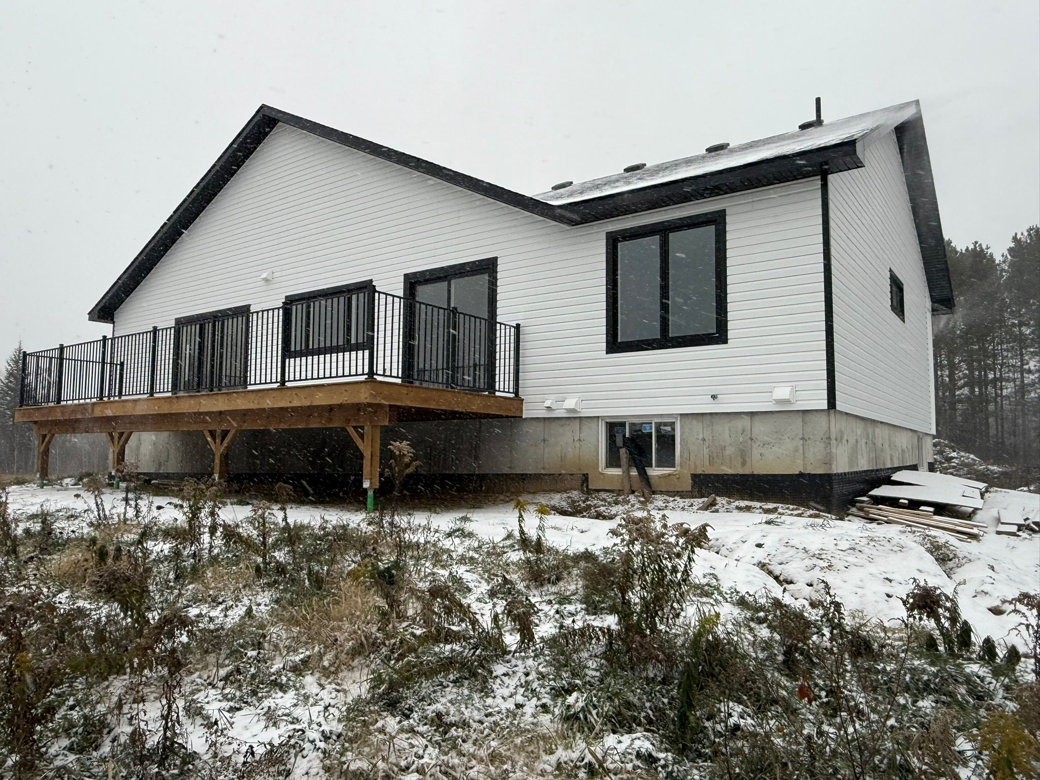 A rare opportunity to own a new custom home on an exceptional property. Set on 5 acres, backing onto the southern tributary of kemptville creek, this 3 bedroom, 2 bathroom, 1,450 sq. Ft. Home combines timeless farmhouse charm with thoughtful modern design. Cathedral ceilings, oversized windows in the open concept kitchen/living/dining area flood the space with natural light. Custom fireplace and reclaimed barn-wood accents create a warm, elegant space. The kitchen features handcrafted details and generous prep space. The primary suite includes a custom tile shower and tranquil views of the surrounding woods out the double-wide patio doors, leading to an expansive rear deck. A full 8-foot basement provides potential for additional living and hobby space. This home is currently under construction, giving buyers a unique opportunity to tailor the space to their personal style. Move into your dream home before the holidays! Located just 15 minutes from brockville, this gorgeous home has the benefit of a tarion warranty for peace of mind. Don't miss this chance to own a new custom home on one of the area's most desirable pieces of land.
