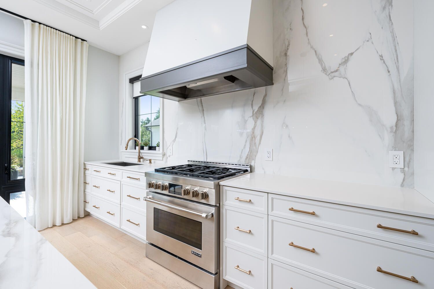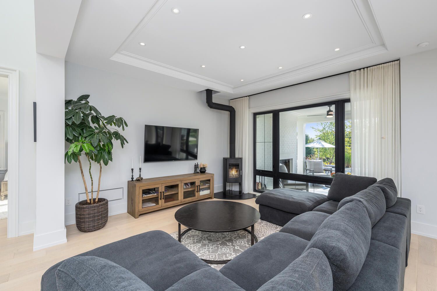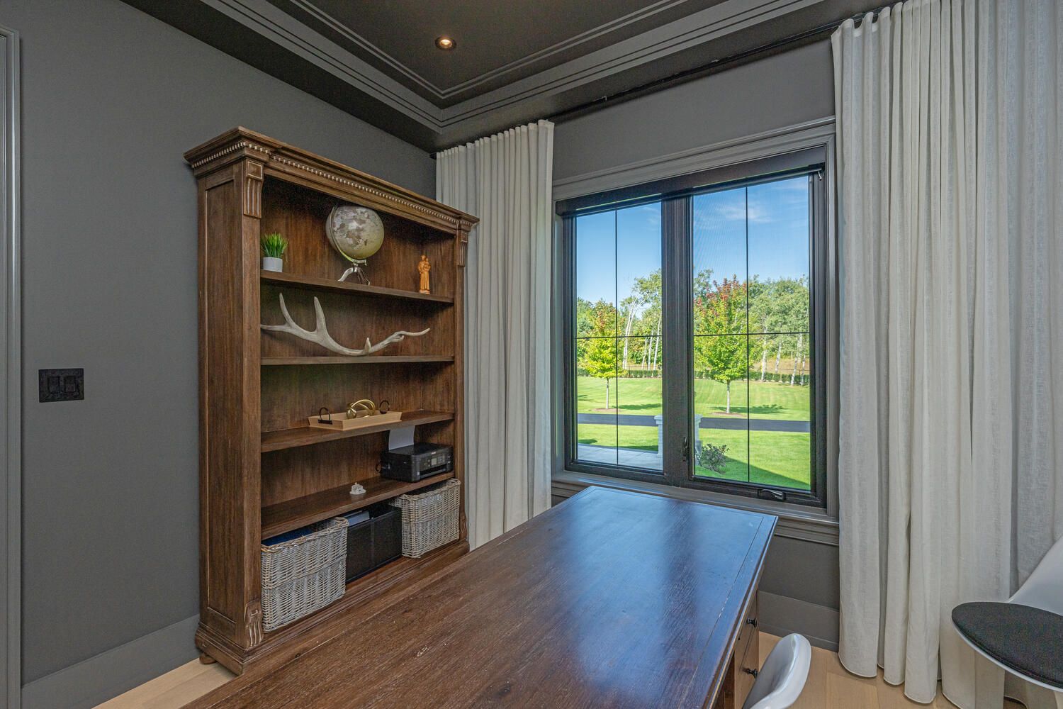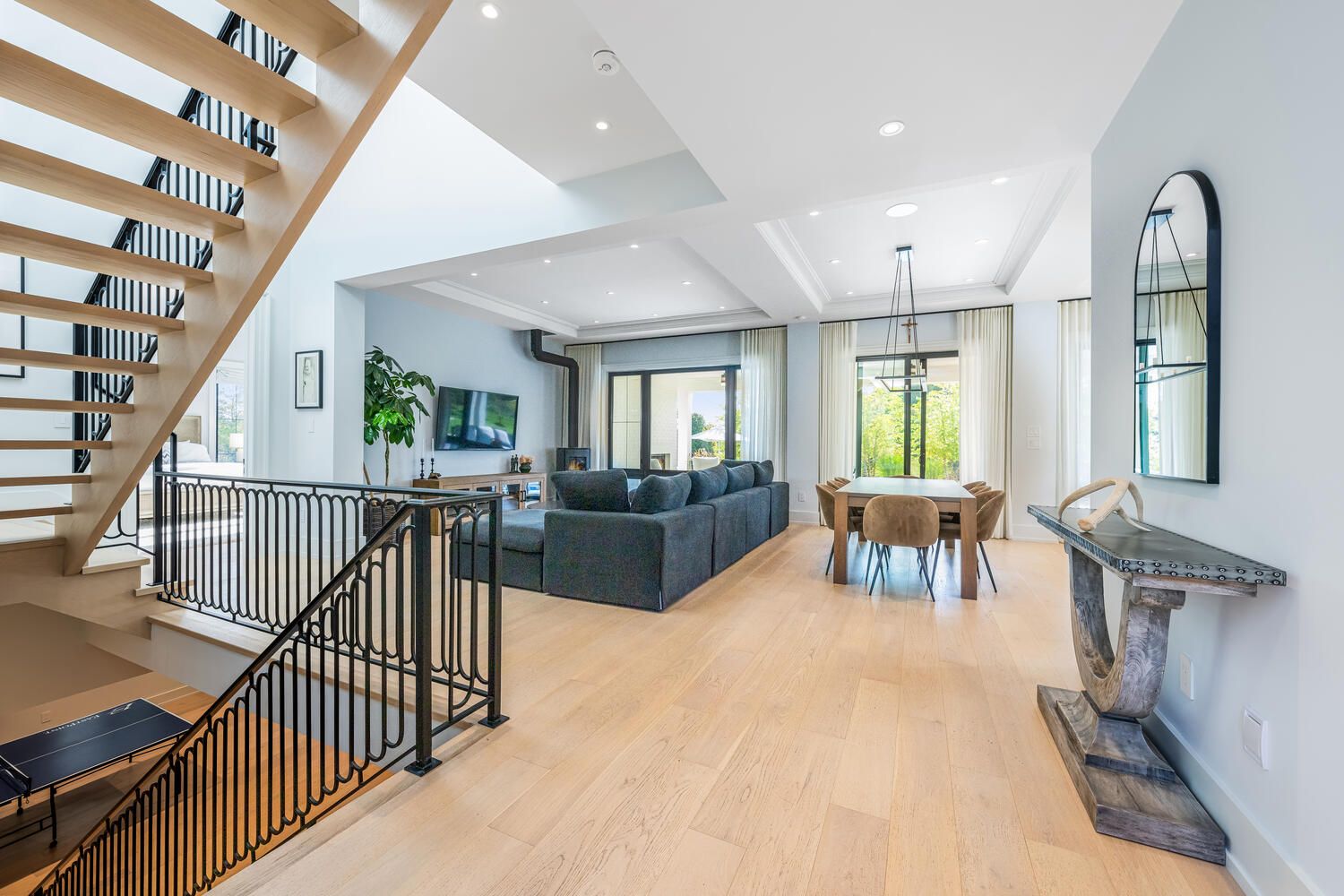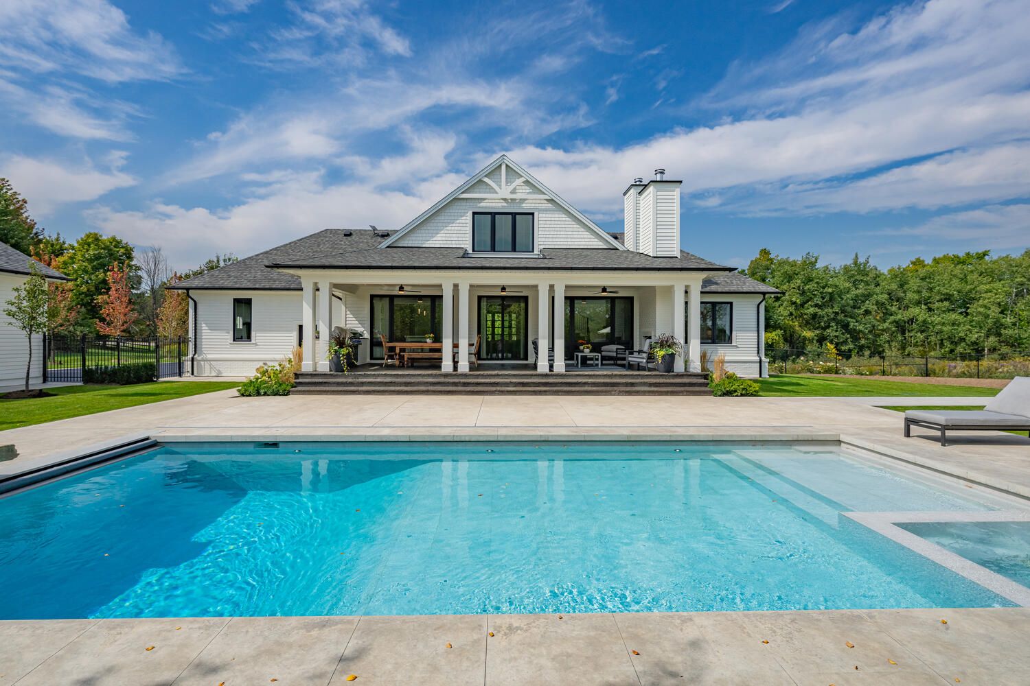 When home is a sanctuary: from the moment you drive through the gates of this john wilmott-designed custom home, every detail speaks of exceptional craftsmanship. The handcrafted modular brick and cape cod siding set the tone, while the crushed granite flagstone path leads to a stunning mahogany entry door. Step inside to soaring 10-ft ceilings, white oak flooring, custom poplar trim, and elegant crown mouldings - a home that truly inspires. The heart of the home is thekitchen with marble counters, opening to a covered back porch featuring a brick fireplace, built-in bbq, concrete pool and spa, and a seamless speaker system - perfect for entertaining year-round. Relax in the main-floor principal bedroom with a spa-like ensuite, curbless shower, and a large walk-in closet. A main-floor office, powder room, and laundry complete the level. Upstairs, two additional bedrooms and a bathroom provide space for family or guests. The lower level boasts a large family room with above-grade windows and fireplace, an additional bedroom and bath, a sizable exercise room with rubber flooring, and ample storage with built-in cupboards. Step outside to thoughtfully designed landscaping for privacy and impact. Park with ease in the oversized 2-car garage with epoxy floors or take advantage of the additional detached garage with heated floors, a 3-piece bath/change room, and a custom wood-burning oven. This isn't just a home - it's a lifestyle of luxury, attention to detail, and timeless design.
