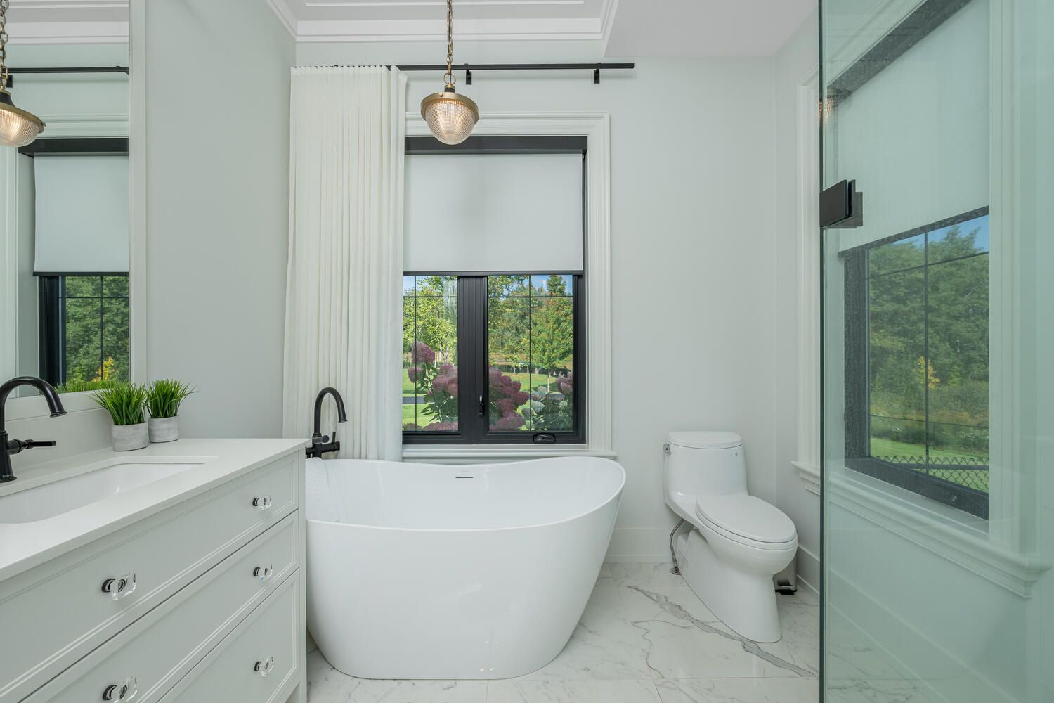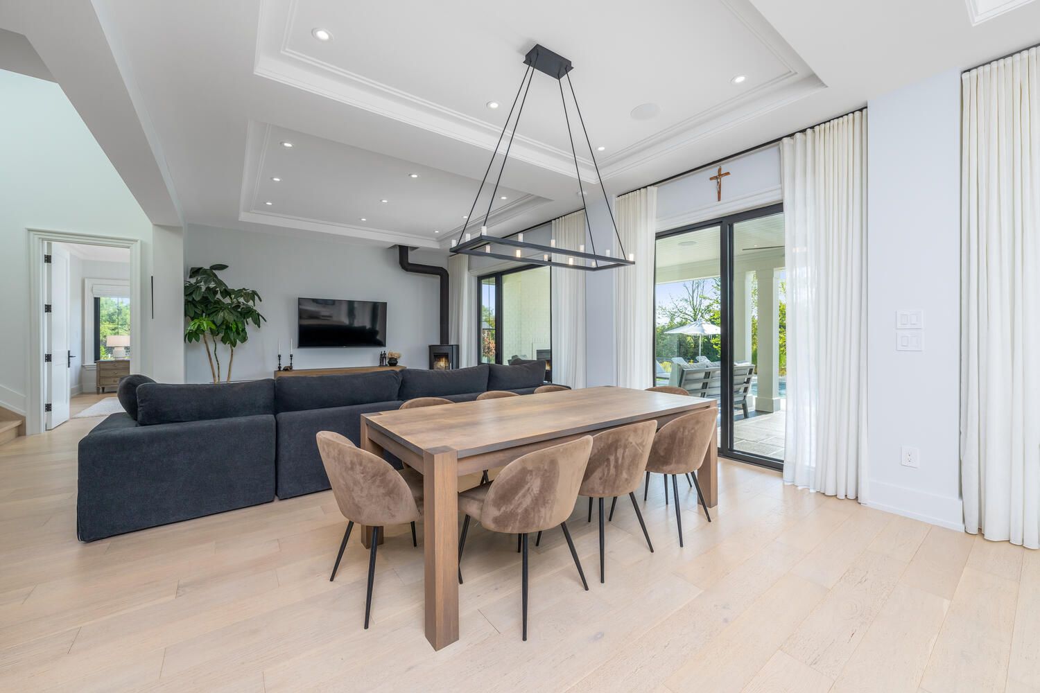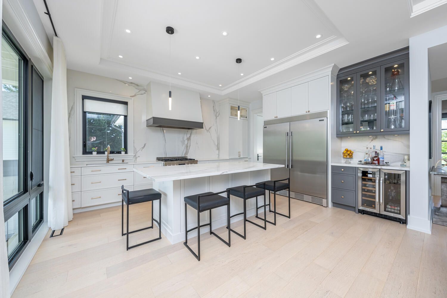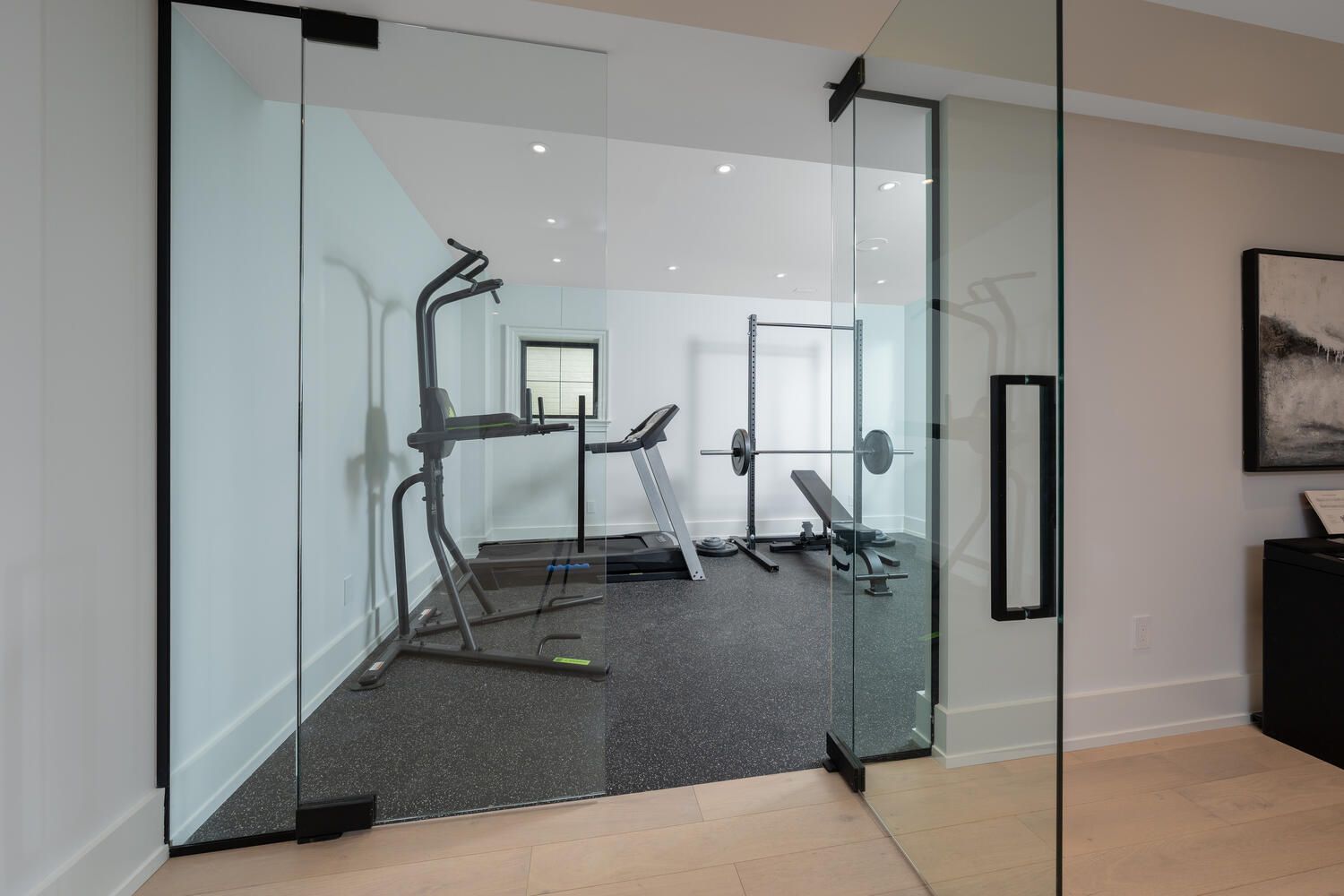 When home is a sanctuary: from the moment you drive through the gates of this john wilmott-designed custom home, every detail speaks of exceptional craftsmanship. The handcrafted modular brick and cape cod siding set the tone, while the crushed granite flagstone path leads to a stunning mahogany entry door. Step inside to soaring 10-ft ceilings, white oak flooring, custom poplar trim, and elegant crown mouldings - a home that truly inspires. The heart of the home is thekitchen with marble counters, opening to a covered back porch featuring a brick fireplace, built-in bbq, concrete pool and spa, and a seamless speaker system - perfect for entertaining year-round. Relax in the main-floor principal bedroom with a spa-like ensuite, curbless shower, and a large walk-in closet. A main-floor office, powder room, and laundry complete the level. Upstairs, two additional bedrooms and a bathroom provide space for family or guests. The lower level boasts a large family room with above-grade windows and fireplace, an additional bedroom and bath, a sizable exercise room with rubber flooring, and ample storage with built-in cupboards. Step outside to thoughtfully designed landscaping for privacy and impact. Park with ease in the oversized 2-car garage with epoxy floors or take advantage of the additional detached garage with heated floors, a 3-piece bath/change room, and a custom wood-burning oven. This isn't just a home - it's a lifestyle of luxury, attention to detail, and timeless design.