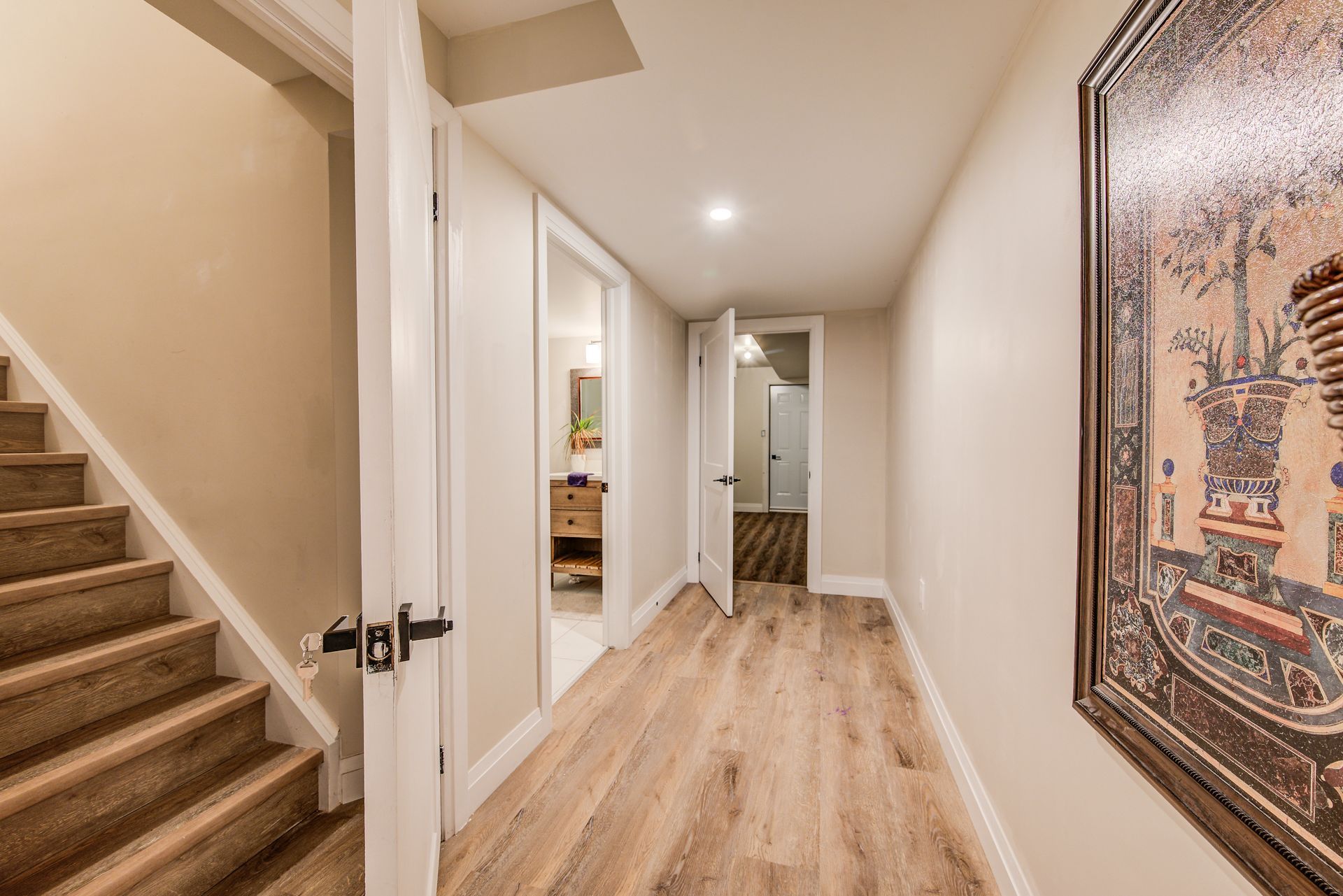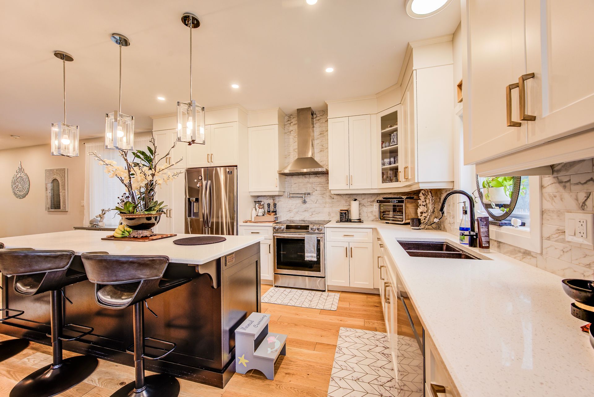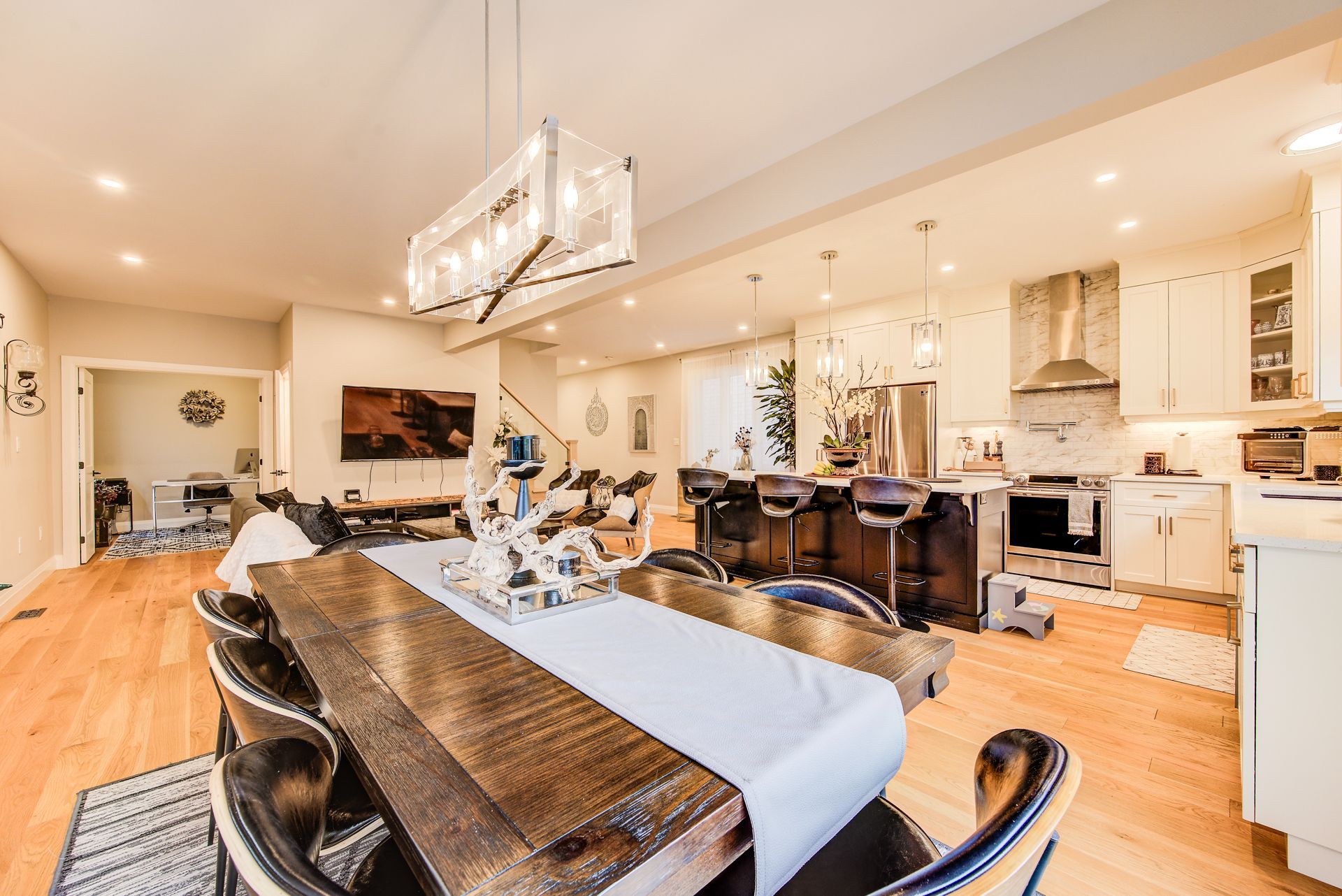 This stunning, former crescent model home in doon crossing is complete top to bottom with luxury finishes. No item has been overlooked when it comes to this beautifully finished, dundee b model in south kitchener, complete with a walkout basement with a bedroom and a kitchen, which makes it perfect for an in-law suite. Nestled amongst a private collection of custom homes, this 2-story home feels extremely lavish and spacious. Upon entry, you walk into a large foyer with ample storage and a 2-piece powder room. Once in the heart of the home, you will find a breathtaking kitchen with custom cabinetry with gold accents - including tall upper cabinets with crown moulding, quartz countertops, a massive island with pendant lighting, pot filler and tasteful backsplash. This kitchen is truly to die for. Adjacent to the kitchen, you will find a bright and open concept living room and a dining room, perfect for hosting friends and family. Rounding out the main floor is a separate office space for those working from home. Moving upstairs, you will find a custom staircase with glass panelling that leads you to the breathtaking master suite. The master suite is separate from the remaining 3 bedrooms on this floor, has two large walk-in closets and an ensuite you will never want to leave; it is complete with a soaker tub, walk-in shower with bench and a double vanity. The second floor has 3 other large bedrooms and another bathroom for the rest of the family. Chapel hill court is 7 minutes to the 401, close to shopping and great schools. There are ample walking trails in the area, a golf course and conestoga college. Every detail in this home is finished with class and quality. Large windows throughout the home on every level for natural light, and a gorgeous glass staircase leading you to the upper level. Landscaped tastefully, fully fenced private backyard with an upper-level deck backing onto a natural environment. This home is a must-see! You will truly be amazed!