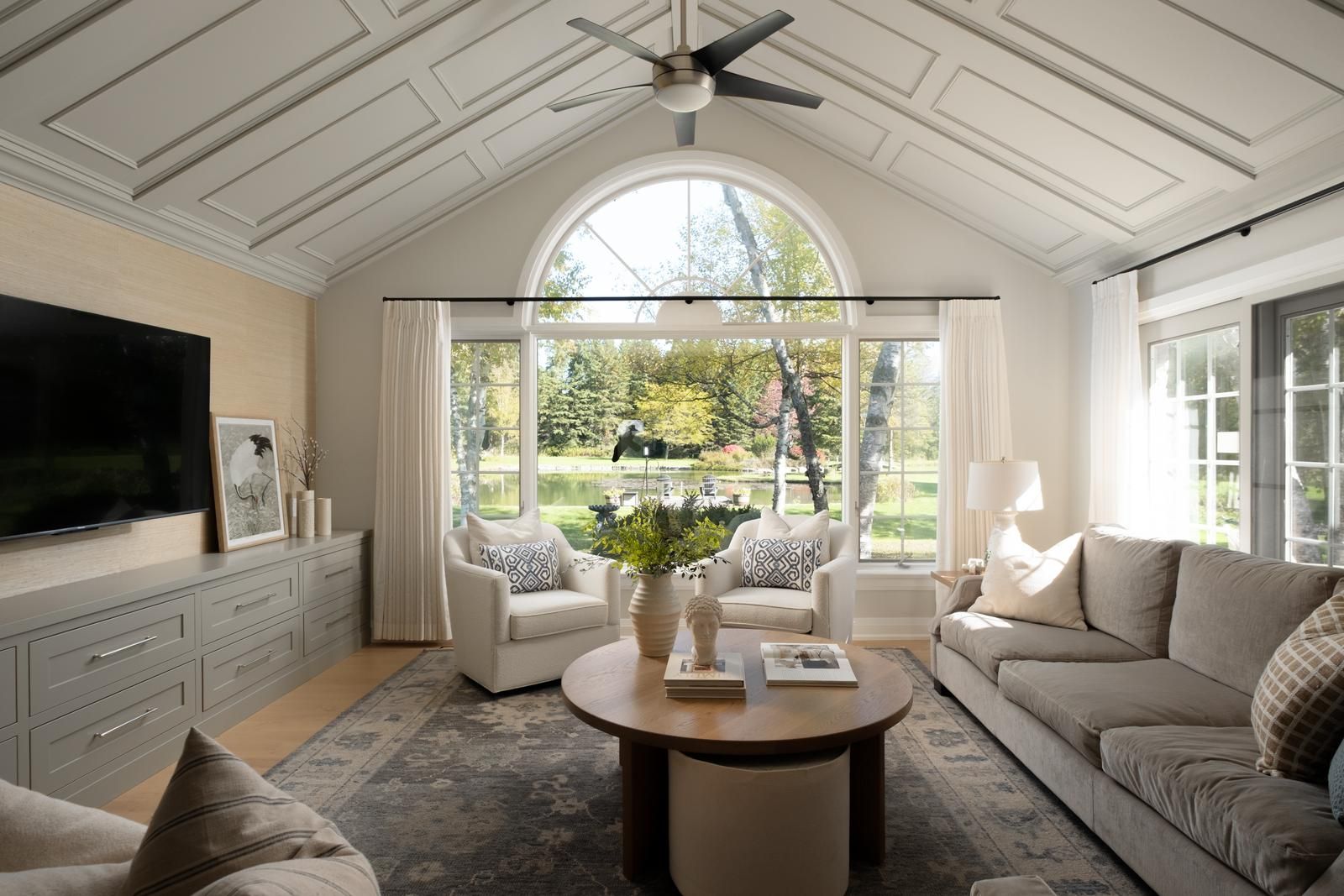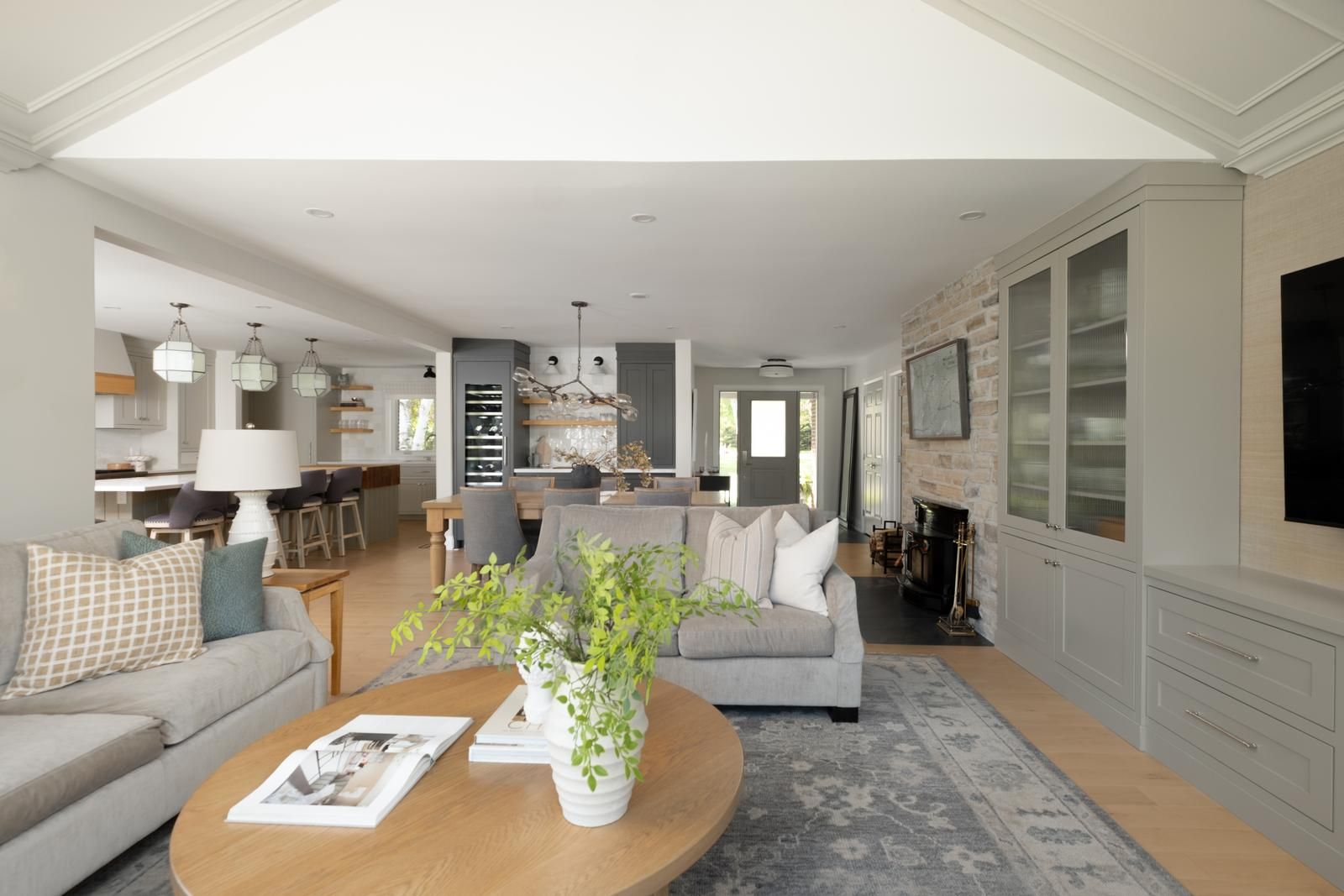 • Renovated open concept living areas featuring custom millwork and vaulted ceiling.