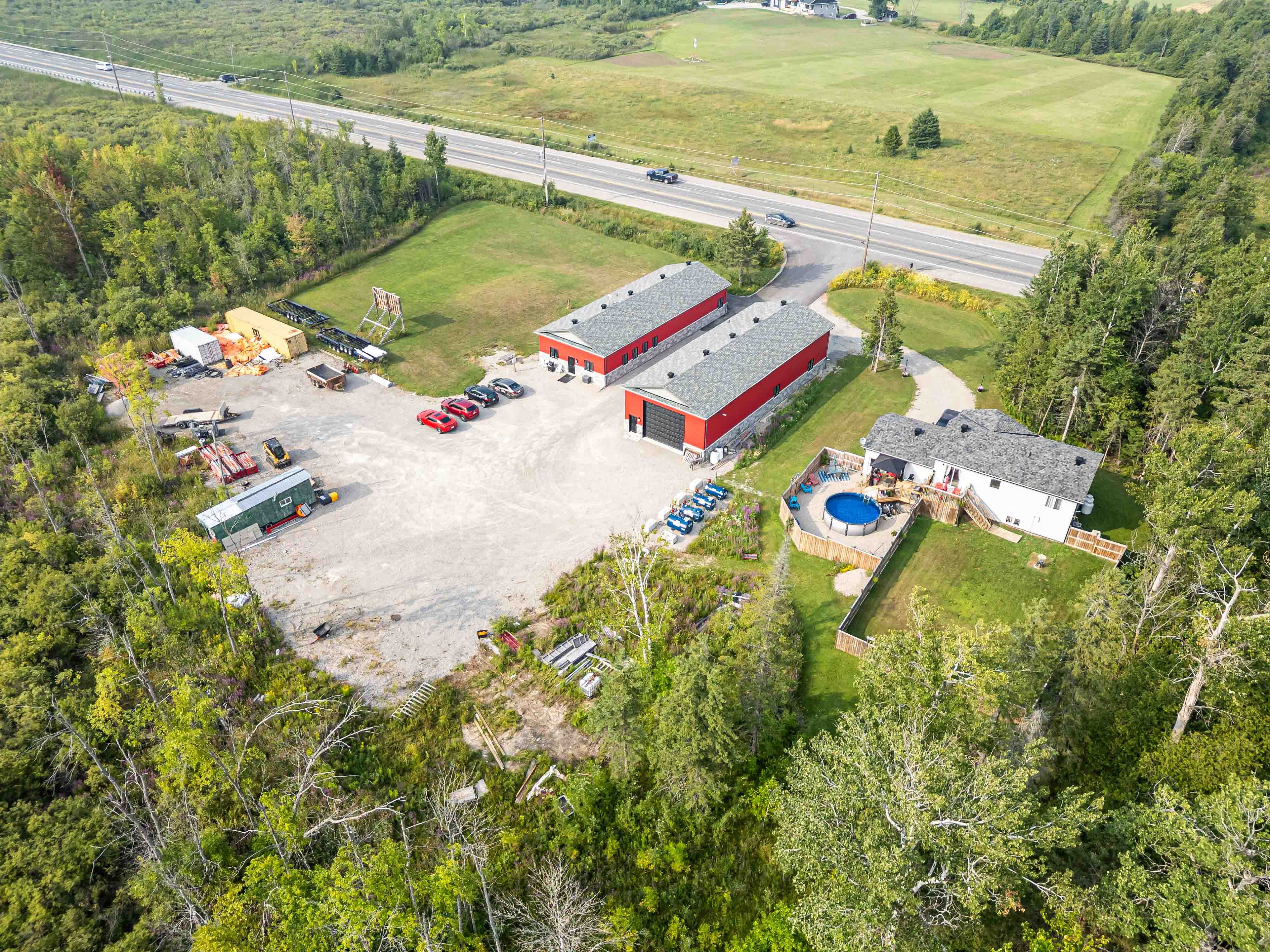 Discover a rare live-work opportunity offering the perfect blend of functionality, income potential, and modern comfort. Built in 2021 and set on 7. 5 acres, this versatile property features two 2,400 sq. Ft. Commercial-use buildings and a spacious 4-bedroom, 2-bathroom homeideal for end users or investors. The first commercial building offers two oversized garage doors, 16-foot ceilings, and an open floor plan, accommodating a wide variety of uses such as manufacturing, warehousing, or equipment storage. The second commercial building is designed for professional operations, complete with a main boardroom office and kitchenette, eight private offices, and rear washroom facilities, creating a turnkey solution for administrative or service-based businesses. The home combines quality and comfort with a bright, open-concept upper level featuring two large bedrooms, a full bath, and high-end finishes. The lower level adds another bedroom, bathroom, and living area, providing excellent flexibility for an in-law suite or rental unit to help offset costs. A rare chance to combine home, business, and investment in one modern 2021-built property with unbeatable highway 15 exposure. With multiple income streams, minimal maintenance needs, and endless versatility, this 7. 5-acre live-work package is ready to elevate your lifestyle and your bottom line.