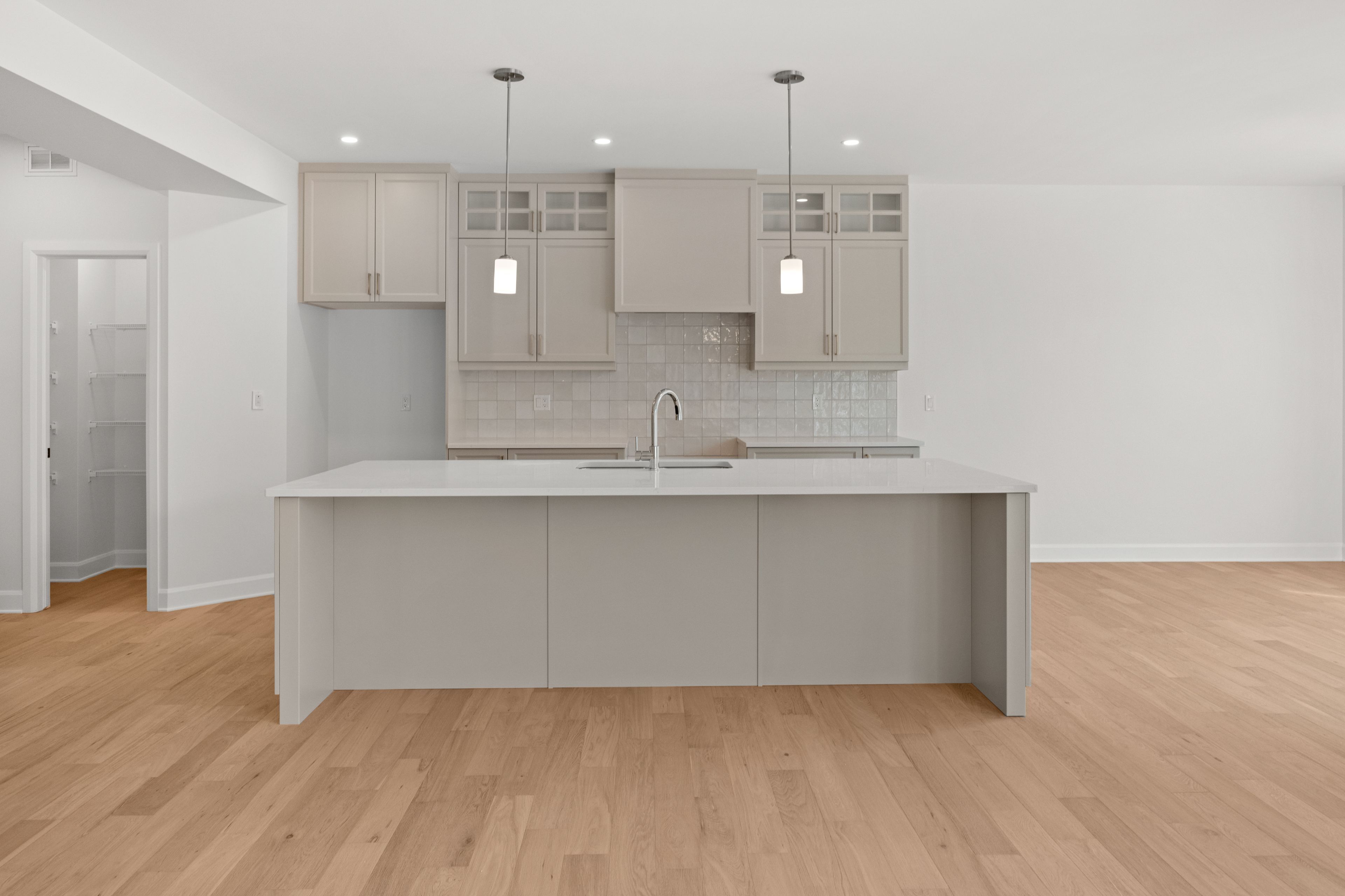 • Chef's kitchen with quartz countertops and walk-in pantry.