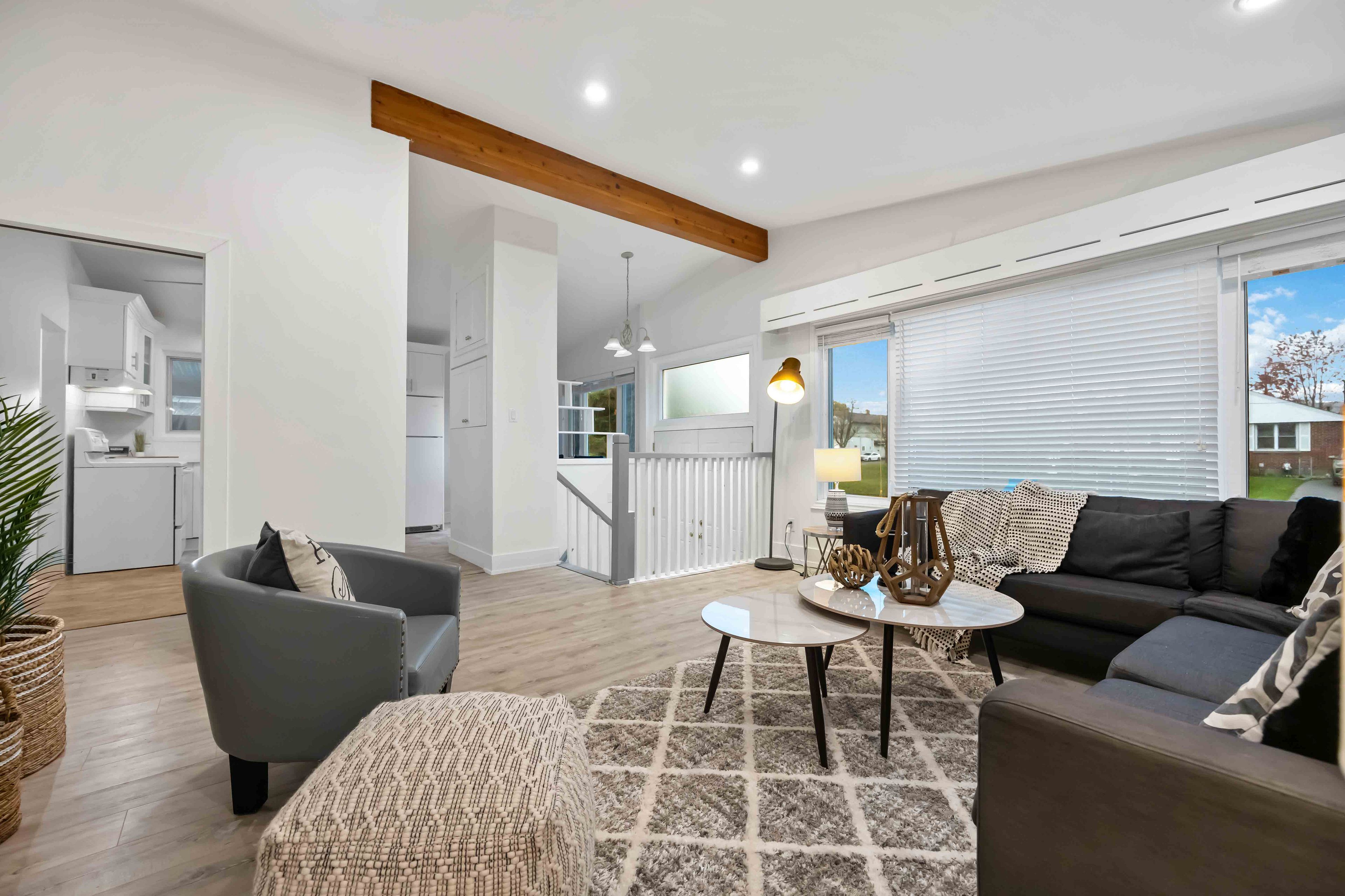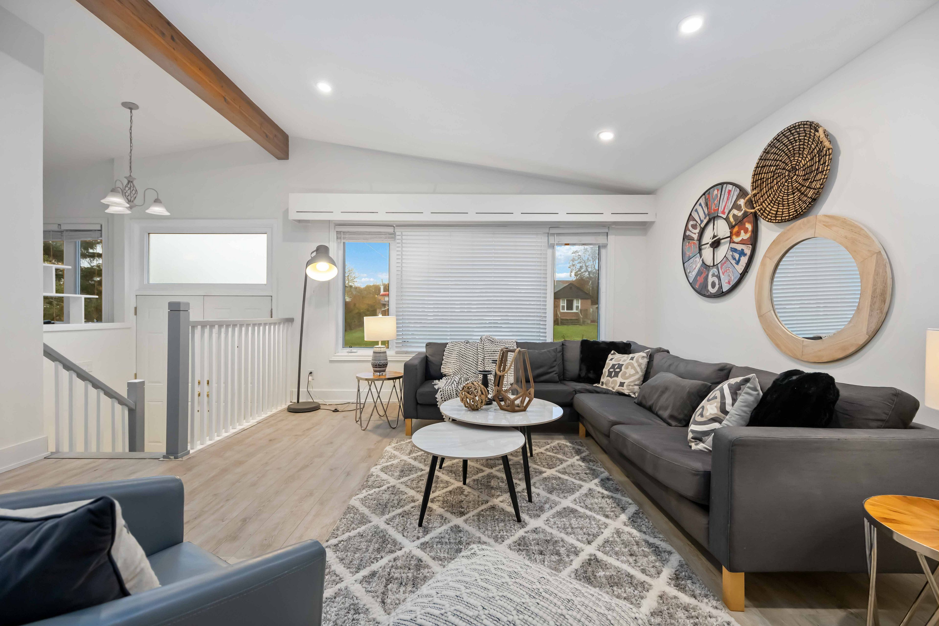 Legal duplex on a premium 50x134 ft lot in one of oshawa's most desirable neighbourhoods! This well maintained home sits on a mature, private lot and offers two bright, spacious units - perfect for investors, multi-generational families, or those seeking extra income. The main level features an open-concept layout with a welcoming family room, large picture window and charming vaulted beam ceiling. The generous kitchen includes a tile backsplash, plenty of cabinetry, pantry and a comfortable breakfast area. Three well-sized bedrooms and a stylishly updated 4-piece bath featuring a quartz vanity, soaker tub and glass-enclosed shower complete the upper level. The legal lower-level unit boasts large above-grade windows that fill the space with natural light. It offers a spacious bedroom with walk-in closet, an eat-in kitchen with convenient walk-up access to the yard, a mudroom with additional storage and a 3-piece bath - ideal for extended family or rental potential. Outside, enjoy the private, fully fenced backyard with mature gardens, two storage sheds and a patio perfect for relaxing or entertaining. A carport plus driveway parking for up to 5 vehicles adds exceptional convenience. Located in a sought-after neighbourhood close to groceries, transit, parks, schools, restaurants, and more. A rare opportunity to own a turn-key legal duplex on a premium lot - don't miss it!