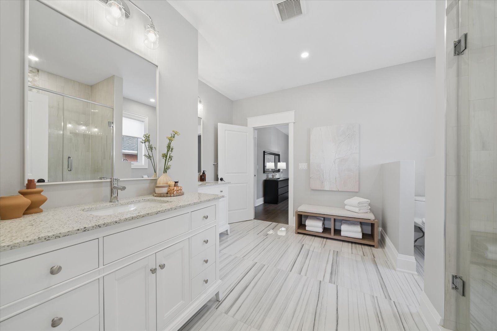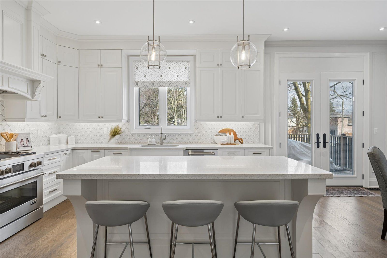 • Custom chef's kitchen with a quartz island, perfect for entertaining.