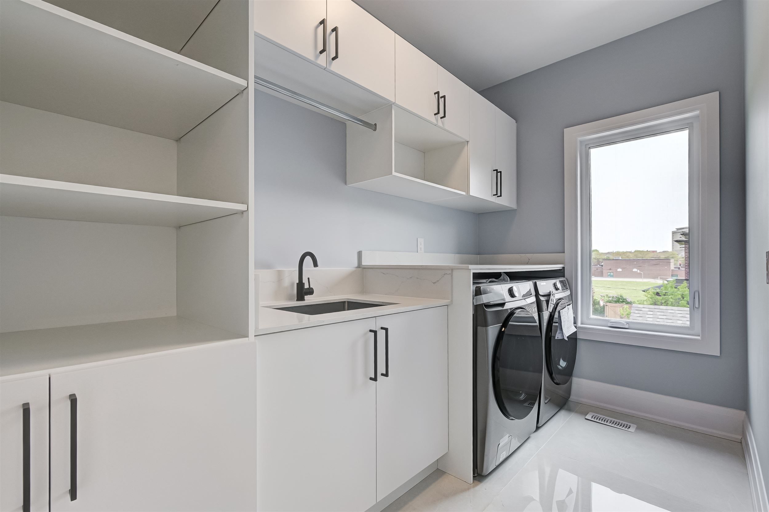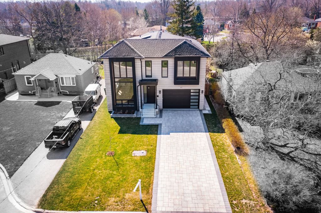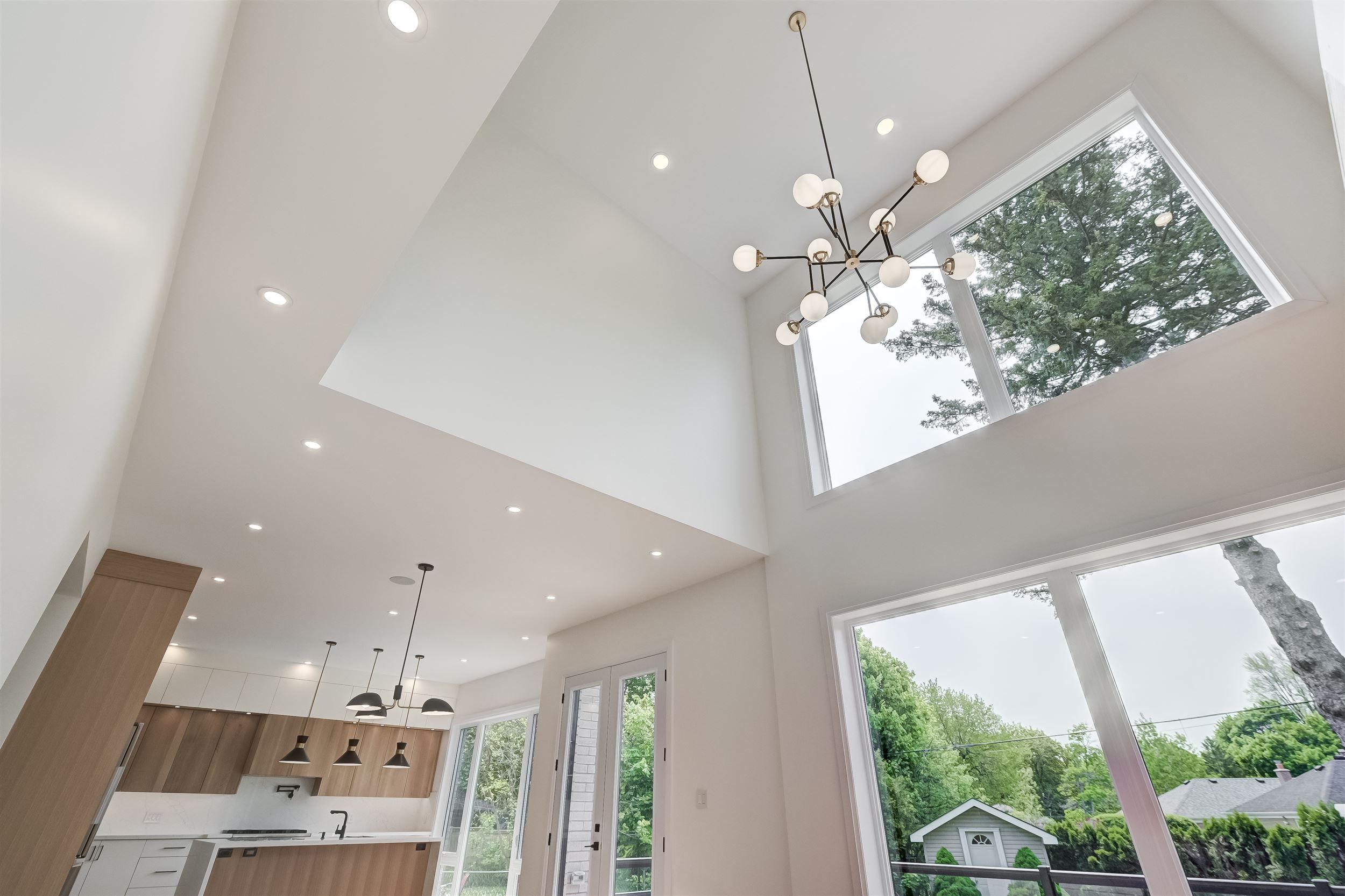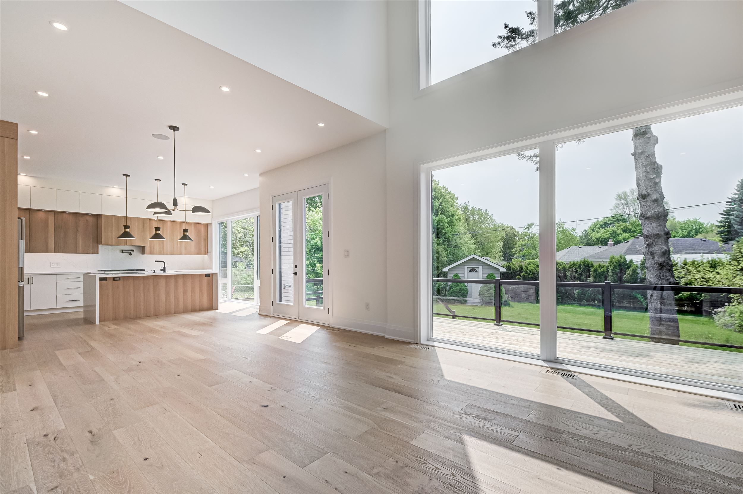 Welcome to 93 cree ave., a 2022-built contemporary smart home tucked away on a mature, tree-lined, quiet cul-de-sac in the coveted cliffcrest neighbourhood. This striking residence boasts exceptional curb appeal with its elegant indiana limestone facade. Spanning approximately 5,000 square feet of luxurious living space (including the basement), the interior showcases an open-concept, free-flowing layout with airy high ceilings, including a dramatic 20-foot-high soaring ceiling in the great room. Oversized windows create a seamless "indoor/outdoor" feel, complemented by custom drapery valued at approximately $35,000, two linear gas fireplaces, multiple skylights, and custom millwork throughout. Enjoy sun-filled principal rooms, a functional mudroom with a side entrance, engineered oak floors, and a luxurious custom chef's kitchen featuring solid oak cabinets, stainless steel appliances, a serving area, a waterfall centre island, and a walk-out to the deck and a fully fenced entertainers' yard. Upstairs, you'll find four spacious bedrooms, each with sleek en-suite bathrooms and custom built-in closet organizers. The fully finished basement adds valuable living space and offers convenient walk-up access. Thoughtfully designed and finished, this exceptional home delivers the perfect blend of space, style, and sophisticated modern living.