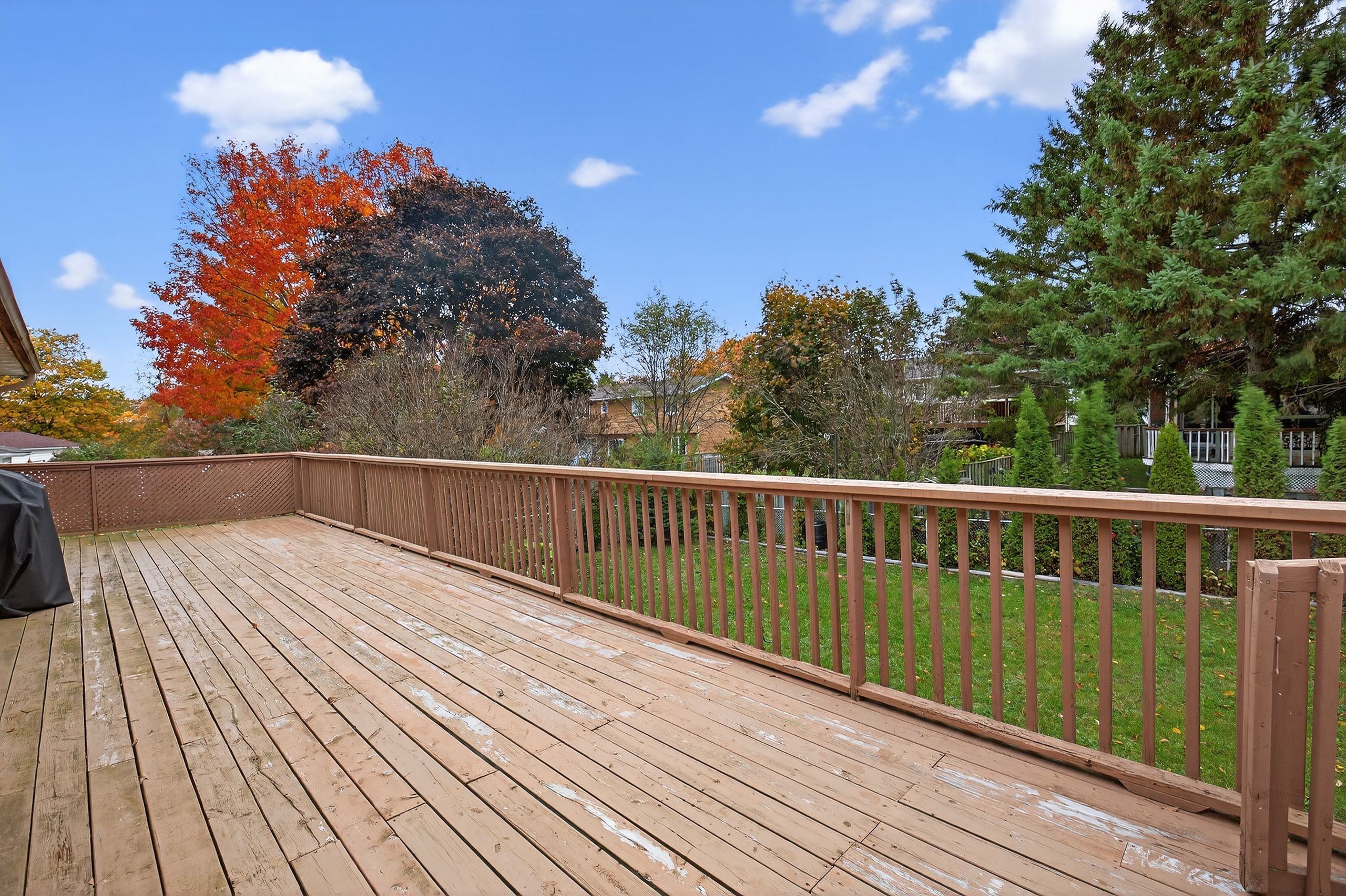 • Oversized deck and sunroom perfect for hosting gatherings.