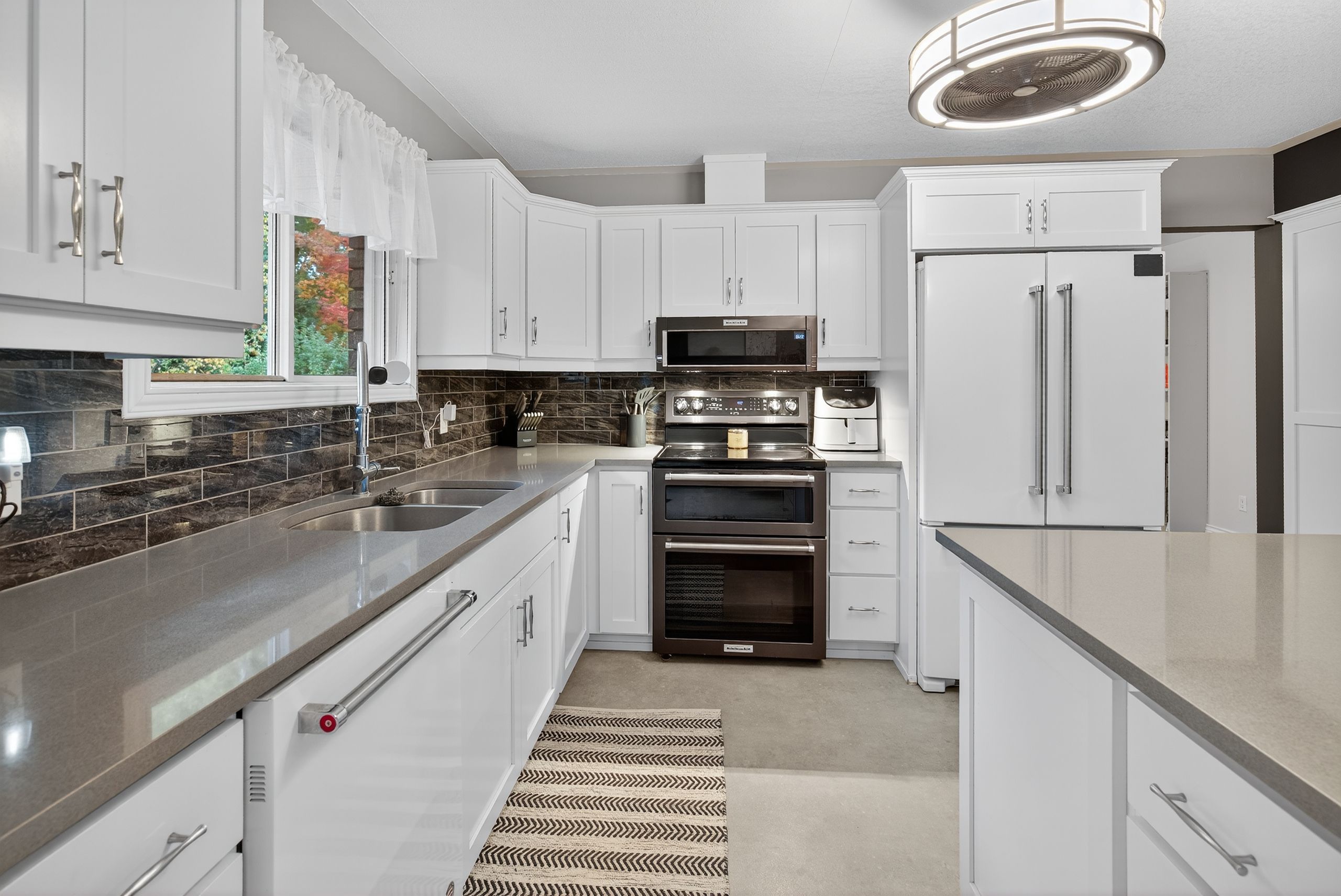 • Bright gourmet kitchen with a center island, great for meal prep.