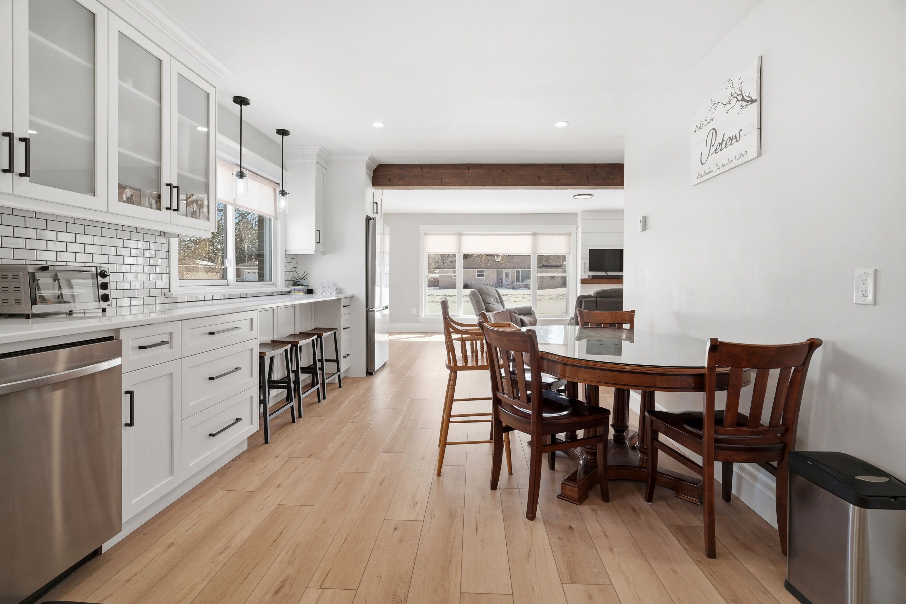 • Bright open-concept main floor with a seamless kitchen and dining area.