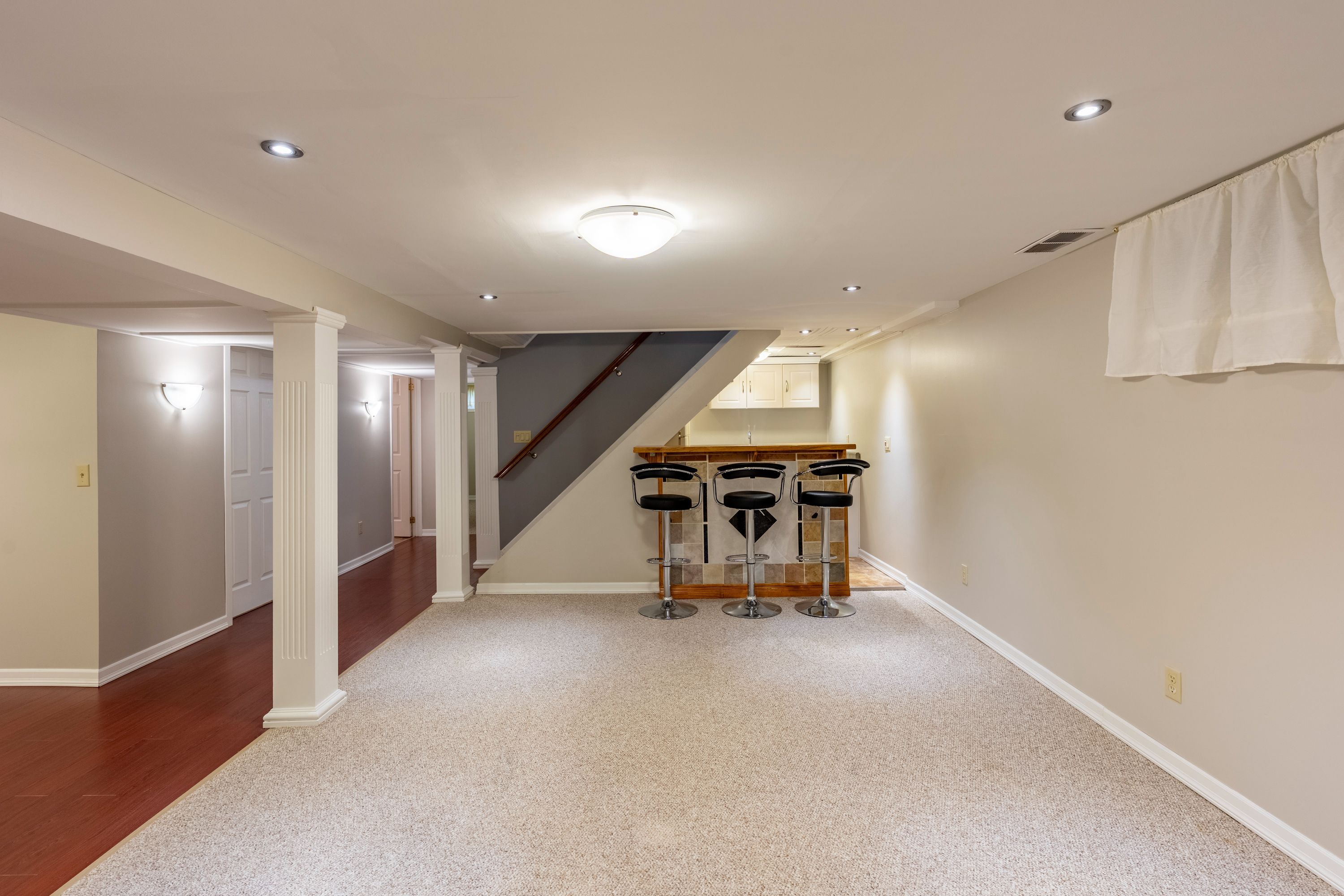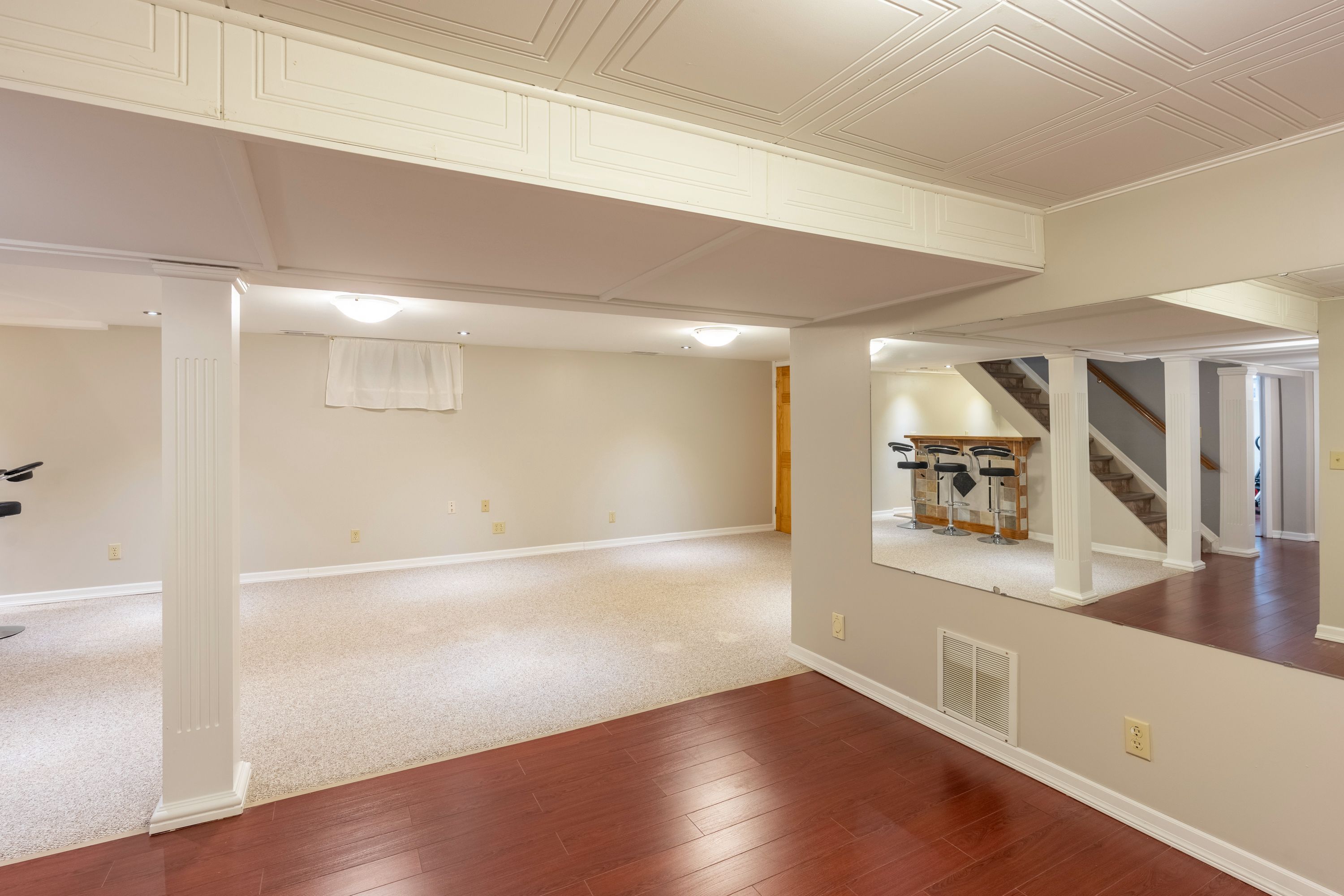 • Spacious lower level with family room, wet bar, and extra bedroom.