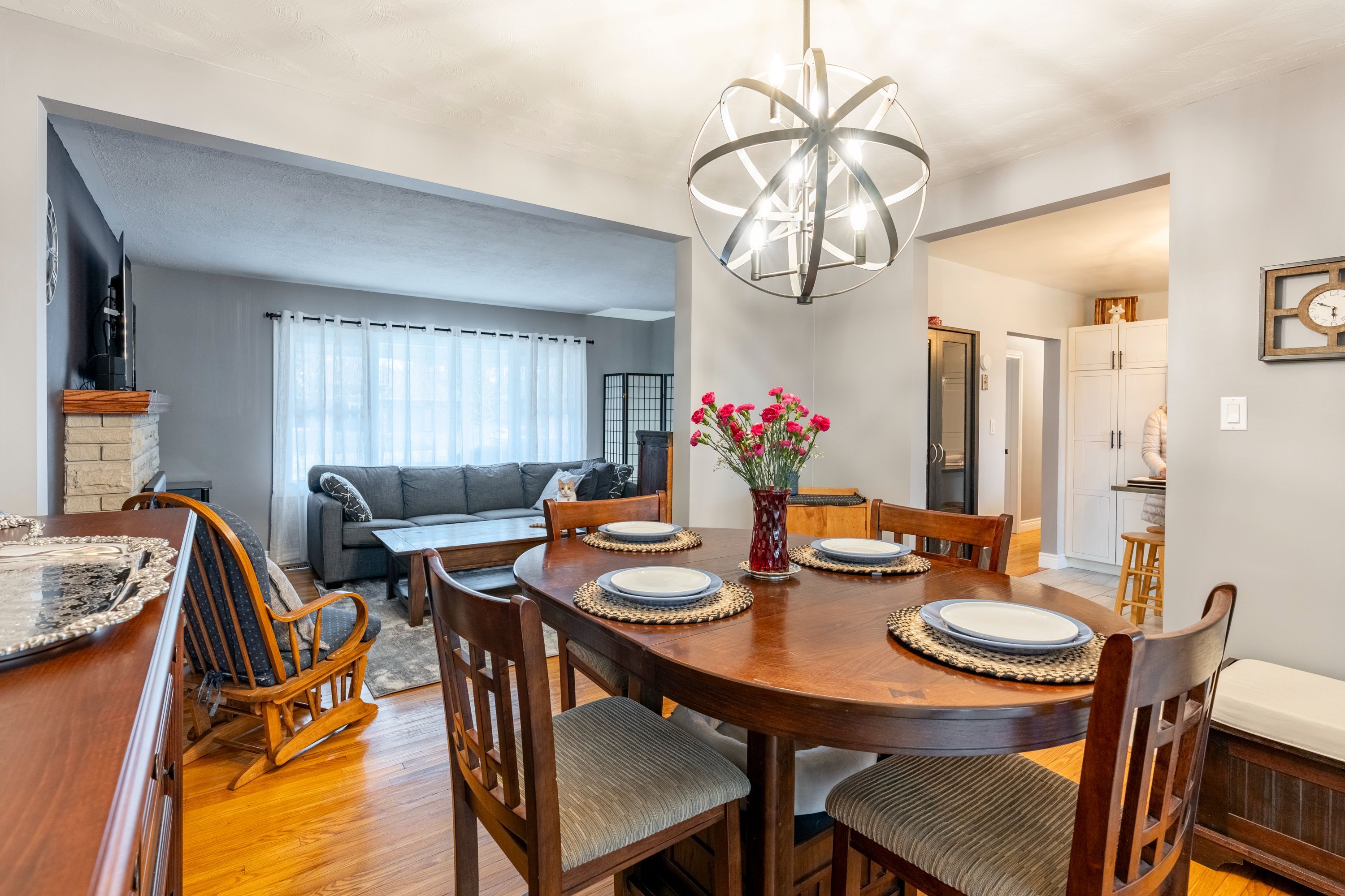 Gorgeous brick bungalow in a desirable location! Charming and spacious family home, set on a large 100 ft x 150 ft lot with mature trees in the sought after woodland neighborhood offering convenient access to hwy 19 for commuters. Thoughtfully maintained and full of character, this home features a stunning primary suite with a luxurious walk-in closet and a renovated 3 pcs ensuite. The traditional kitchen and dining are are equipped with four samsung appliance, an island ideal for food prep, and direct access to a bright 3 season sunroom and a multi-level deck perfect for entertaining. The cozy living room showcases a large picture window and a beautiful stone fireplace. Downstairs, the fully finished lower level offers even more living space with a family room and wet bar, a 4th bedroom, an exercise room, laundry area, 3 pcs bath, a hobby/workshop space, and ample storage. A convenient rear staircase provides direct access to the oversized and impressive double garage. Plenty of room for your vehicles and toys. The expansive driveway fits up to 8 cars and even allows for access to the backyard for additional storage. Recent updates include; exterior doors, insulated garage doors, water softener, heat pump/furnace, owned hybrid water heater, updated en-suite bath, new siding, kitchen cabinets with hard surface countertops. This is an exceptional family home and must be seen.