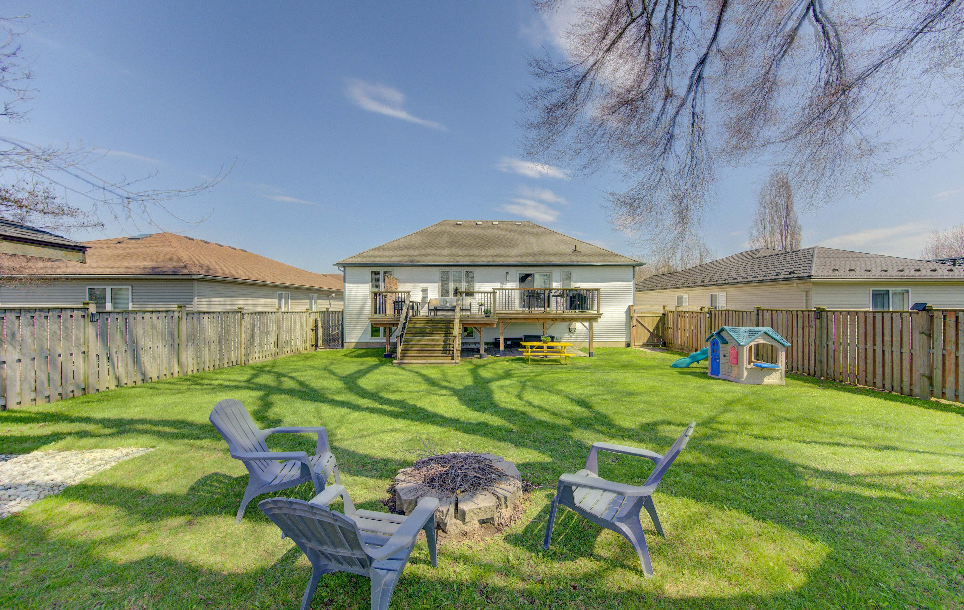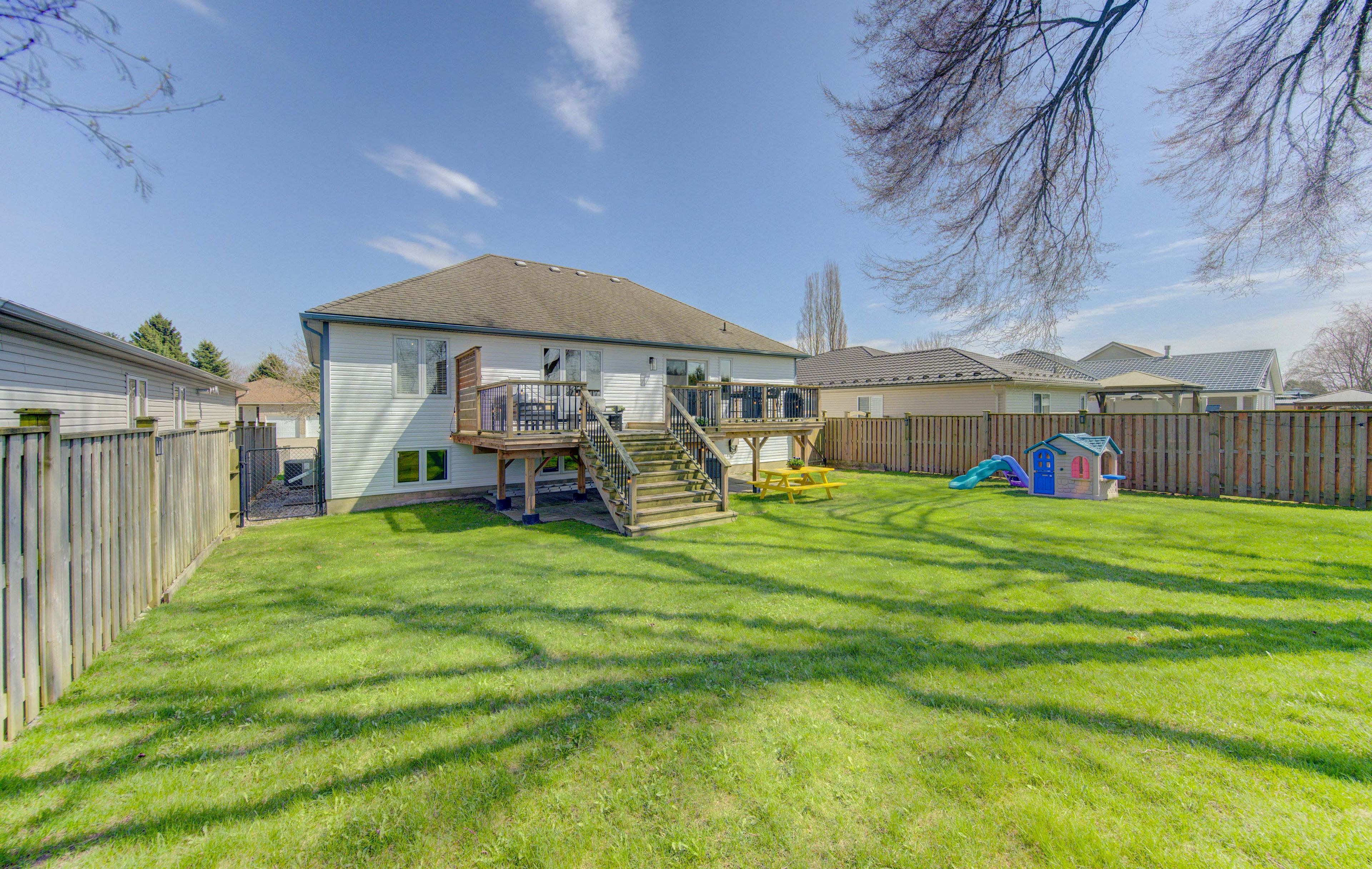 • Private fenced backyard and parking for up to four vehicles.