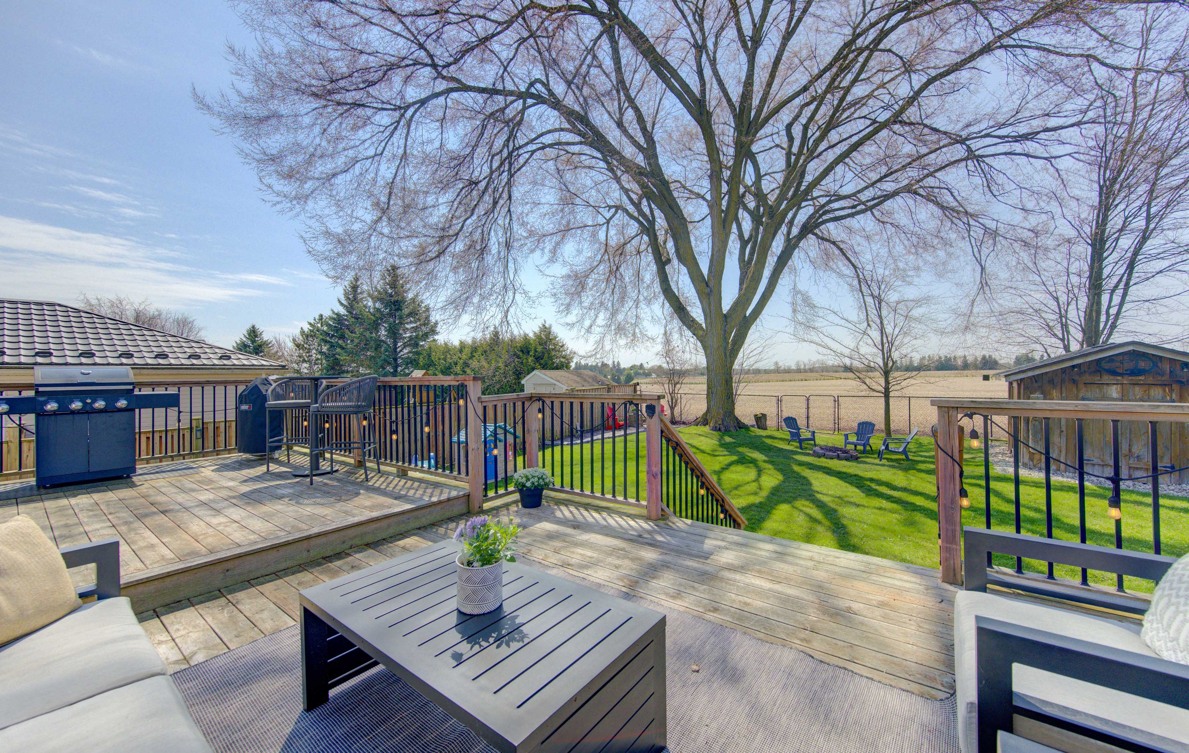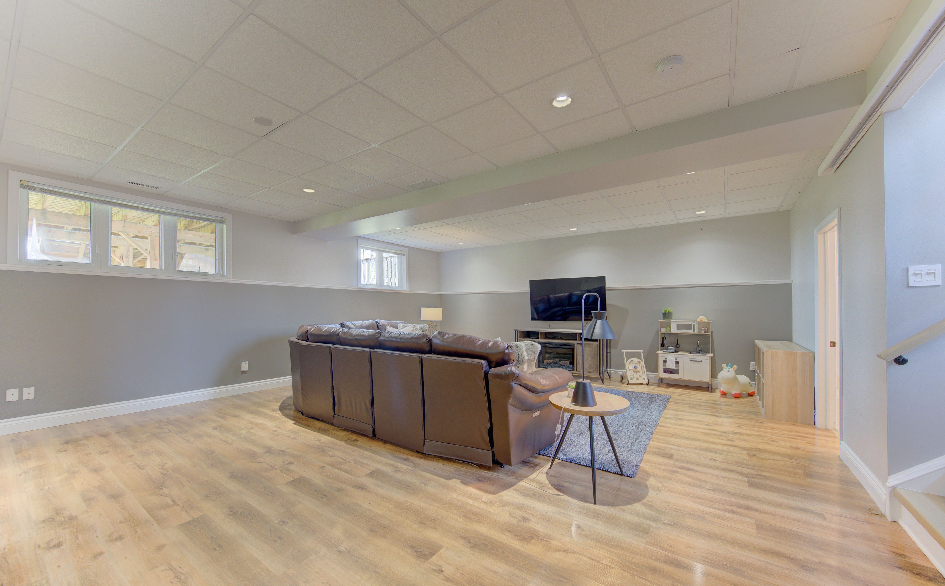• Generous lower-level rec room ideal for gatherings or a home theatre.