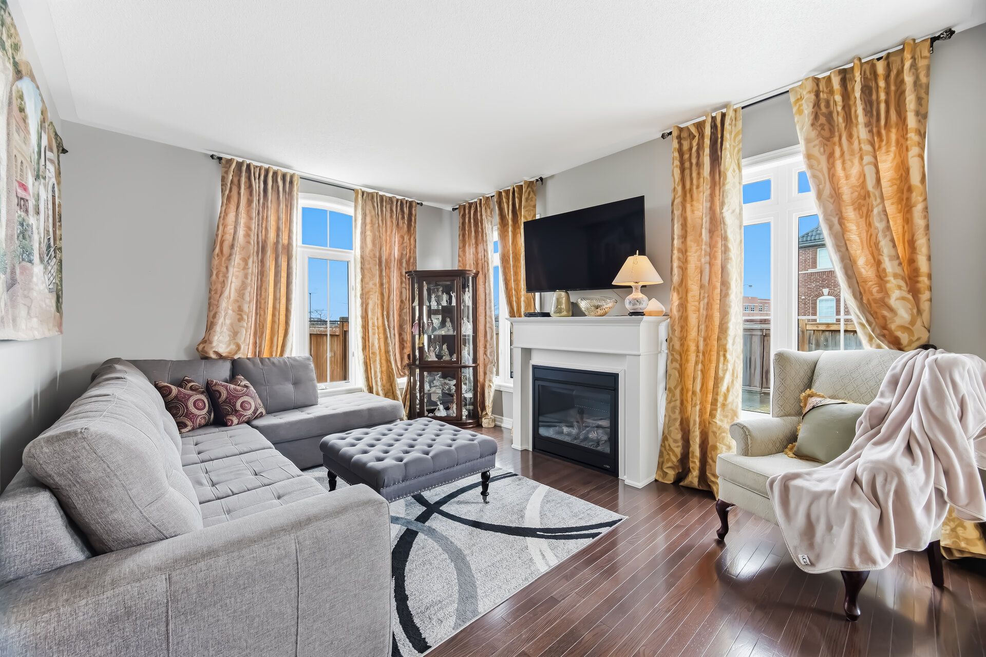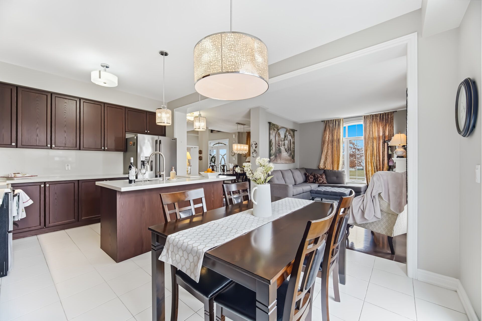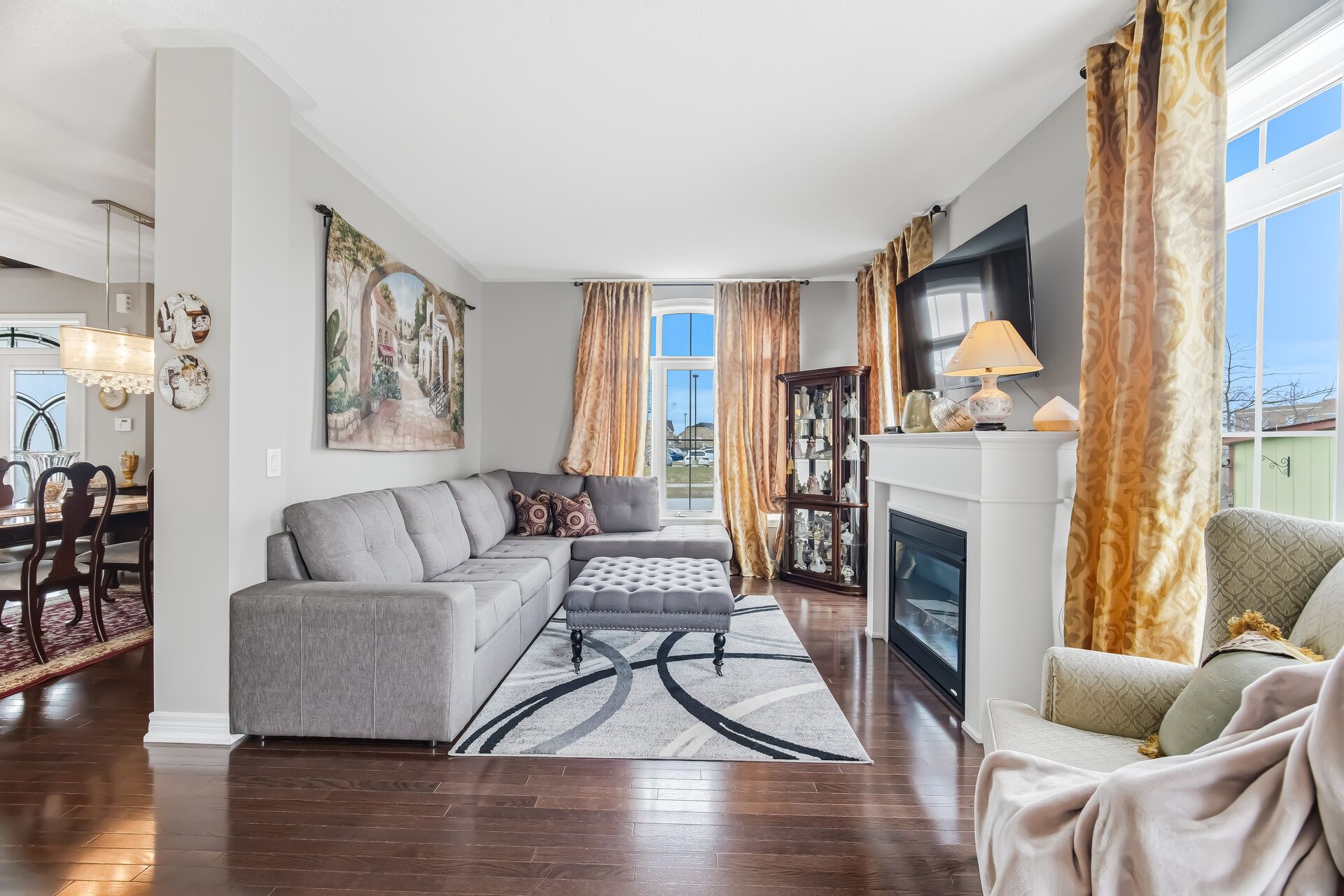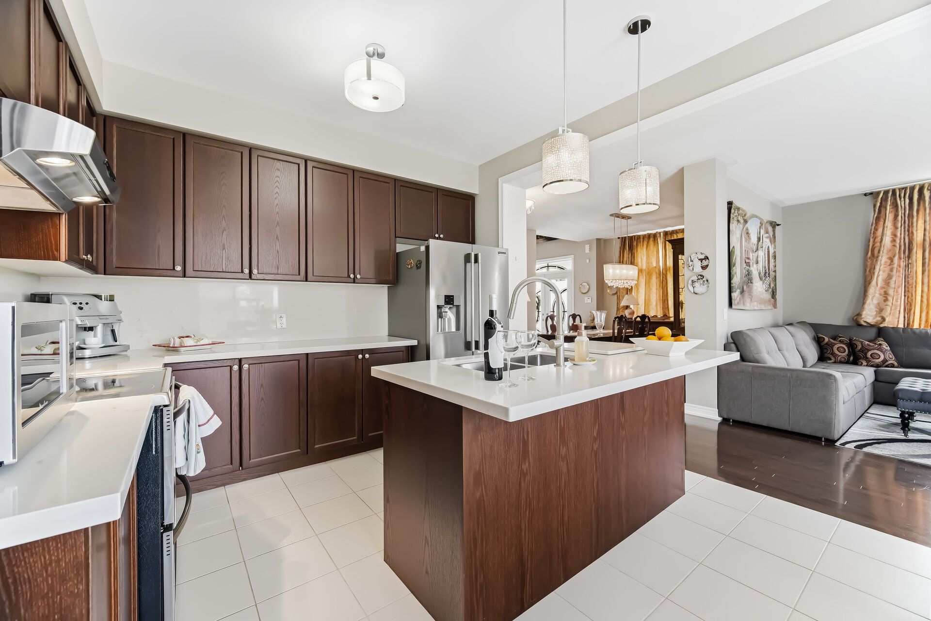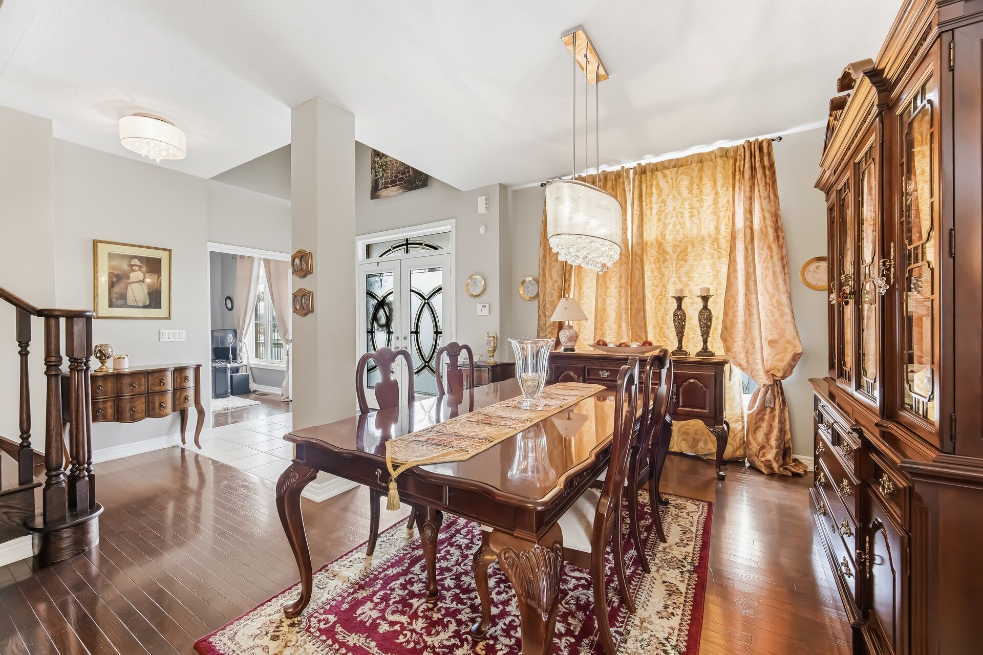 • Bright and spacious living, dining, and family rooms with hardwood flooring.