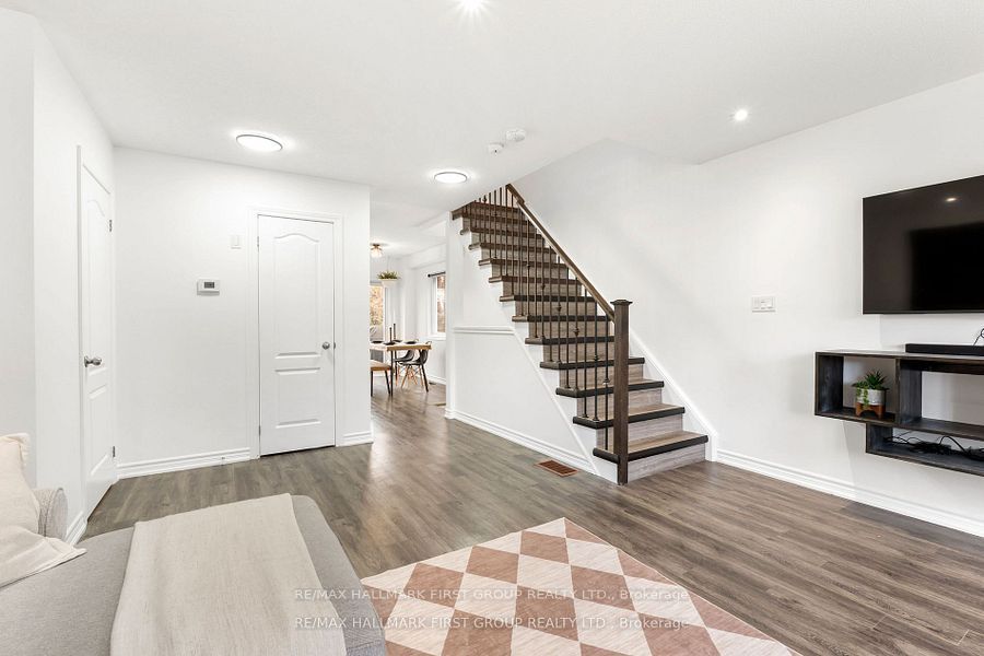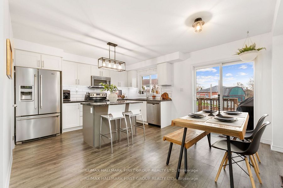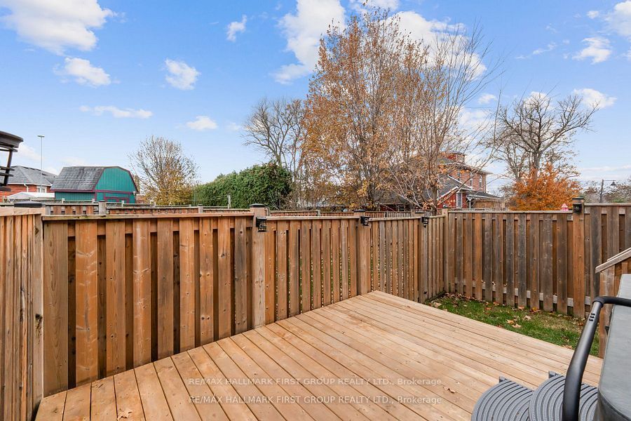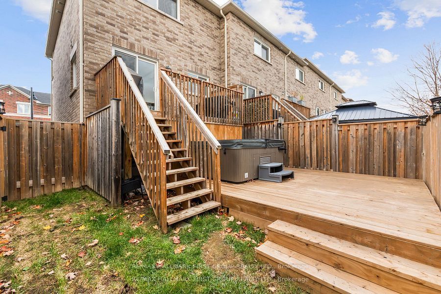 Welcome to this beautifully kept 3-storey freehold end-unit townhome in a quiet, family-oriented neighbourhood in bowmanville. Featuring 3bedrooms and 3 bathrooms, this home offers a bright and functional layout with high end vinyl flooring throughout and over 1500sqft of living space. Enjoy a spacious kitchen and dining area that flows into the living space, ideal for entertaining and everyday life. Bonus room in lower level, perfect for games room, gym or office. The large primary suite includes a 3-piece ensuite with glass shower and walk-in closet. Step out into your fully fenced backyard retreat complete with a multi-tiered deck and relaxing hot tub. Located close to all amenities including groceries, pubs, banks, and more. Move-in ready and waiting for you.